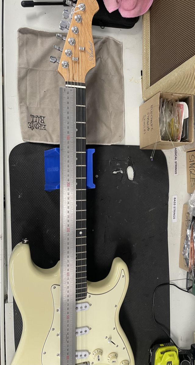 2. Use a tape measure or ruler to measure the distance from the nut to the centre of the 12th fret.