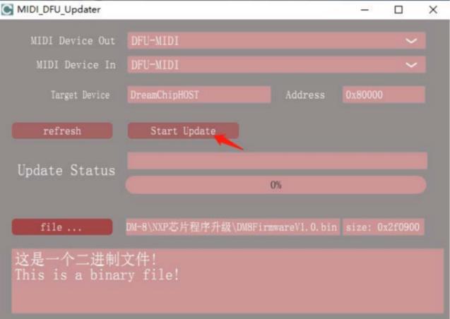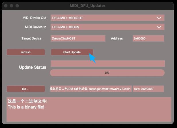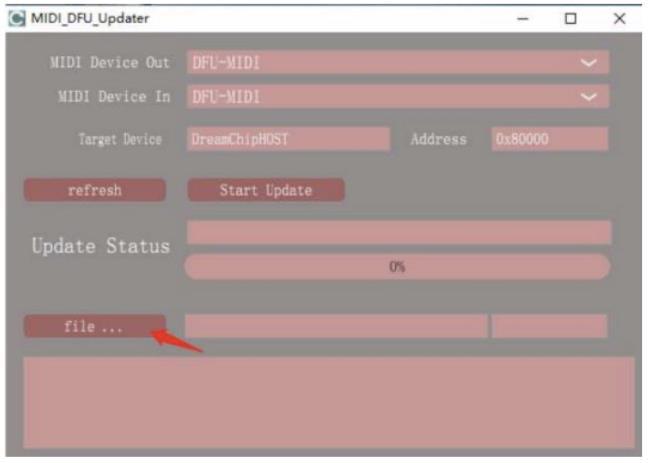 Launch the MIDI DFU software: MIDI_DFU_Updater 1.0.1.dmg for macOS; MIDI_DFU_Updater.exe for Windows