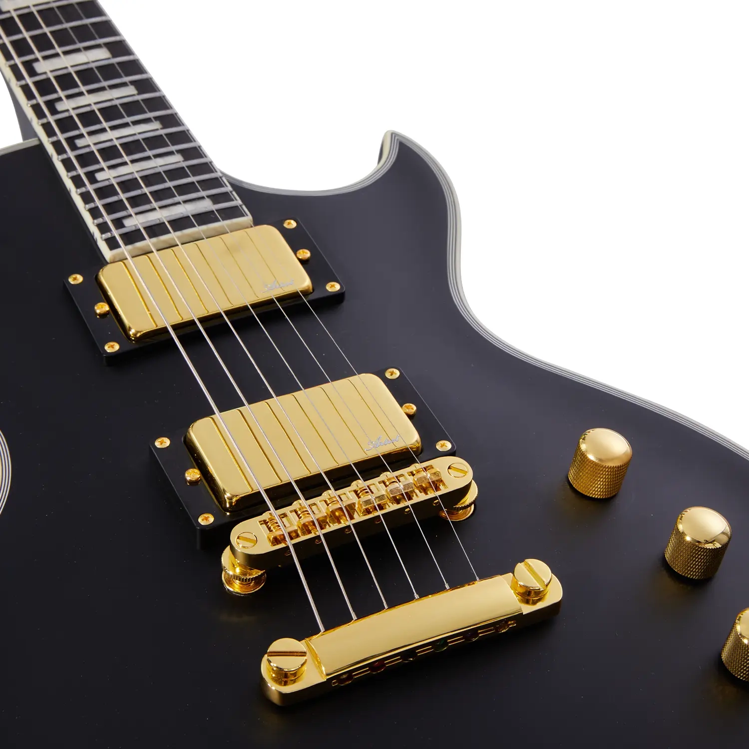 The Artist AP6G Cimmerian II is the next generation of the all-conquering Artist AP6G Cimmerian. Improving on one of our all-time classic designs, this new iteration takes everything you loved about its predecessor and kicks it up another notch! We've introduced two classic finishes on this model - gloss white with matte black hardware, and the ever-dependable matte black Cimmerian finish, this time with gold pickup covers. With A Mahogany neck and bodY, and classic block inlays, the AP6G Cimmerian II is mostly the guitar you know and love... Just improved!