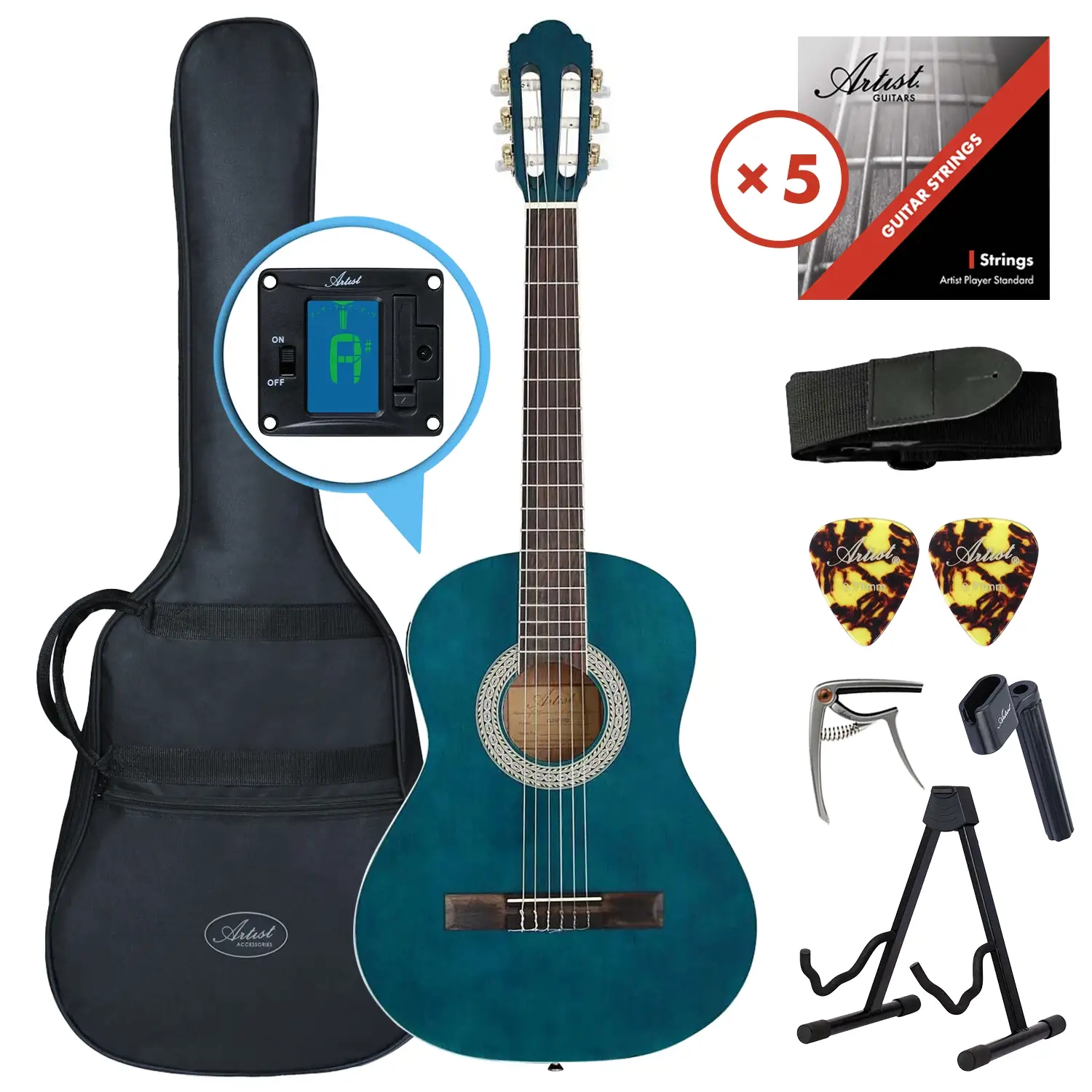 • 1 x Artist CL34TBB 3/4 Size Classical Guitar Pack, Nylon String - Blue