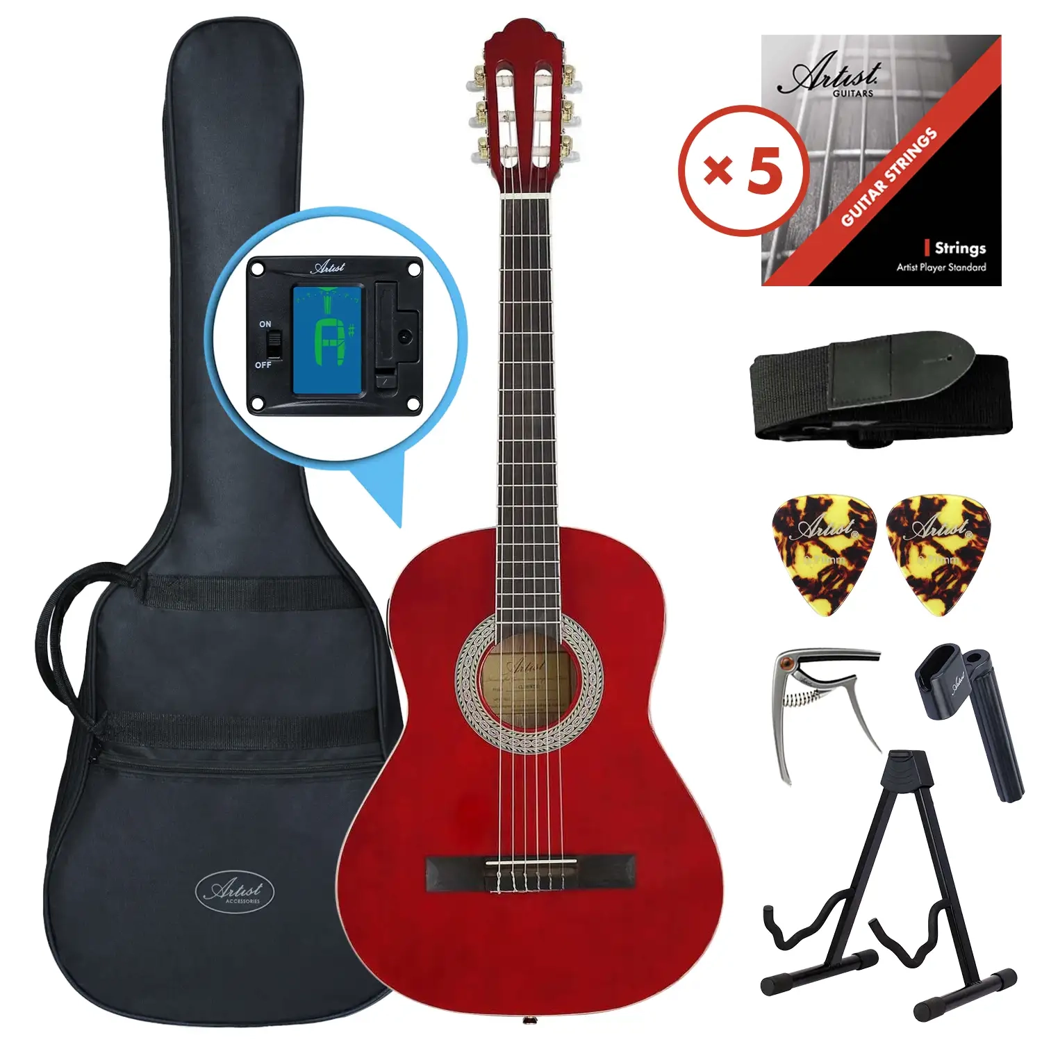 The guitar has been set-up at the factory for optimum beginner playing level. We call this Practical string action. String action is the height of the string to the fretboard. This is very important because a guitar with a high action is hard to play, while a guitar with too low an action will buzz unnecessarily and sound bad. Artist Guitars are set up at the factory for the optimum level for a beginner.