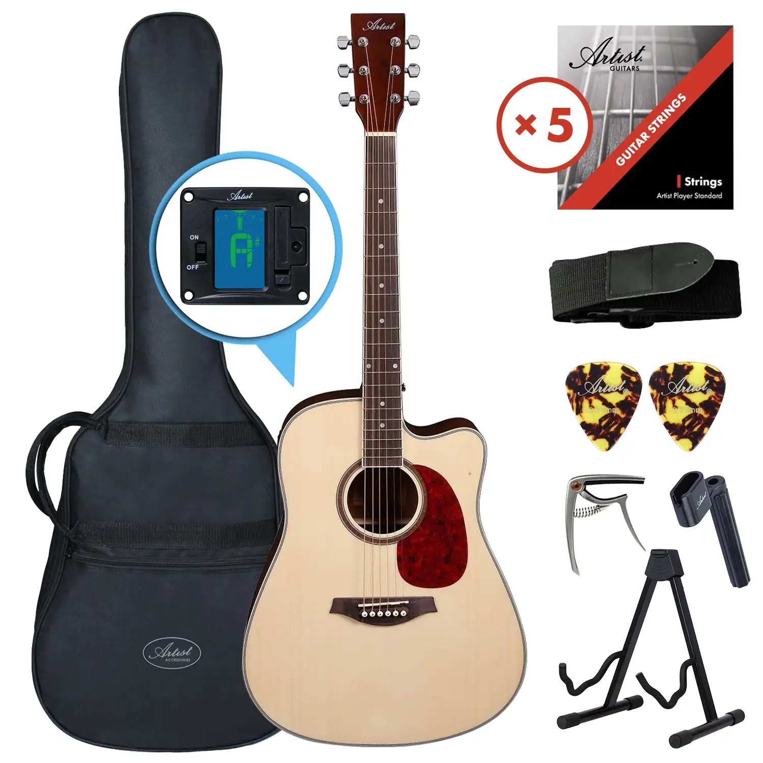 • 1 x Artist LSPC Natural Beginner Acoustic Guitar Ultimate Pack