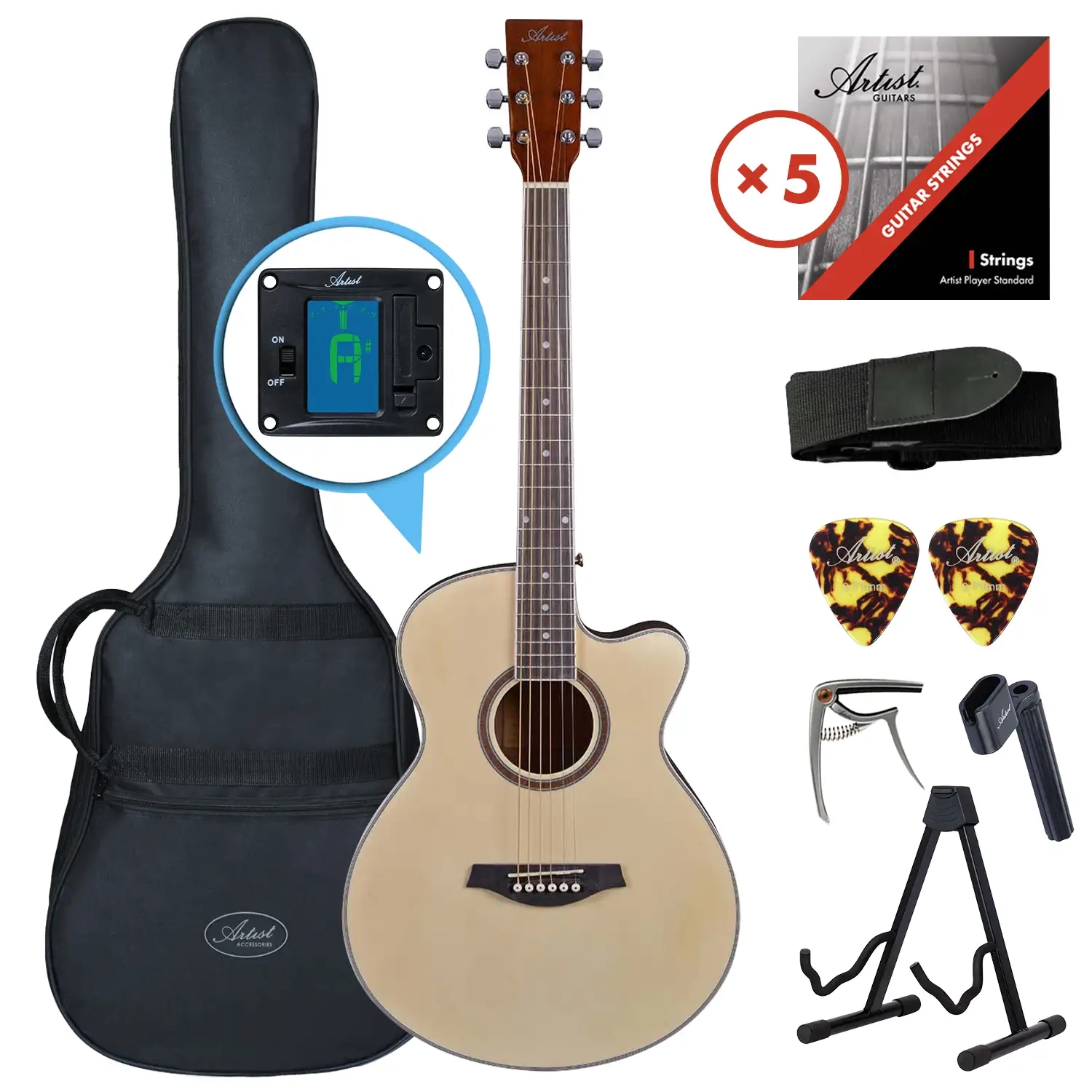 • 1 x Artist LSPS Natural Small Body Beginner Acoustic Guitar Pack