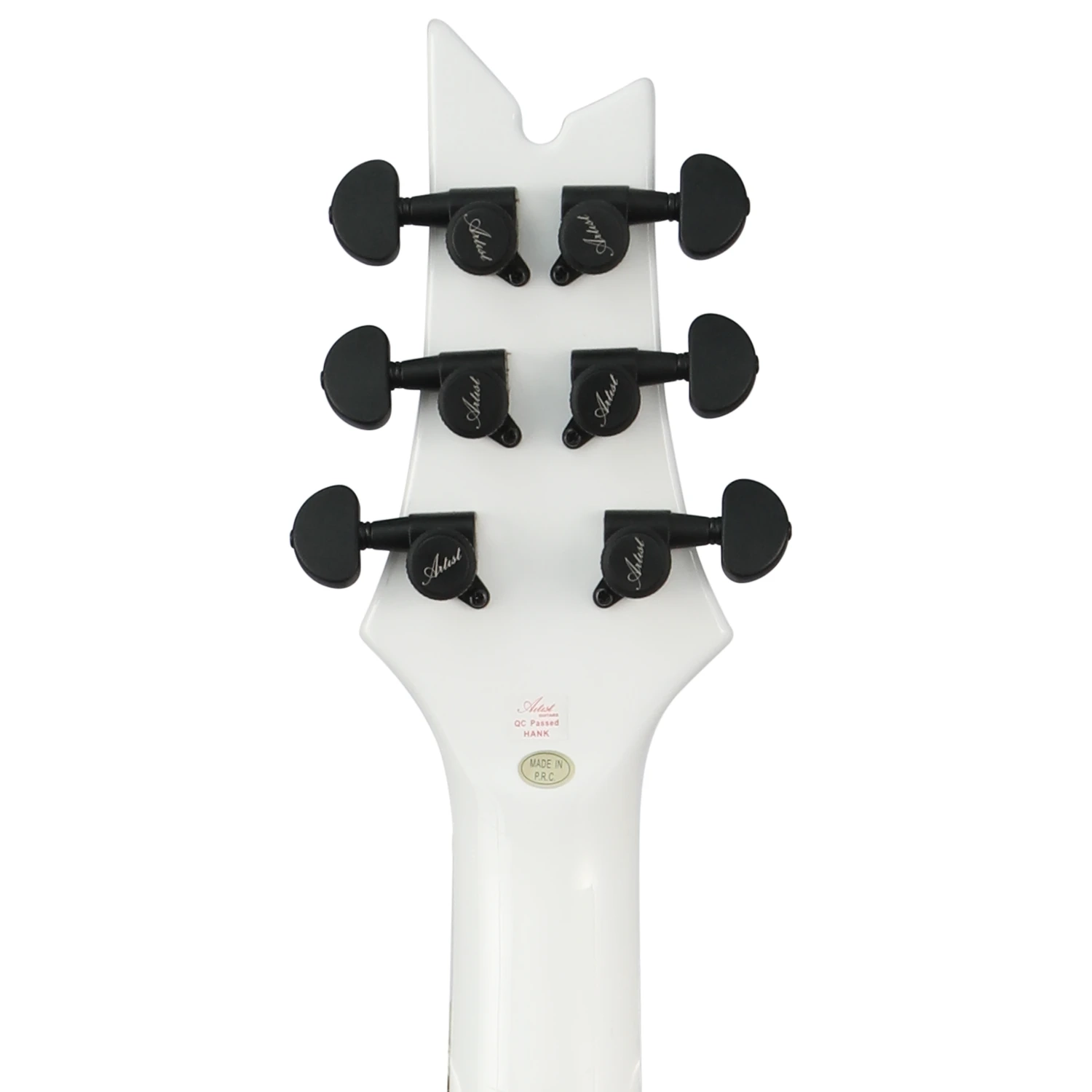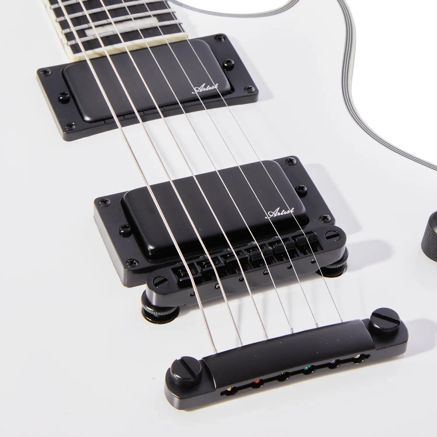 The Artist AP6G Cimmerian II is the next generation of the all-conquering Artist AP6G Cimmerian. Improving on one of our all-time classic designs, this new iteration takes everything you loved about its predecessor and kicks it up another notch! We've introduced two classic finishes on this model - gloss white with matte black hardware, and the ever-dependable matte black Cimmerian finish, this time with gold pickup covers. With a Mahogany neck and body and classic block inlays, the AP6G Cimmerian II is mostly the guitar you know and love... just improved!