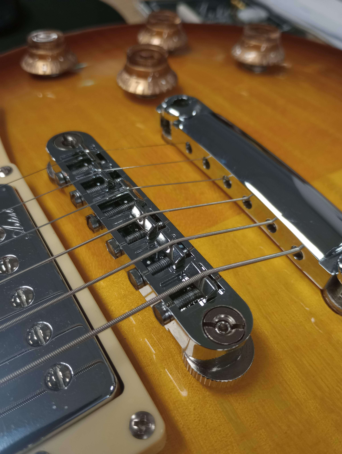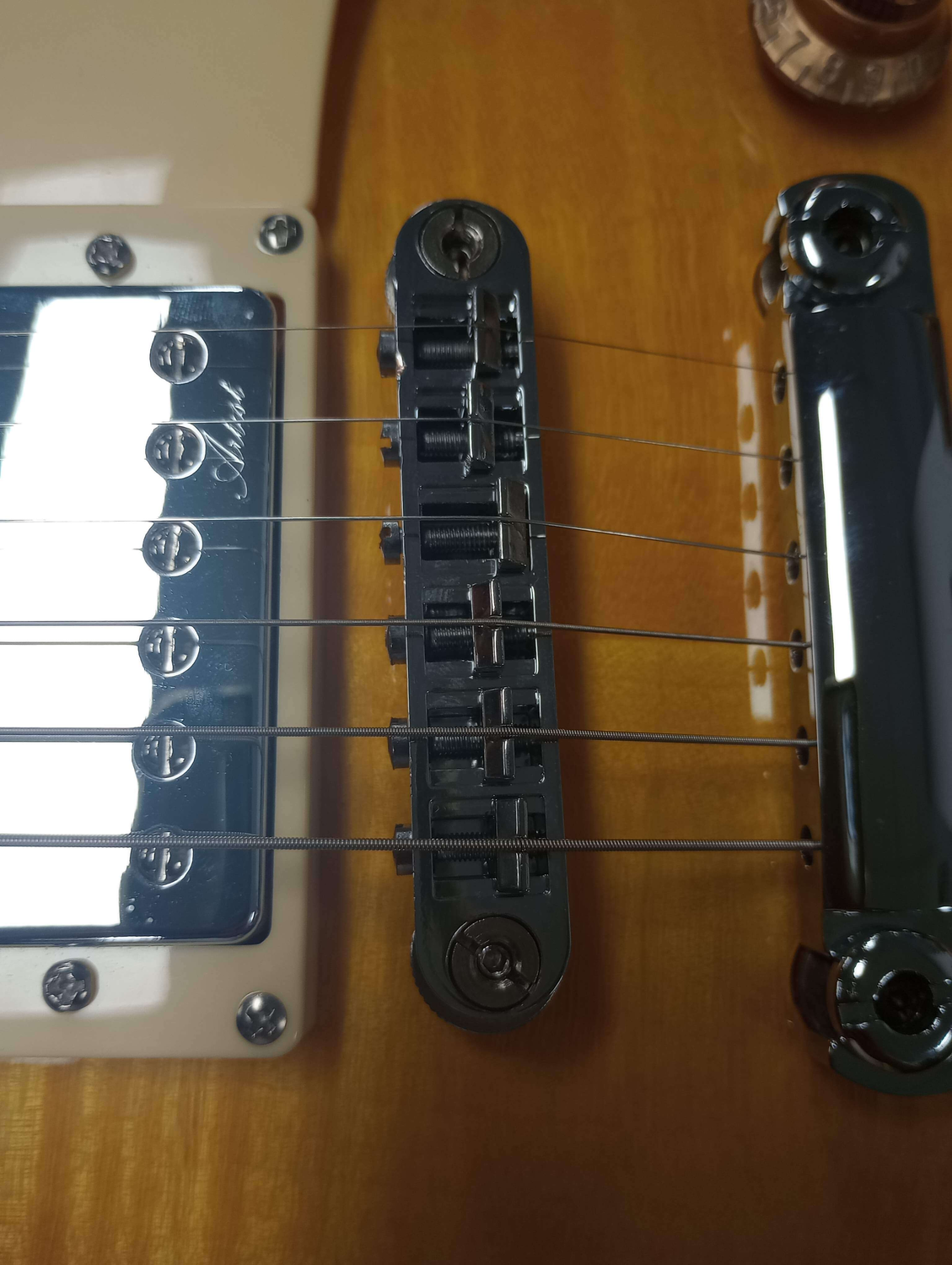 Customer returned due to a change of mind, this does not have the brass saddle bridge, bridge is as pictured.