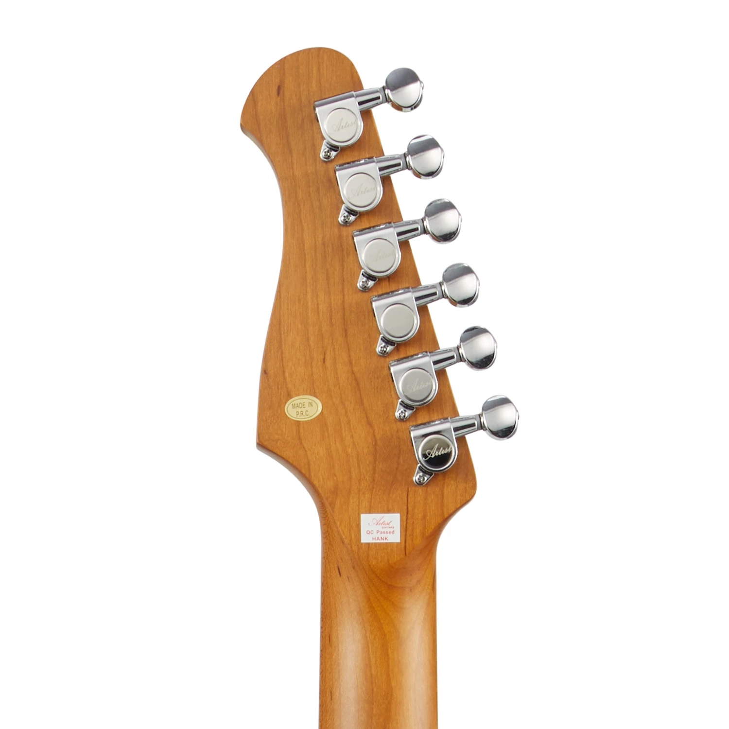 With a set of vintage-output ceramic single-coil pickups, the AS20 avoids the harshness usually associated with higher-output ceramic pickups, with the lower winding instead yielding bright, sparkling tones with plenty of mid-range warmth, perfect for everything from glassy sparkle to wild fuzz goodness. A high-output humbucker in the bridge position gives this one even more versatility, bringing wild saturated leads and high-octane metal chugging to the table. The two-point tremolo gives you the option to engage in classic rock screams and wails to your heart's content, safe in the knowledge that your tuning will remain rock-steady thanks to a set of high-grade chrome tuning machines and a rock-solid 42mm ABS nut.