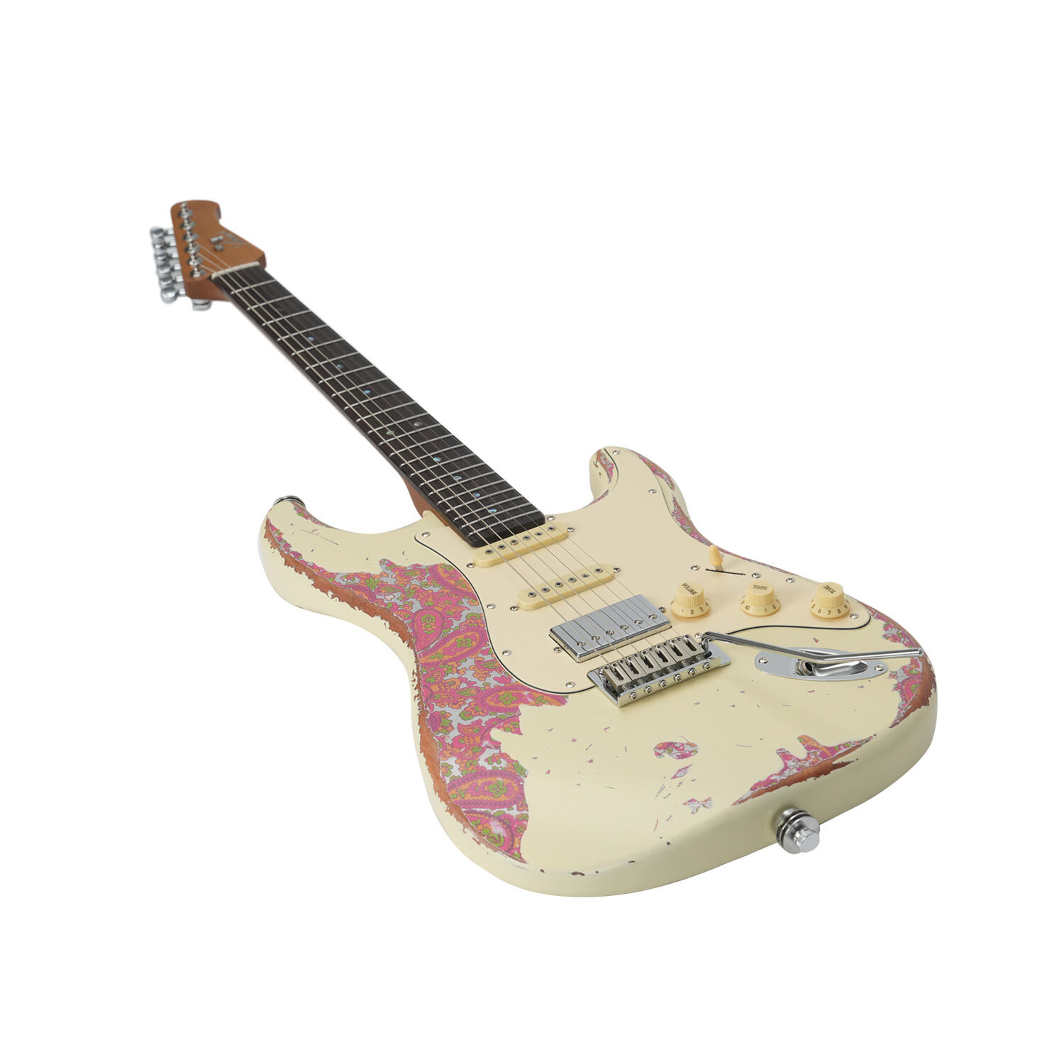Dig beneath the ordinary and reveal the extraordinary. The Artist AS72 comes bounding through time, from the paddocks of Woodstock 1969 into your waiting hands - but not without a quick stop off to catch up with the times! We painstakingly relic'd the vintage-style nitrocellulose finish on these, adding a scar here and a gash there to give your brand-new guitar that well-loved look. The roasted maple satin neck is topped with a rosewood fretboard, a material becoming rarer by the day within the worldwide guitar market. The 14" fingerboard radius allows for super low action and effortless bends, while glow-in-the-dark fret markers on the side of the neck map the fretboard on even the darkest of pub stages.