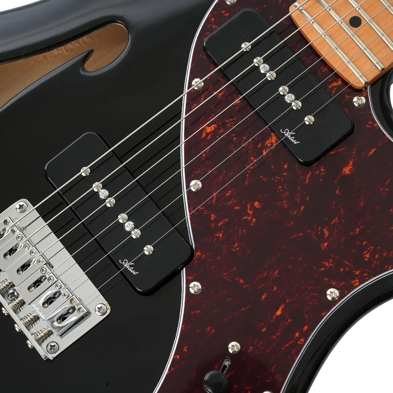 You asked and we delivered! We're stoked to introduce the Artist AT69 to the range! Featuring a set of our Artist Howler medium-output stacked P90 pickups, this classy-looking semi-hollow delivers breathy blues tones that break up brilliantly when paired with a cranked tube amplifier. The C-shaped roasted maple neck, bone nut, locking tuners, and modern-style six-saddle bridge ensure the AT69 performs just as superbly as it sounds, staying perfectly in tune as you bend your heart out!