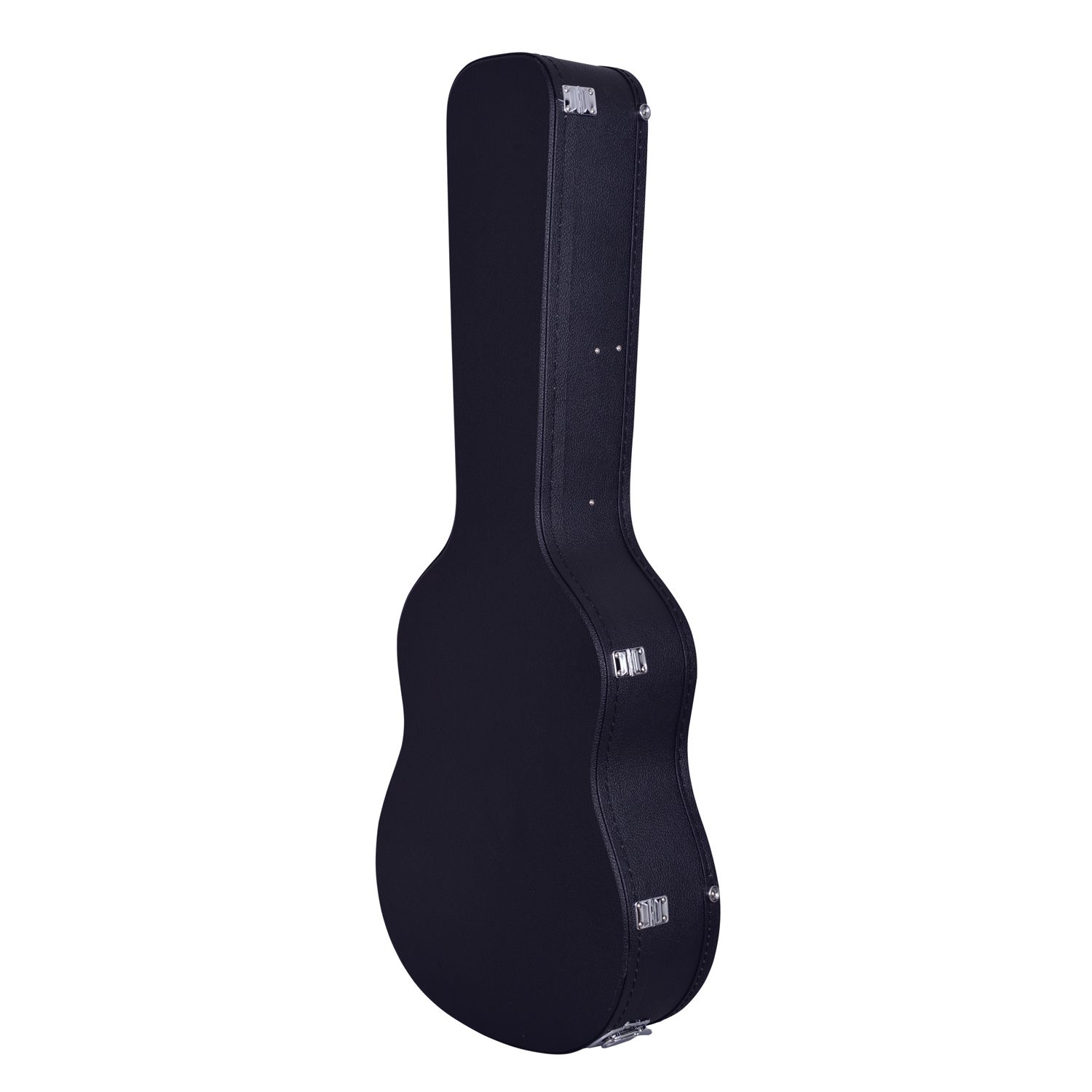 This Hard Case will fit a Classical Guitar and keep it safe and sound, It has a sturdy wooden construction with a lockable Latch (the key is inside the case). It has a great little compartment for all your accessories and spare strings.