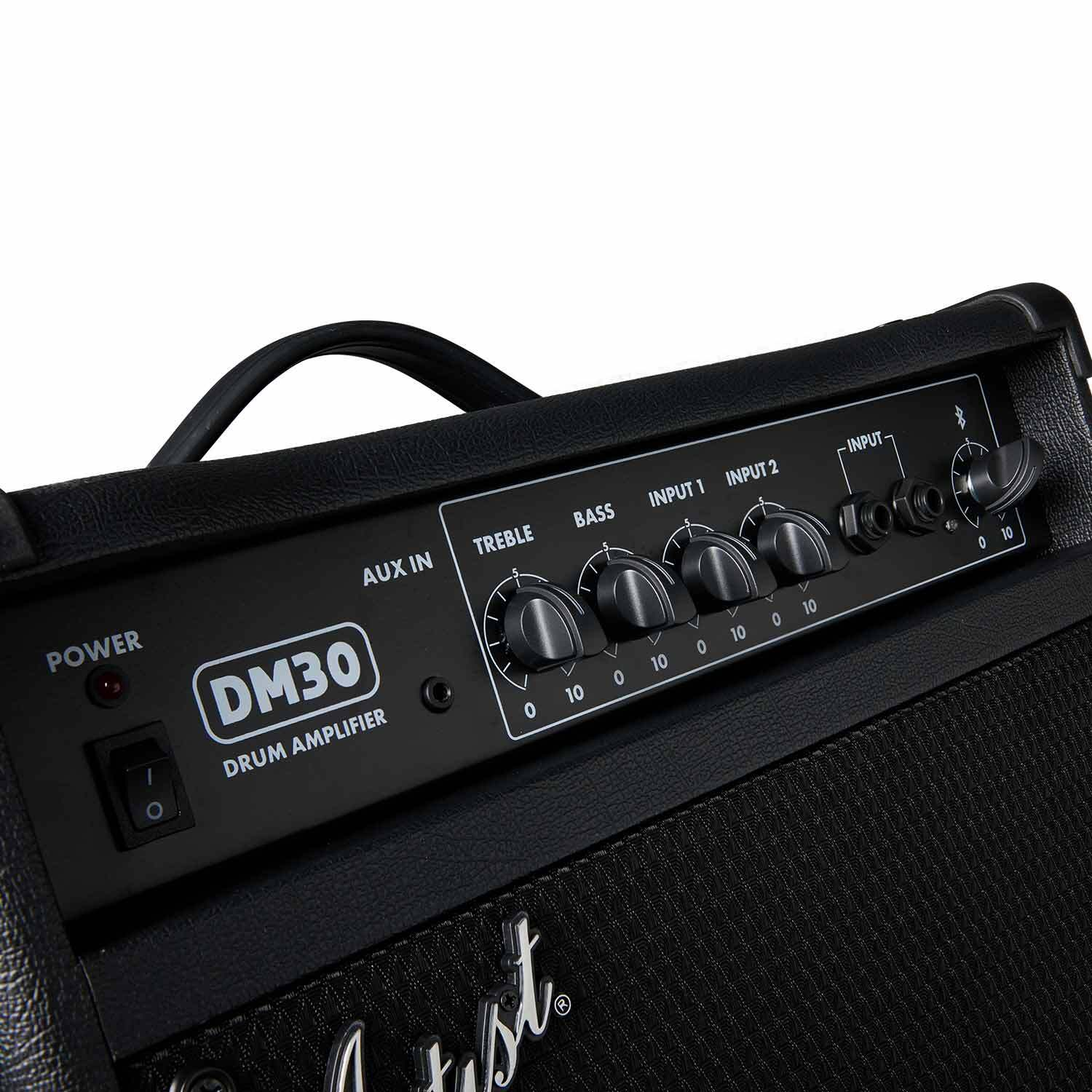 The Artist DM30 is the ideal amp for all your electric drum kit needs! Designed for use with our EDK models, the DM30 is equipped with coaxial 10” and 3” full-range speakers for the best possible frequency response to electric drums, and comes equipped with powerful core DSP processing technology to ensure it always performs well!