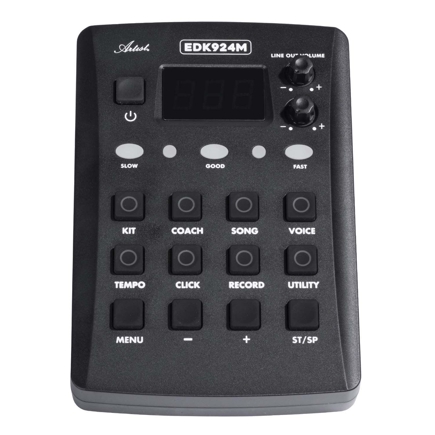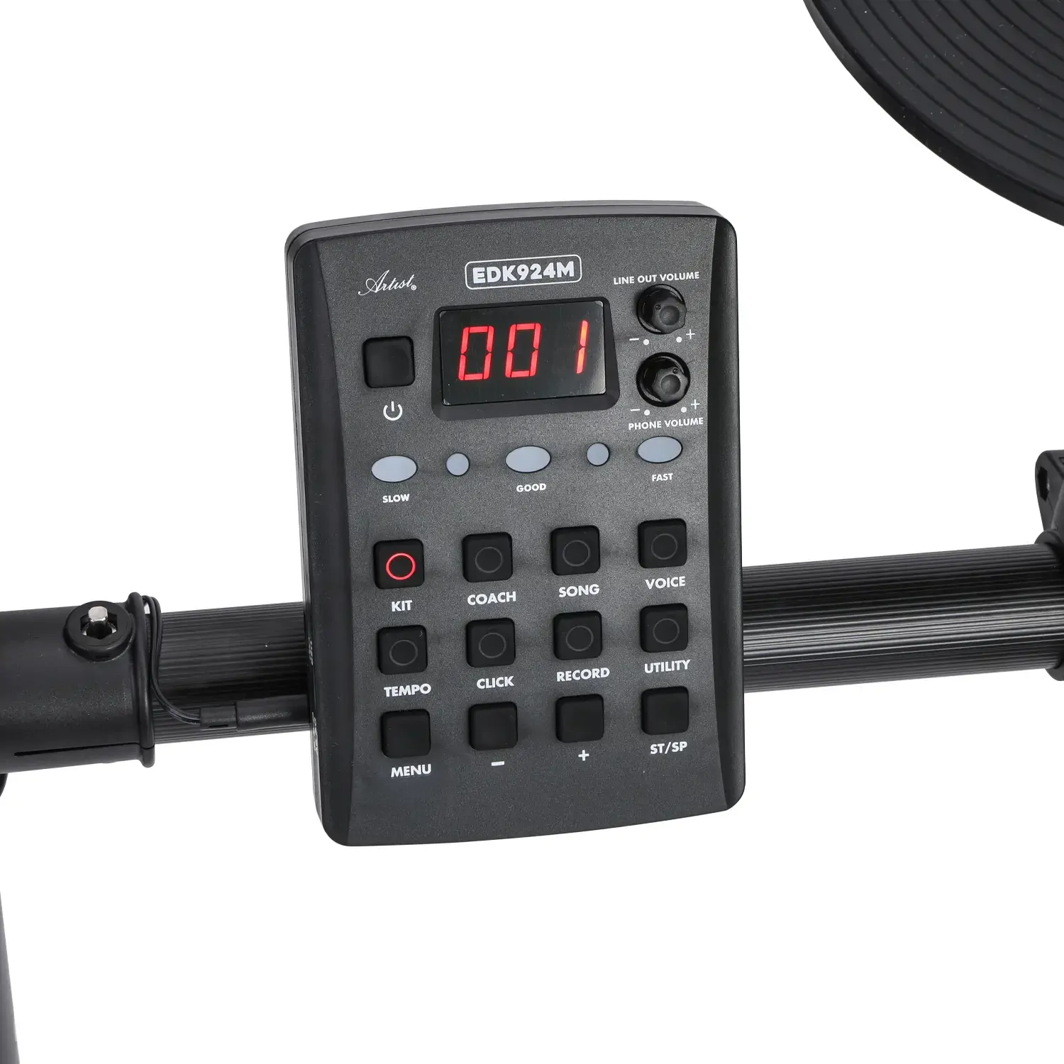 Featuring the newest Electronic Drumkit from Artist! The Artist EDK924M is a 9-piece Electronic Drumkit featuring Mesh Drum Heads for the kick pad, snare, and 3 toms. With the new mesh heads, they give you a remarkably close feel and rebound similar to an acoustic drumkit.