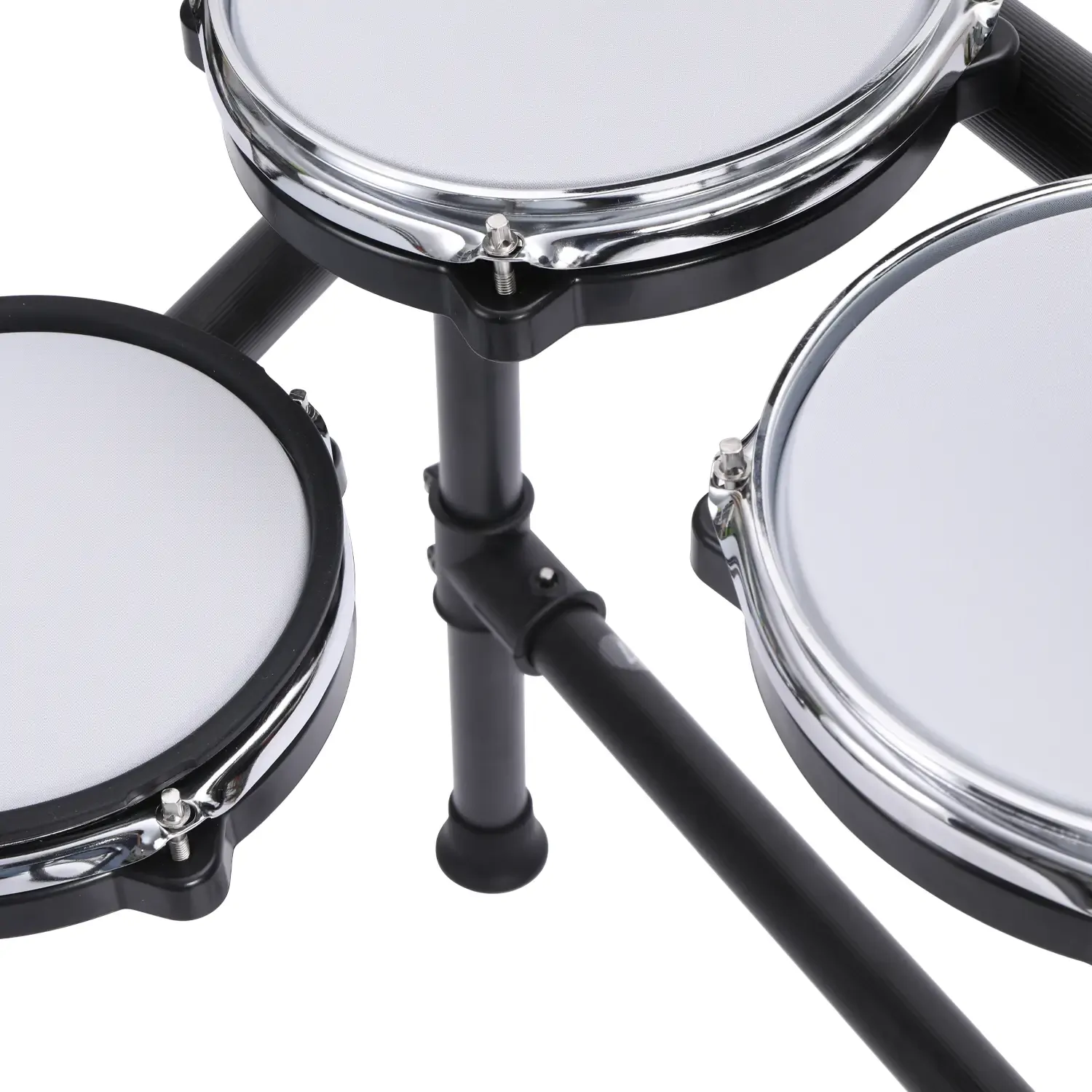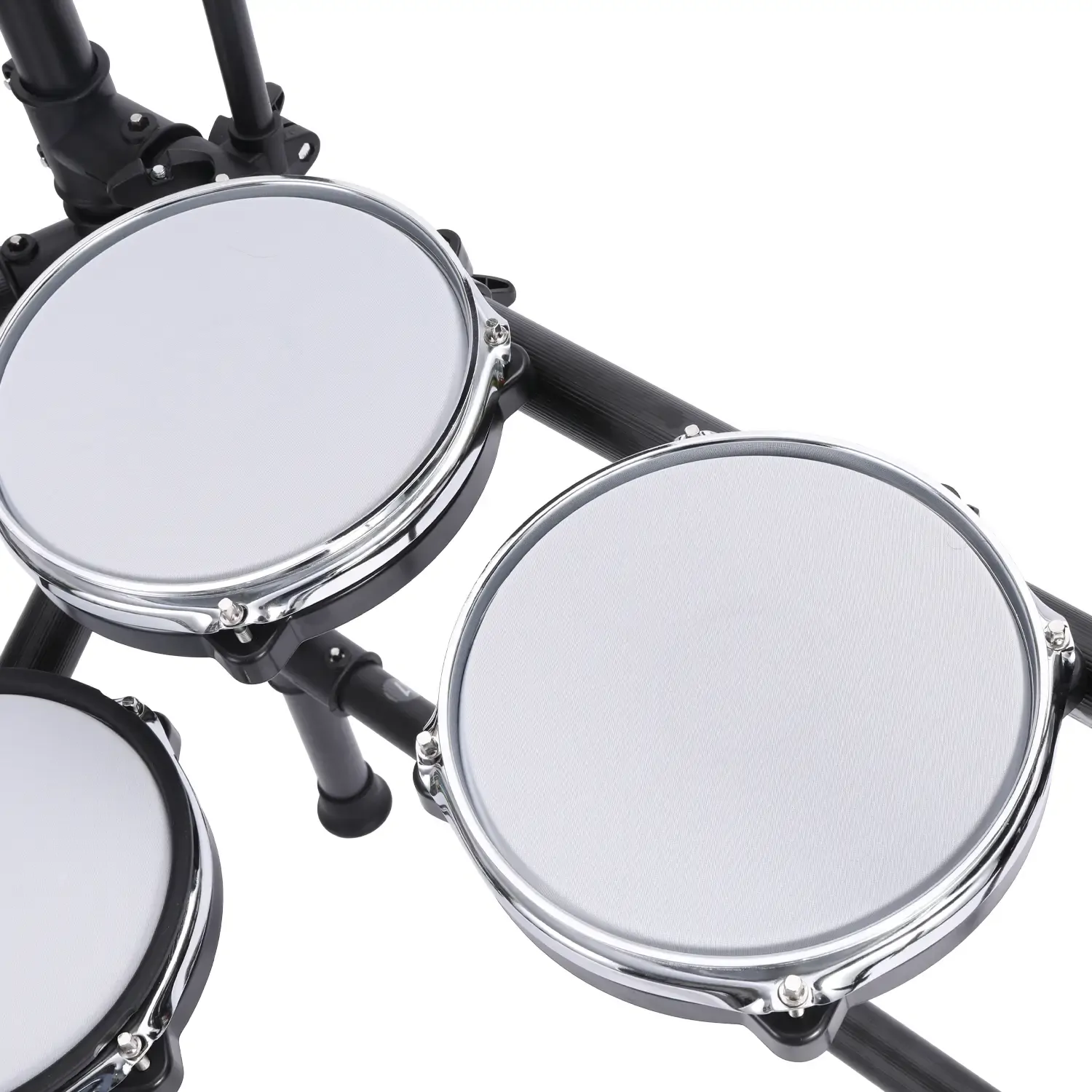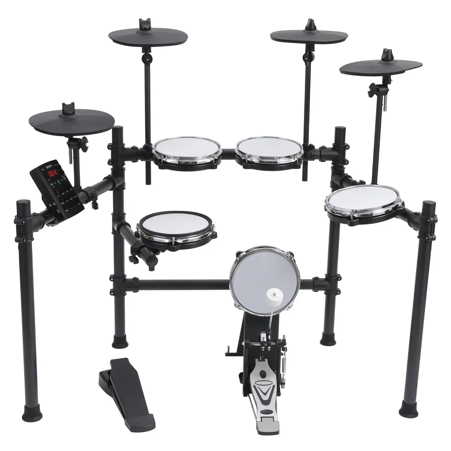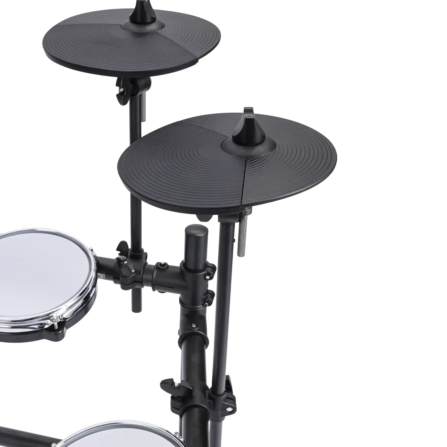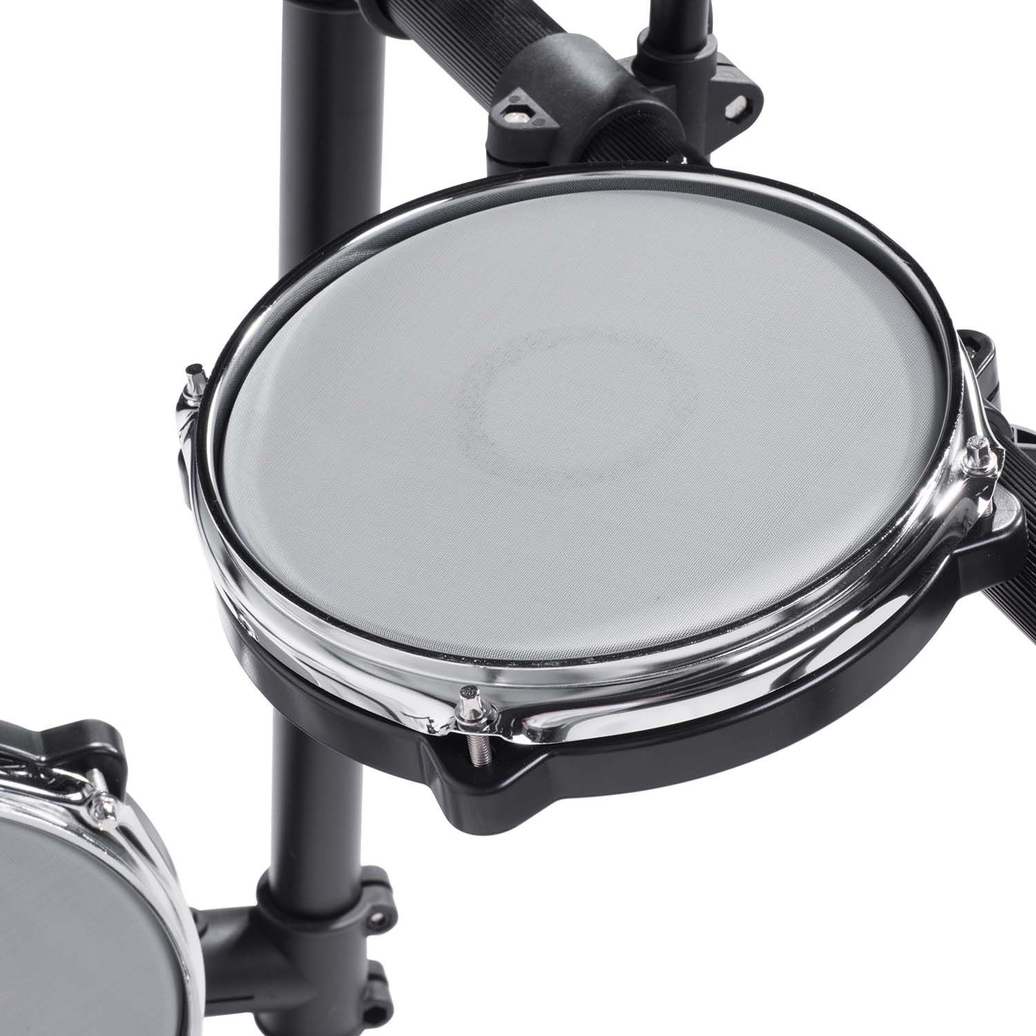 The snare pad uses stereo a stereo input to allow double triggering The Crash 1, Crash 2 and Ride Cymbals now also use stereo inputs to support choke function. The drumkit also offers recording and a coaching function to assist in learning and practice. The drumkit module can be connected to a PC for easy recording and also allows media devices to be connected for using backing tracks and playing along to your favourite songs.