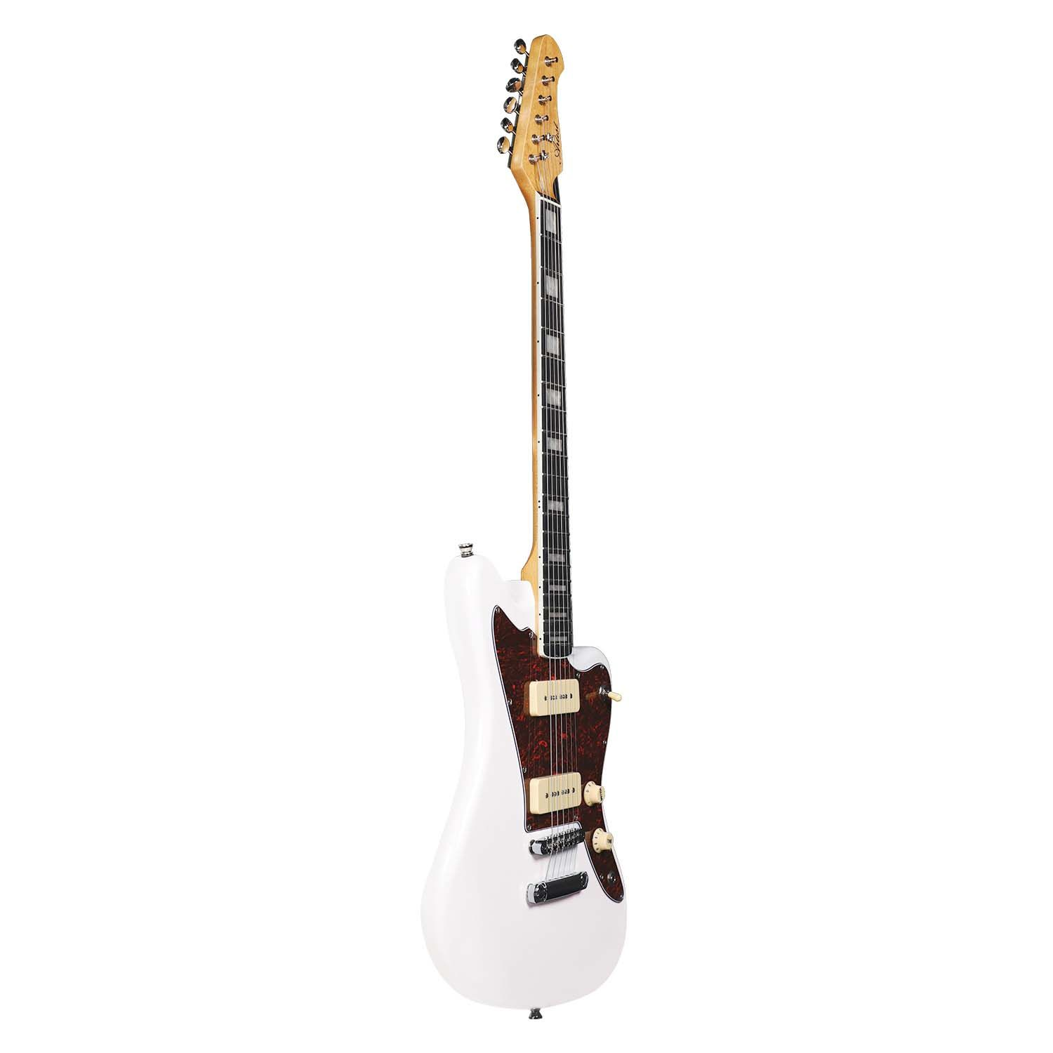 It comes with a Poplar body, Canadian Maple Neck with Eco-Rosewood fretboard and block-shaped Inlays, two 'P90' styled Single Coil Ceramic Bar Pickups with a 3-way selector, Chrome Tune-O-Matic bridge with a Stop-Tail-Bar for greater stability, and Vintage Covered Chrome Machine Head tuners.