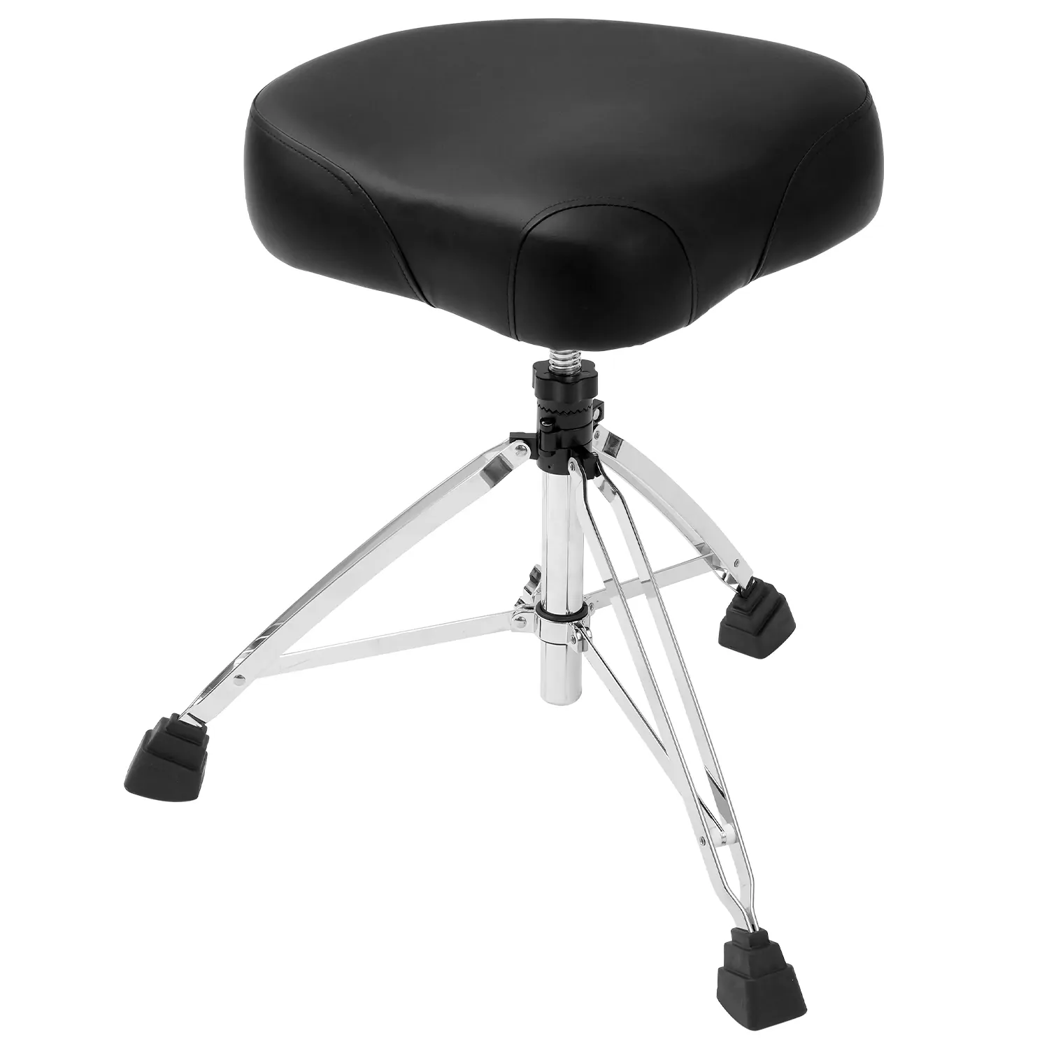 The Artist HG7H is a solid, road-ready drum throne built for serious players. It features a double-braced tripod base for added strength and stability, with rubber feet that grip well on both polished floors and carpeted stages.