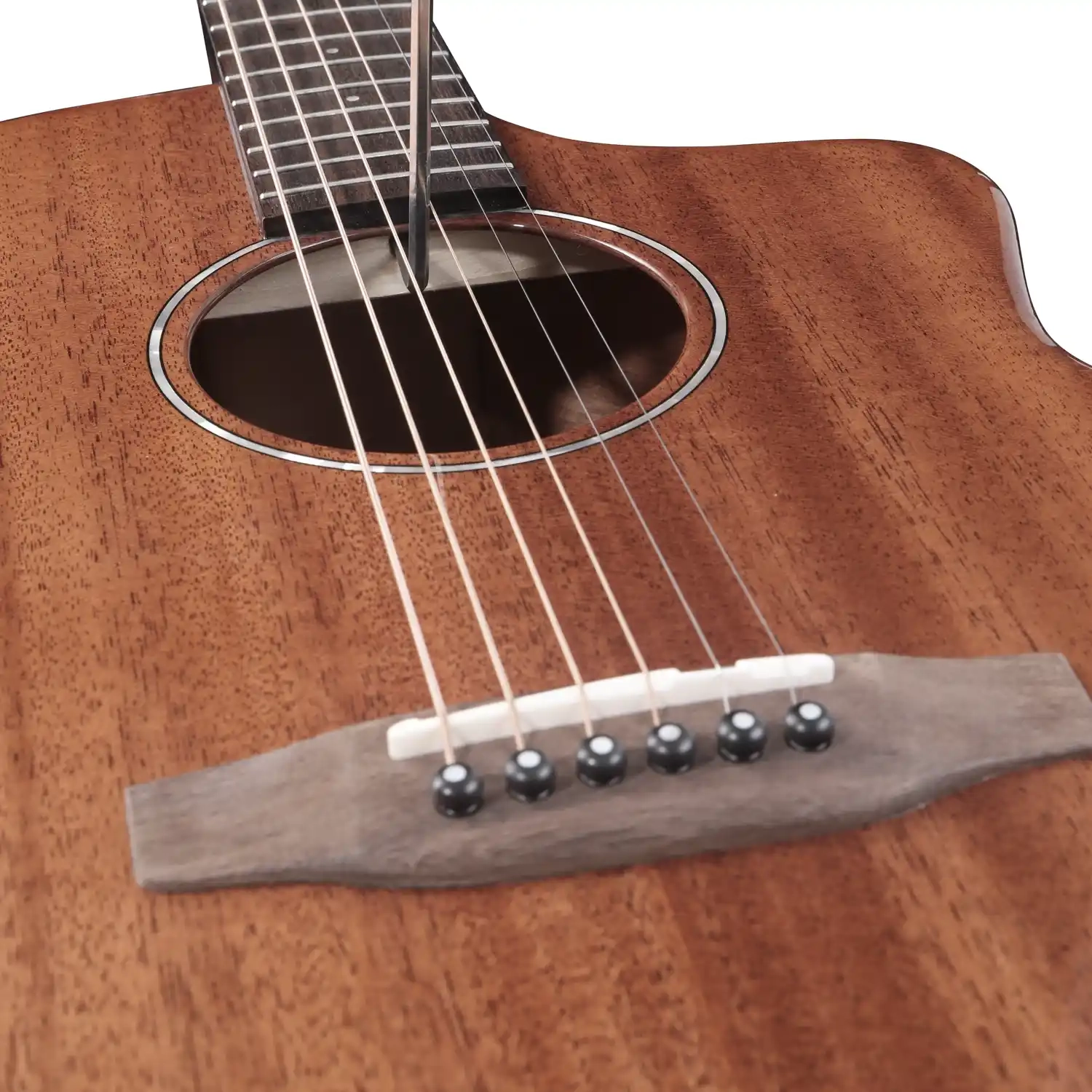 The Artist JMH200CEQ combines premium woods, high-grade hardware, and top-notch finishing, with a premium Fishman® pickup, resulting in a guitar that punches well above its price tag. The JMH200CEQ produces full, warm tones from a solid mahogany top, with a harmonious mid-range and clear upper mids. The bevelled edges of the body give this one a highly ergonomic feel, while accenting the deep grain of the mahogany top against the white binding - a guitar that feels incredible in your hands, and looks even better under stage lights!