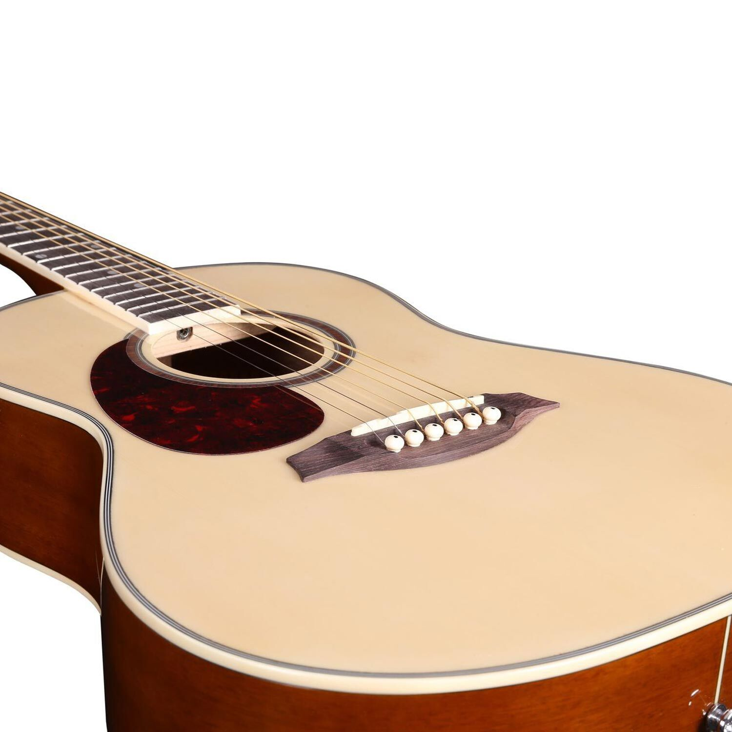It has a Low String Action (all our guitars are set-up at the factory for optimum beginner playing level). String action is the measurement from the top of the 12th fret to the bottom of the string. This is very important because a guitar with a high action is hard to play, a guitar with too low an action will buzz and sound bad. Artist Guitars are set up at the factory for the optimum level for a beginner.