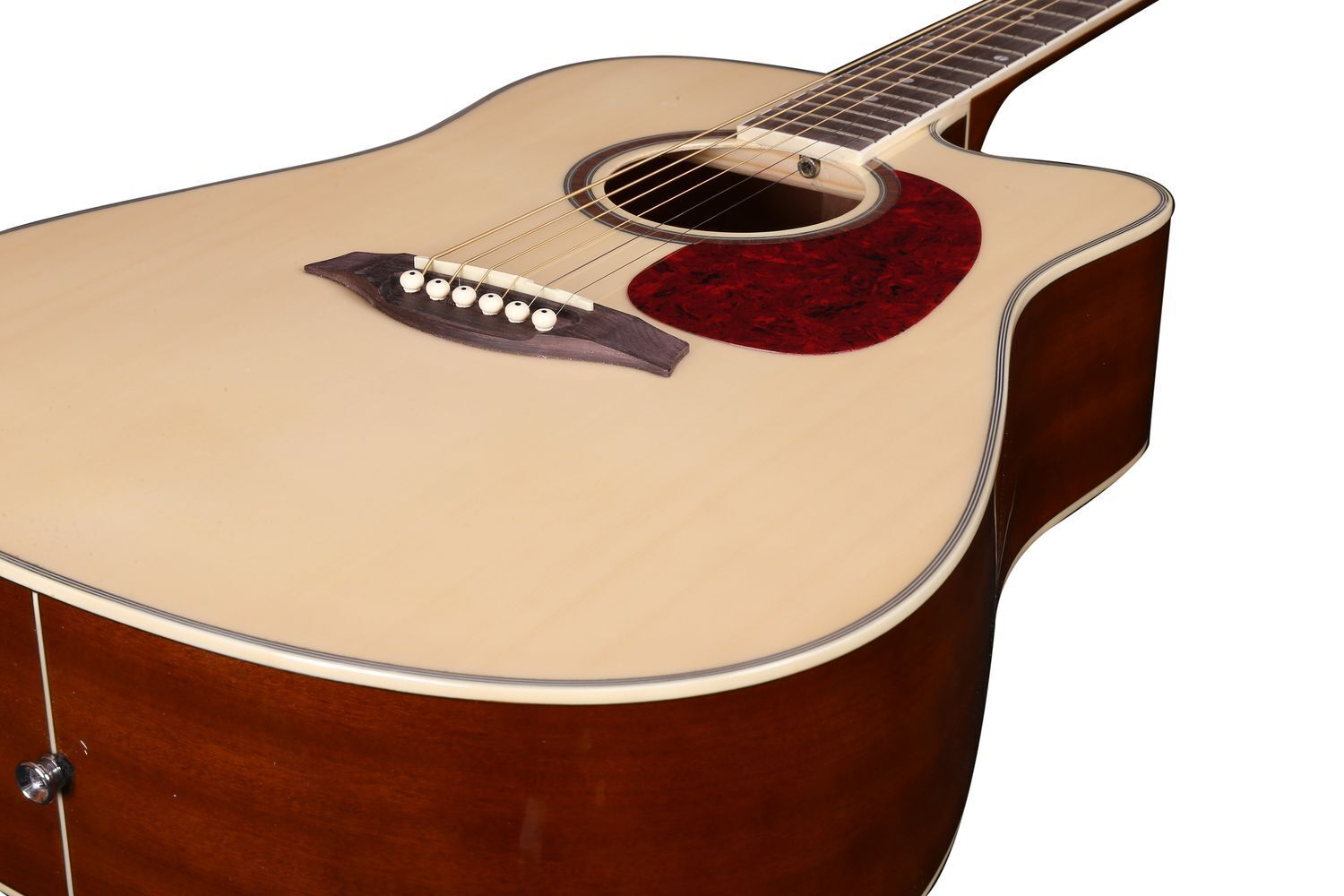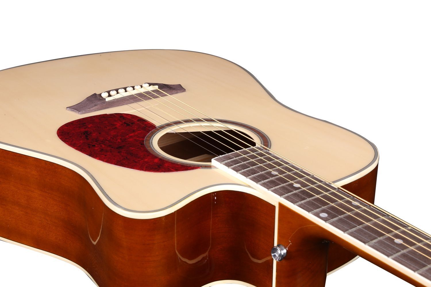 It has a Low String Action (all our guitars are set-up at the factory for the optimum beginner playing level). String action is the measurement from the top of the 12th fret to the bottom of the string. This is very important because a guitar with a high action is hard to play, a guitar with too low an action will buzz and sound bad. Artist Guitars are set up at the factory for the optimum level for a beginner.