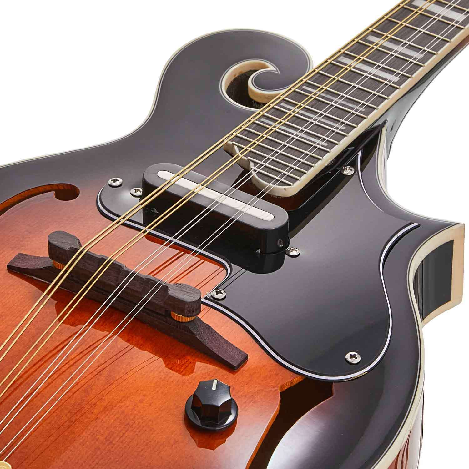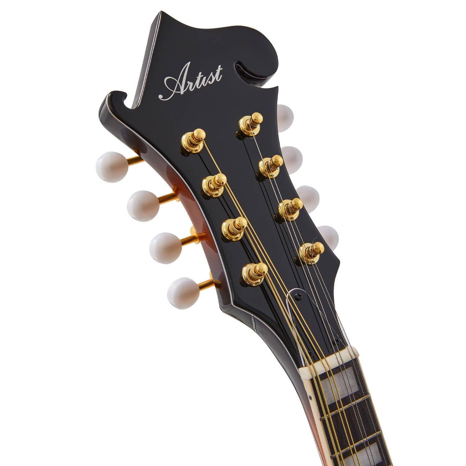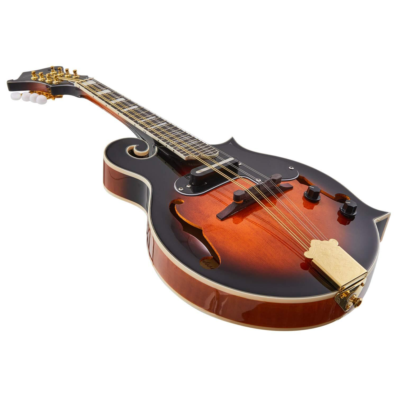 The MDF100EQ is the latest and greatest Mandolin in the Artist range! This premium F-Style Mandolin features a solid A-grade spruce top with flame maple back and sides. With a European maple one-piece neck for improved sustain and a Purple Heart fretboard, every inch of the MDF100EQ is designed with looks and durability at the front of mind. The inbuilt pickup and EQ allow you to plug into an amp and speakers and shape your tone to your heart's content. From the gold-plated machine heads to the golden tailpiece, every inch of the MDF100 is ornately crafted and once picked up, is nearly impossible to put down. For the discerning mandolinist looking to be heard over the crowd, this will be a hard one to pass up.