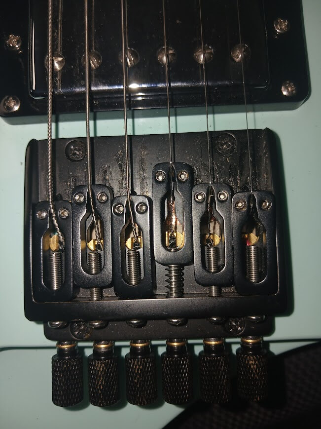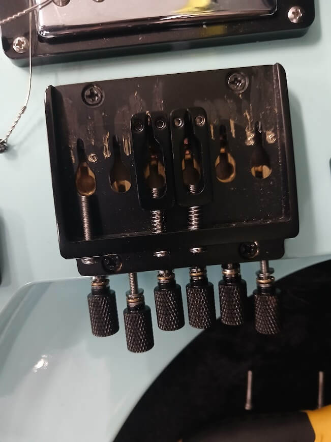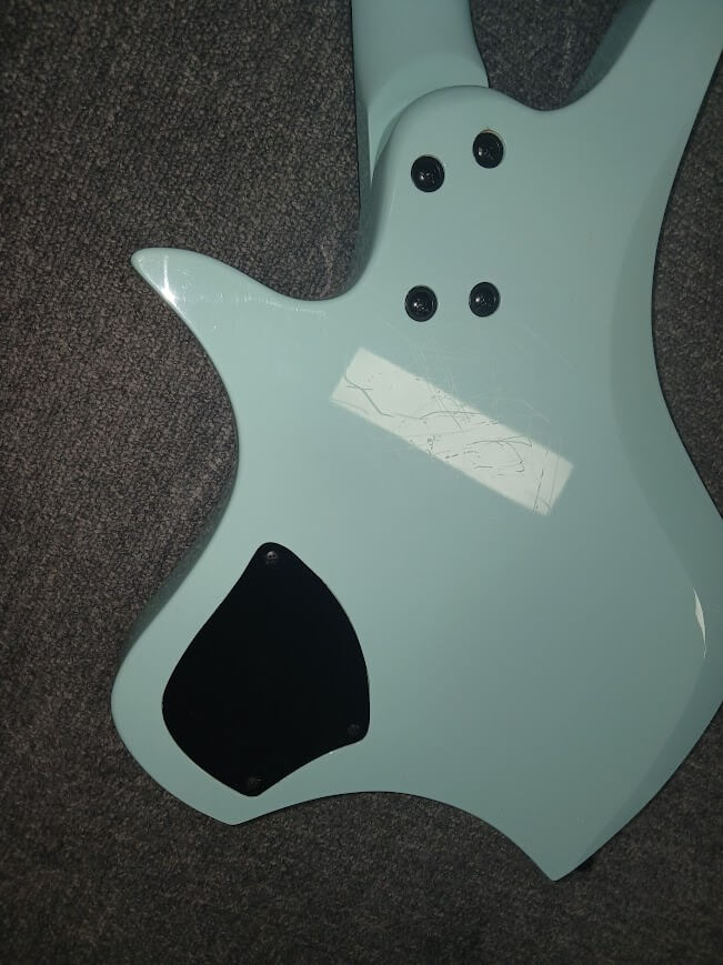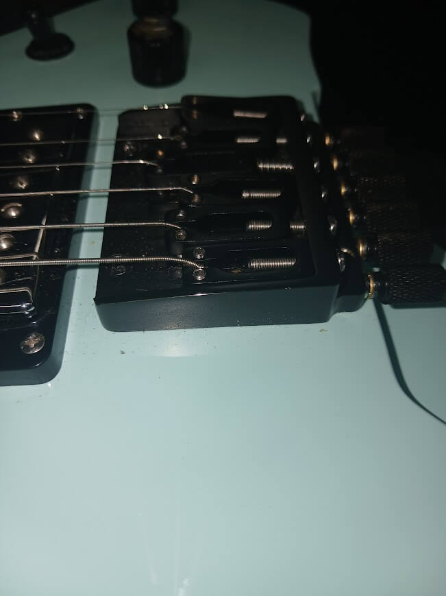 Customer Return - Multiple deep scratches on the paint job of the guitar - See photos. The bridge has signs of serious cosmetic damage (see photos). The damage is purely cosmetic. The action and intonation at the saddles will need to be adjusted before use.