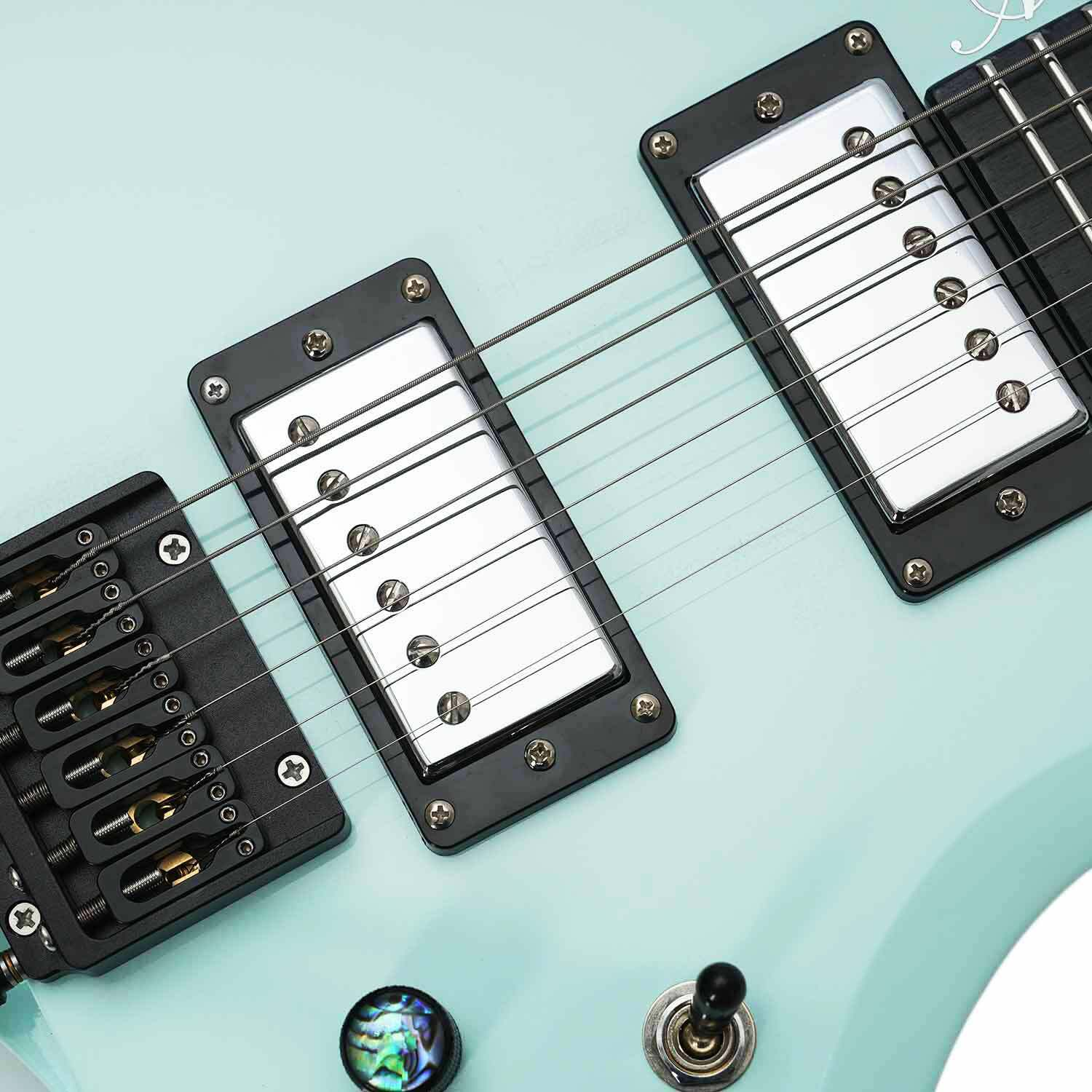 Having tested untold amounts of pickup options, we settled on a set of high-end, hand-made pickups wound by the Laohao workshop, a small team producing low-quantity batches of custom pickups to a frankly unbelievable standard. Push-pull pots allow for coil-splitting in every position, so you can get some high-output shredding done, or some spanky, slinky riffing when in single coil mode, while-pasted copper shielding ensures minimal noise no matter your settings! For a riffstick that sounds and feels as good as it looks, give the MODRIC a try!