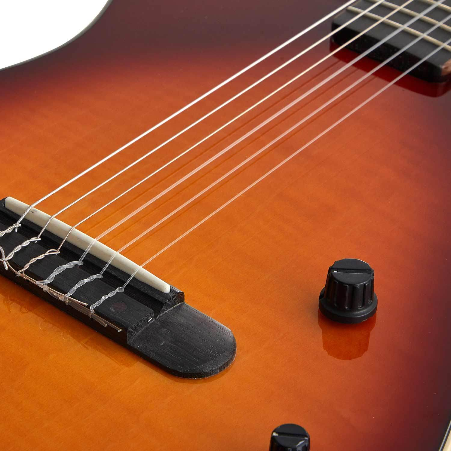 This one's for all the modern prog fans out there! The Artist NTL1 is a thin-body nylon classical guitar that combines the ergonomics of an electric guitar with the inimitable tone of nylon strings! With a slim C-shaped neck, Purple Heart fretboard with walnut binding, and a piezo pickup controlled by a single volume and tone, the NTL1 is a simple, lightweight, high-quality instrument that will suit classical guitarists and prog fans alike! As usual, we've decked this one out with quality appointments - high-grade tuners, a bone nut and saddle, Purple Heart bridge, and an ultra-slim 44.5mm body with a belly contour are just some of the incredible aspects of the NTL-1!
