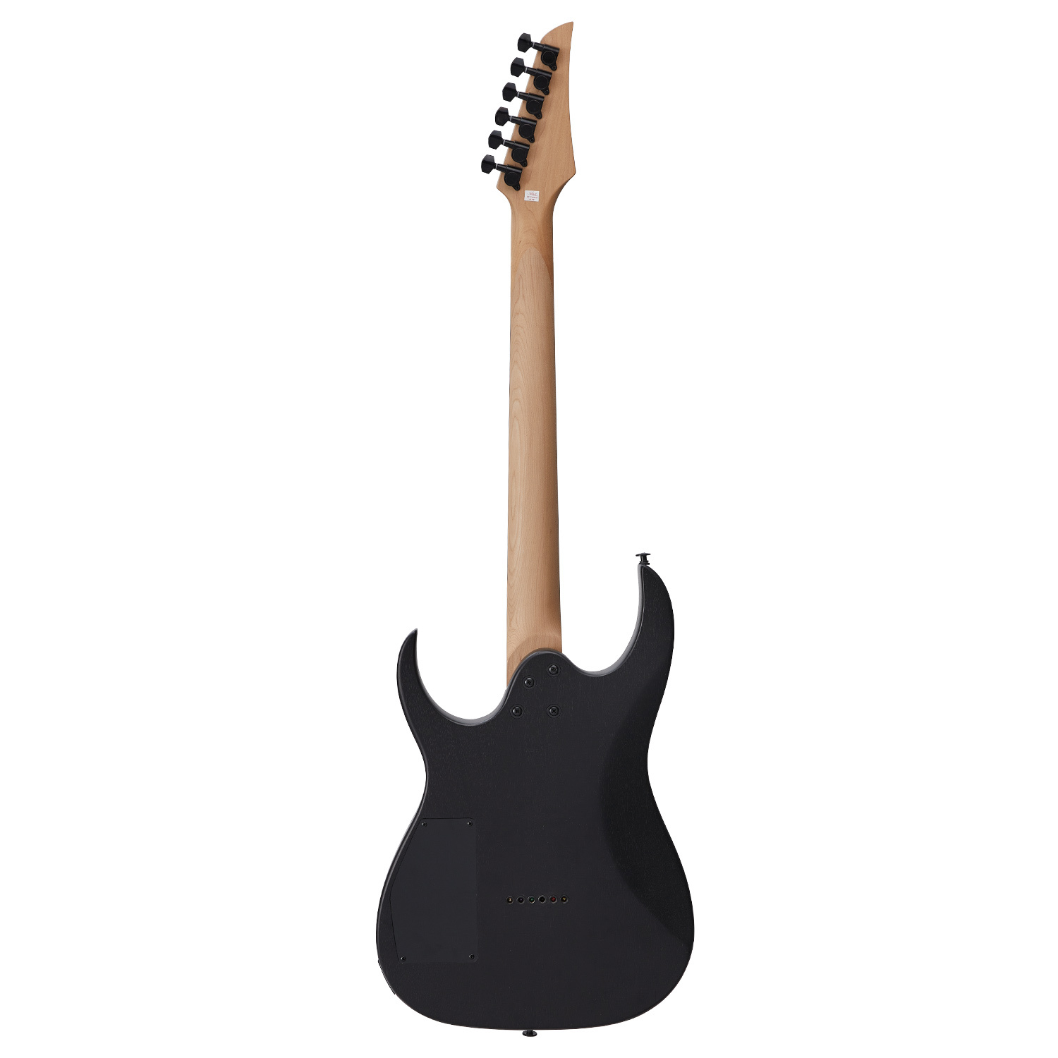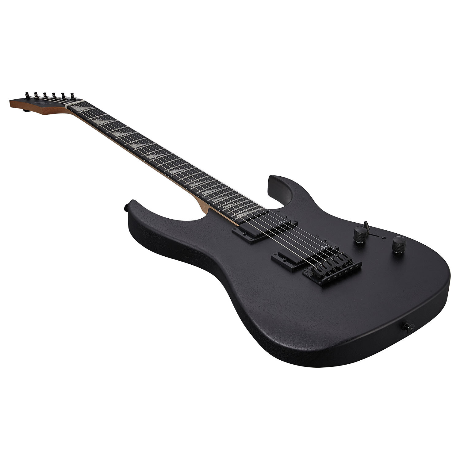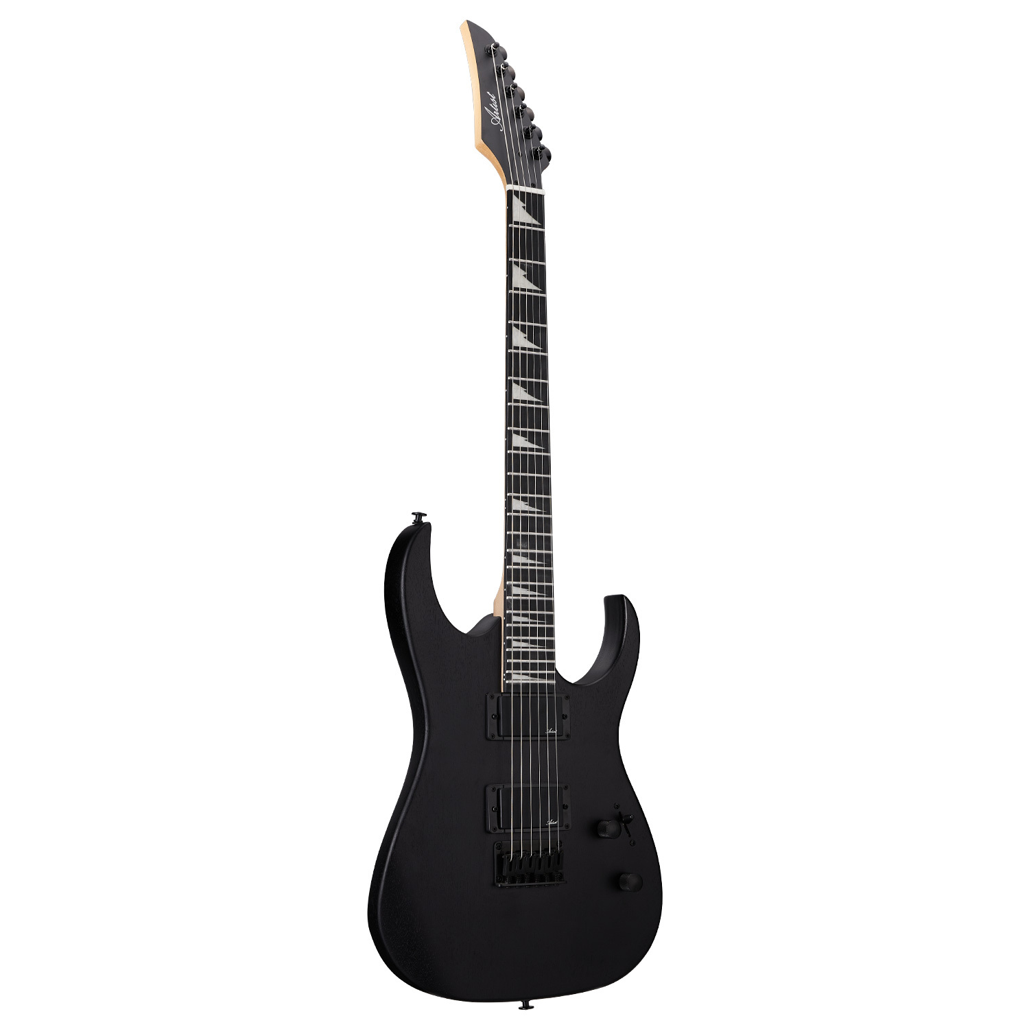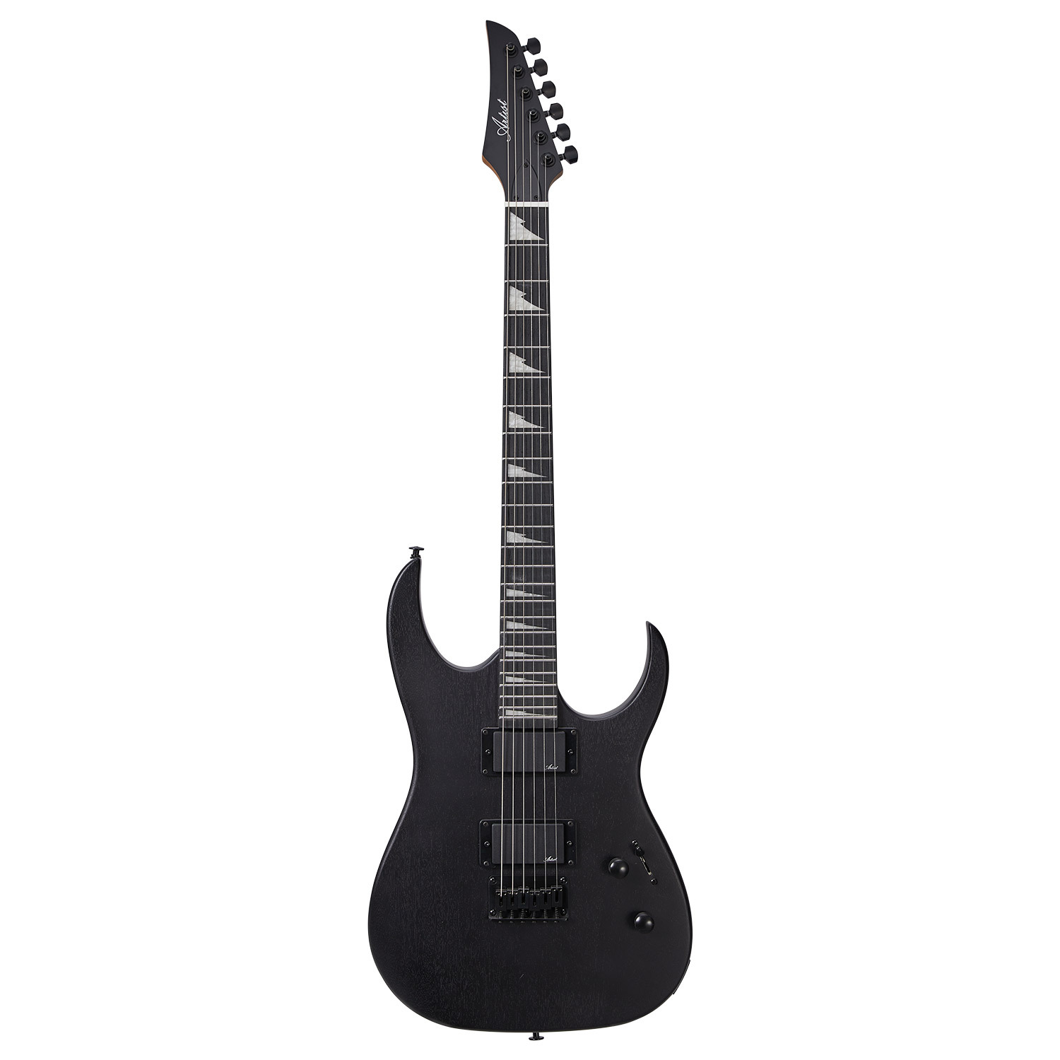 The Mahogany body has an Open-Pore Matte Black finish, a carved arm-contour and super-high neck access. The carved ergonomic Maple neck is comfortable, fast and smooth in the hand, and features 24 Jumbo frets over a 25.5” scale length on an Eco-Rosewood fretboard. Also featuring an iconic reverse headstock, this modern-style guitar is tied together with Shark-Tooth inlays and Matte Black hardware.