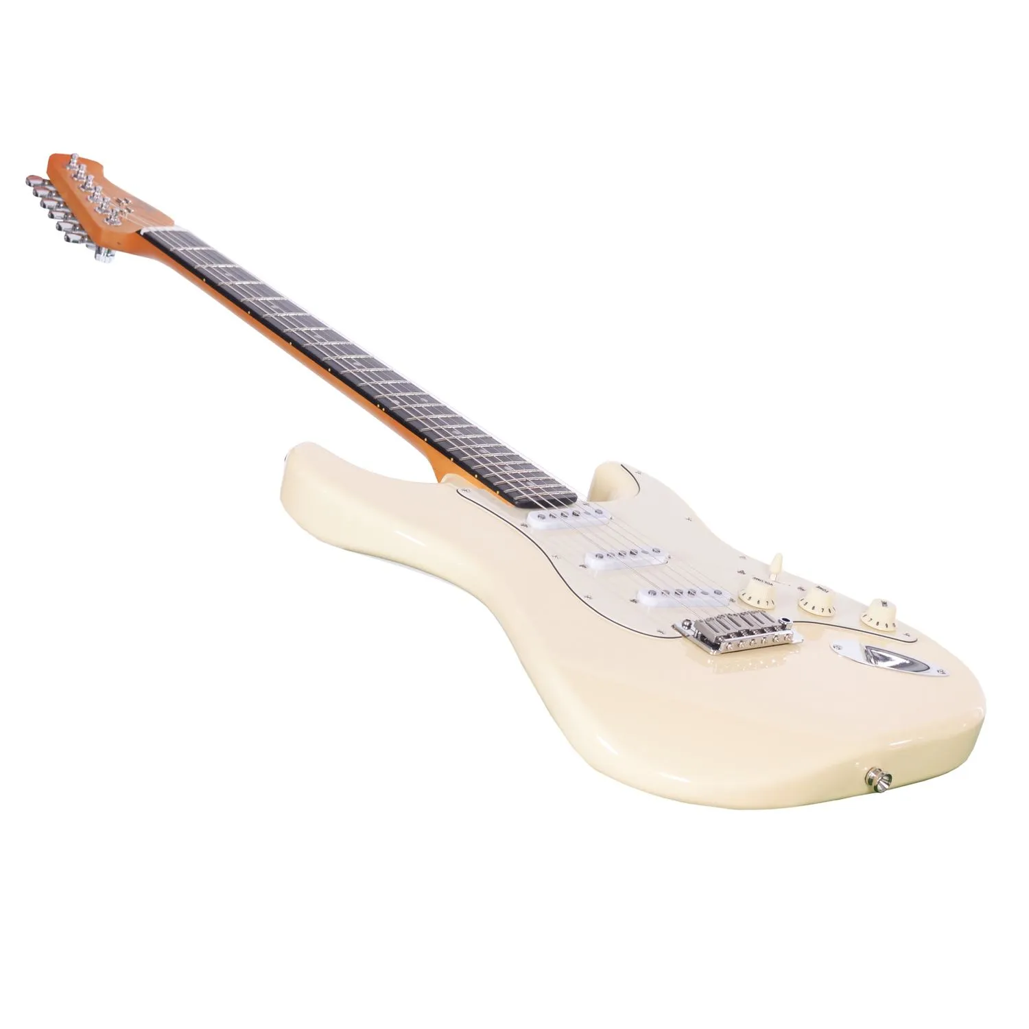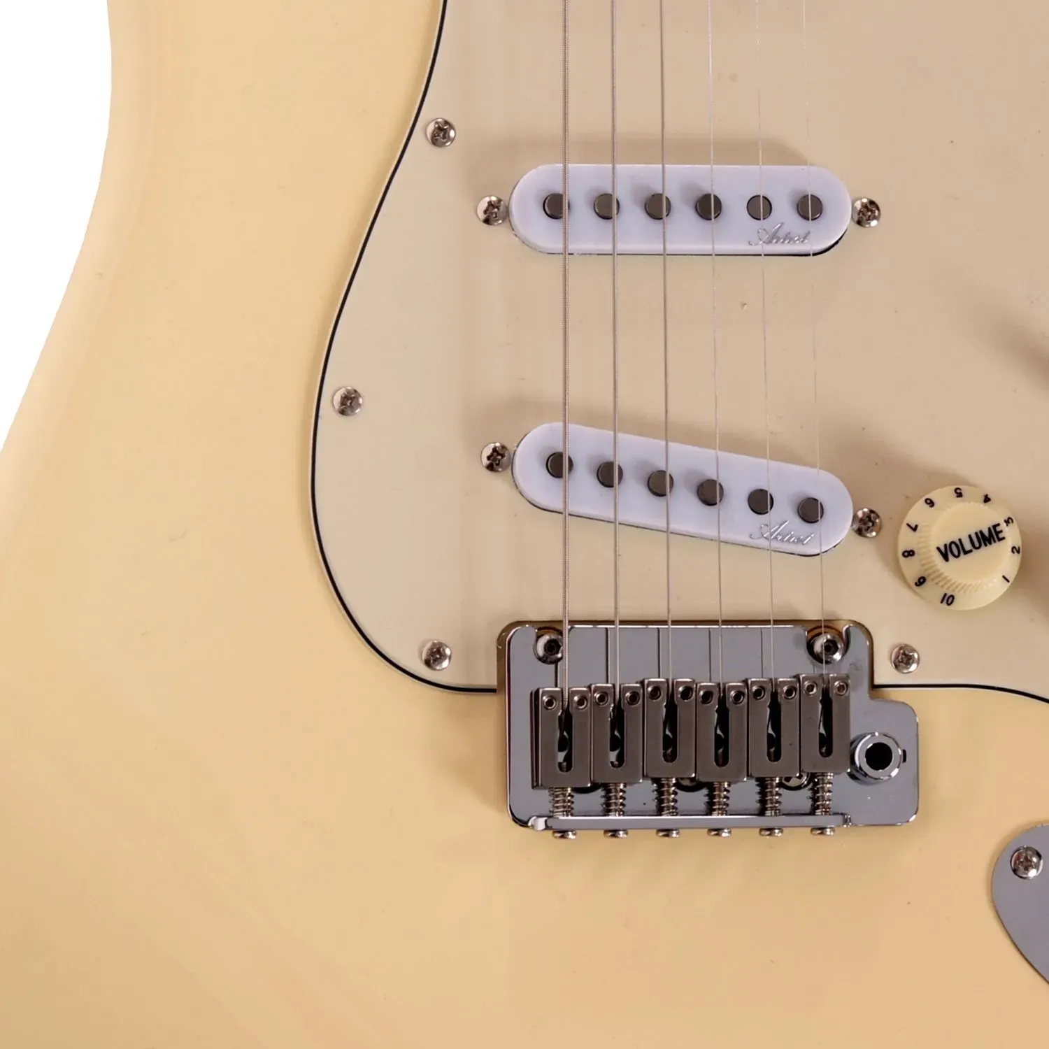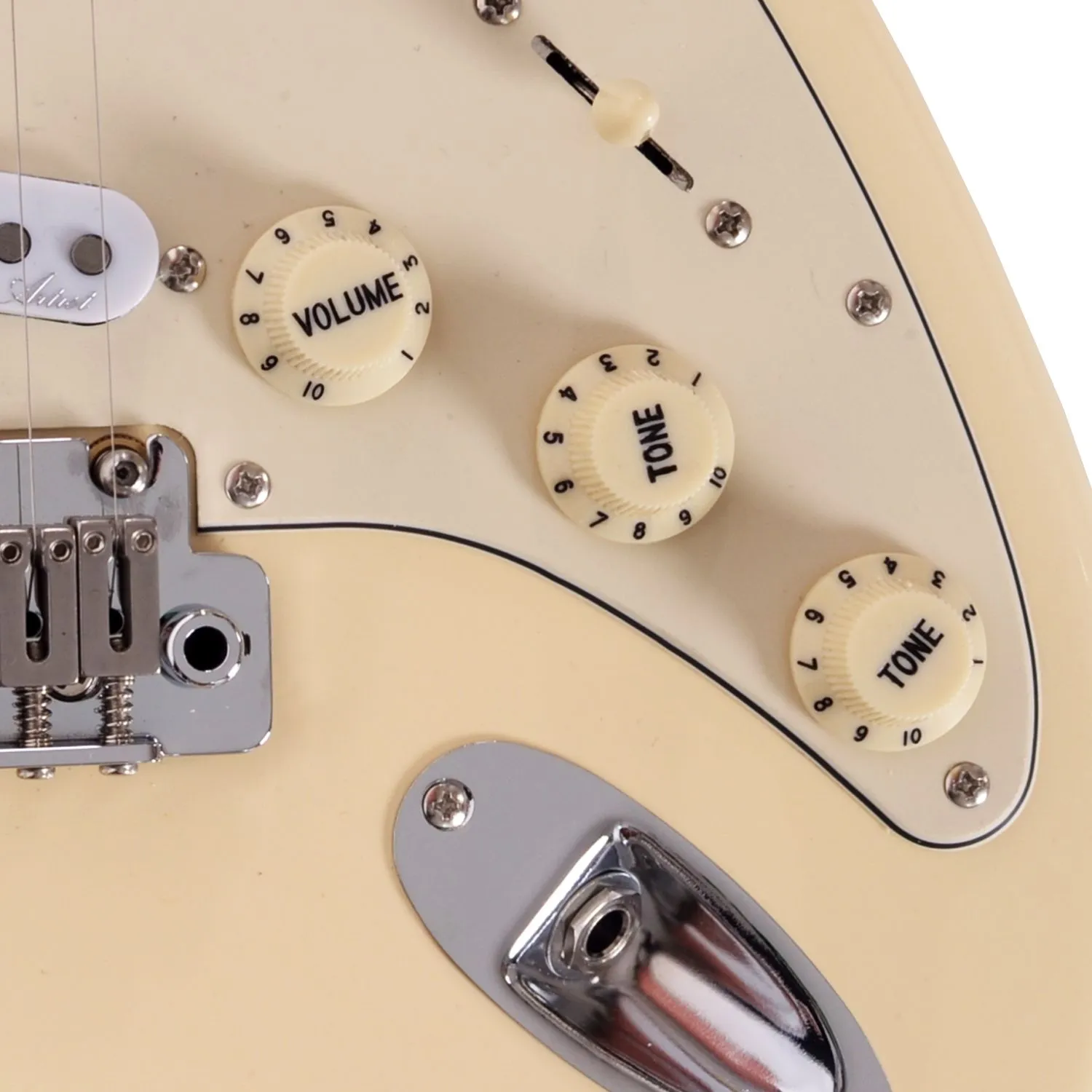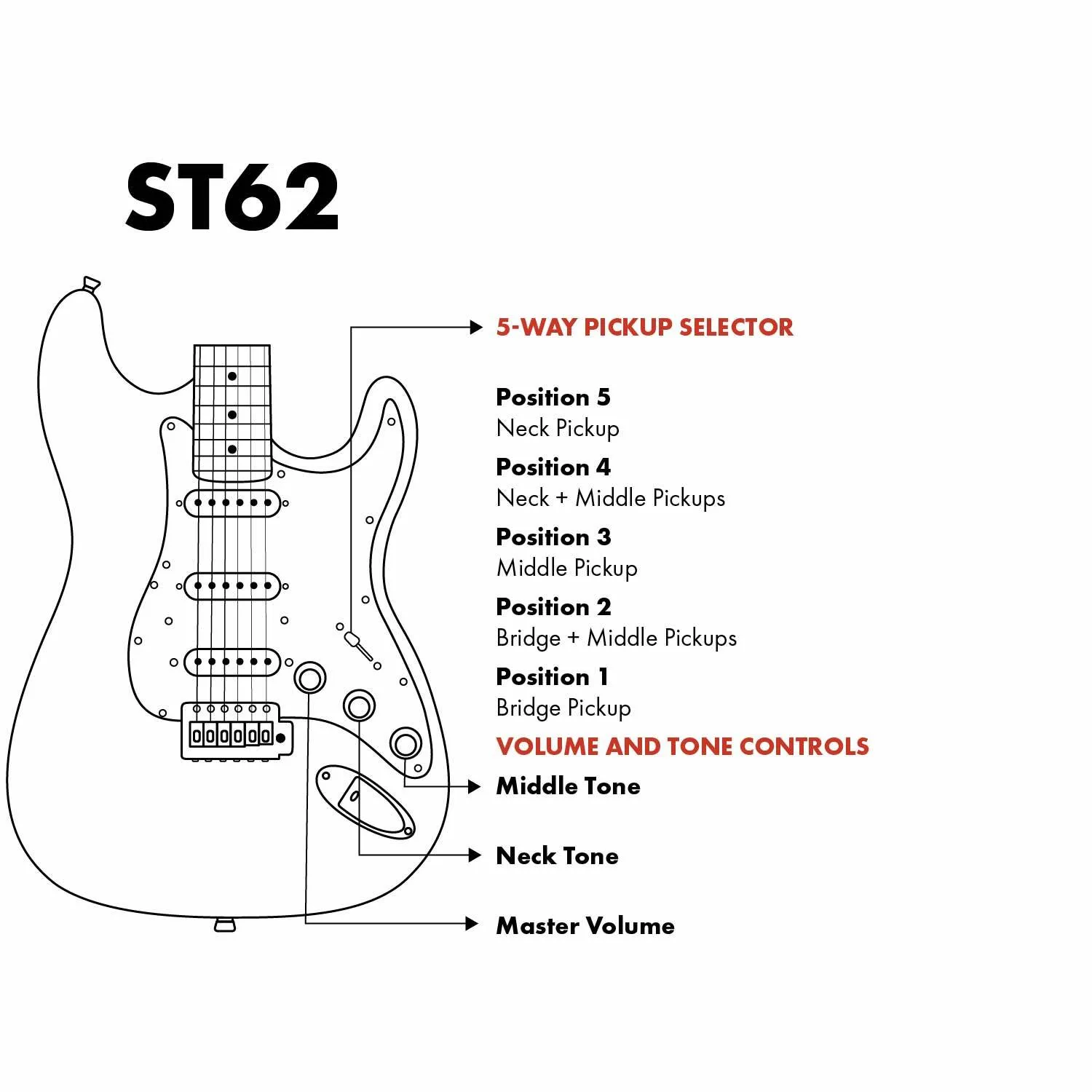 Improving on a design that has endured to the point of becoming ubiquitous in the 70 years since it first appeared on stages worldwide, the Artist ST62 is the ultimate gigging workhorse! Boasting a modern 2-pin tremolo with a slot-in/slot-out arm rather than the vintage screw-in design of old, the ST62 remains incredibly stable even under the heaviest of tremolo abuse, with high-grade locking tuners and a bone nut further ensuring you remain perfectly in tune: song after song, night after night. With an ergonomic '62 style, C-shaped maple neck topped with 22 medium-jumbo frets along the length of a new and improved, 12" radiused eco-rosewood fretboard, the ST62 feels innately familiar, recalling the neck profile of golden era vintage electric guitar design... without the golden era price tag!