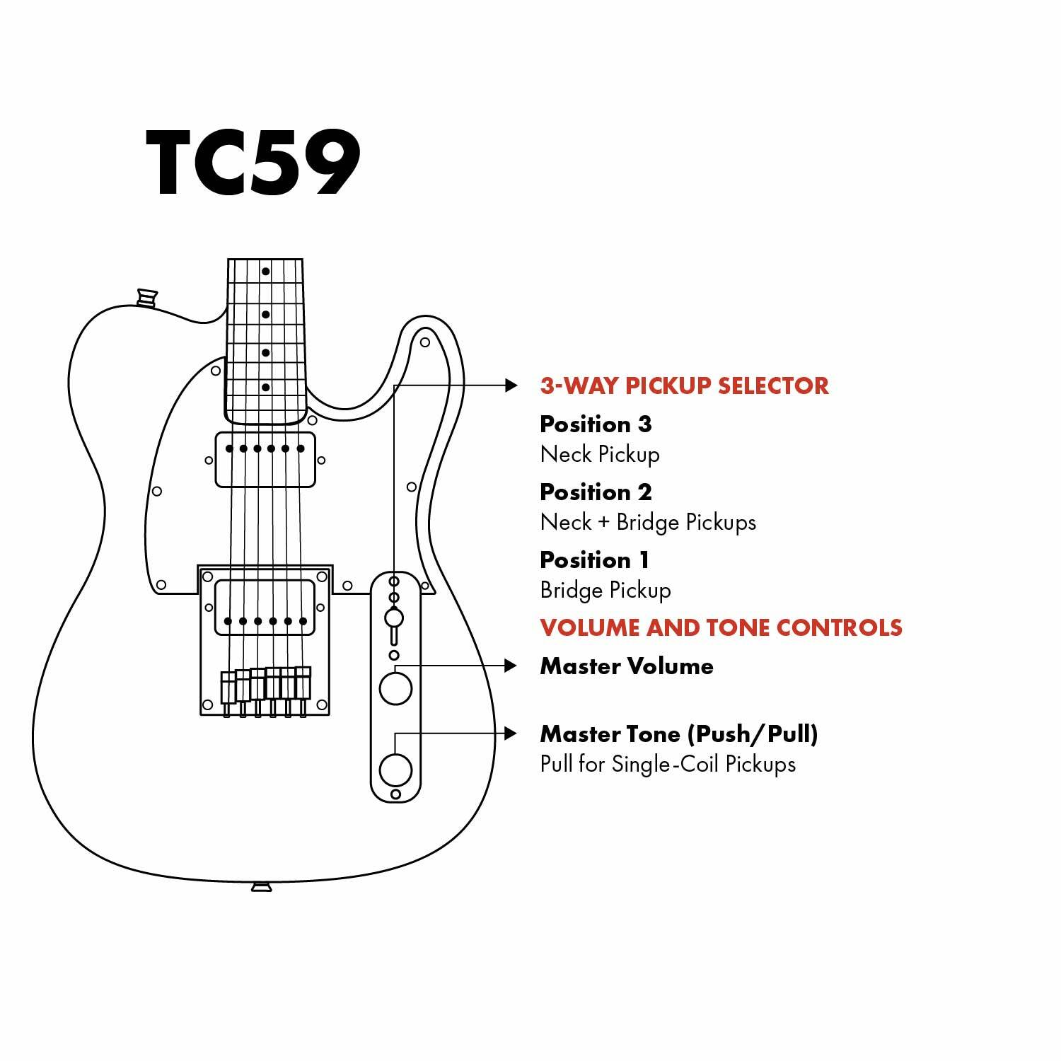 Sporting Artist's signature Bullbucker coil-splitting humbuckers, the range of sound possibilities that can be achieved from the TC59 whether it be jazz, blues, rock or country, is quite astounding. The Bullbuckers are a fantastic pickup in their own right and are starting to make some very positive noise among guitar players.