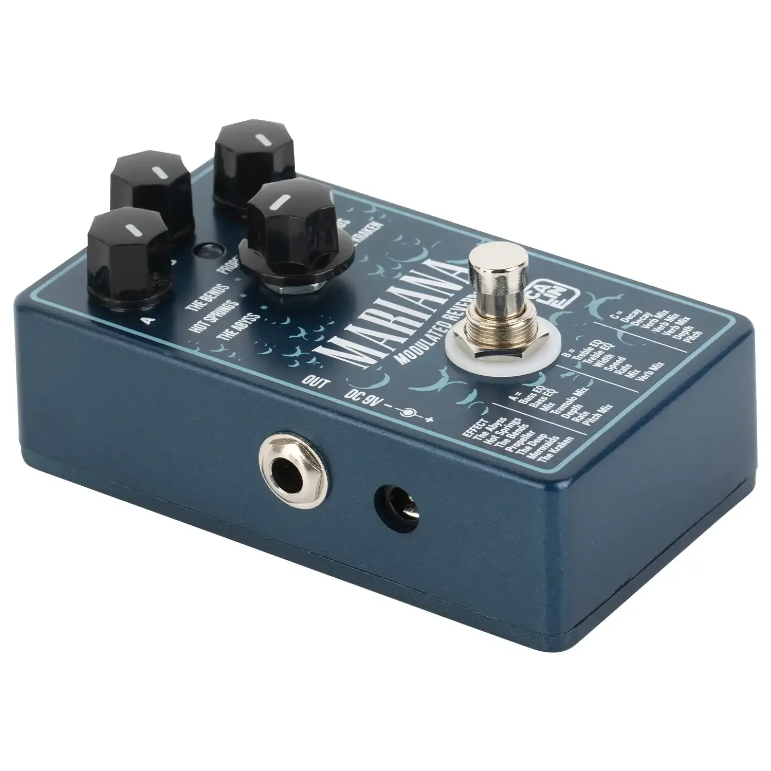 The Mariana Trench is the deepest part of the Pacific Ocean – a world that has yet to be explored and of which we know little about – less than we know about outer space. The Mariana crams 7 ‘out of this world’ modulated reverbs into one compact pedal offering amazing value for money and endless potential.