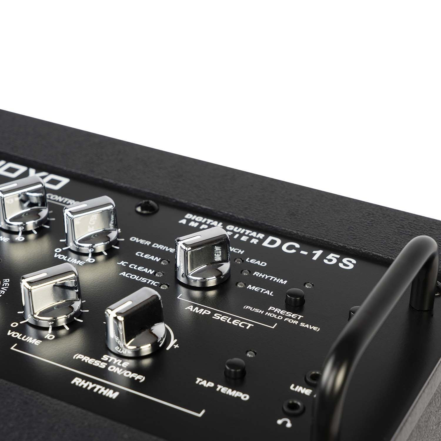 The JOYO DC-15s is an upgraded version of our best selling solid-state home practice guitar amplifier the DC-15. This upgraded model brings the compact combo amp into the modern-day; it is fully equipped to give a guitarist everything they need in a box for at home or performing.
