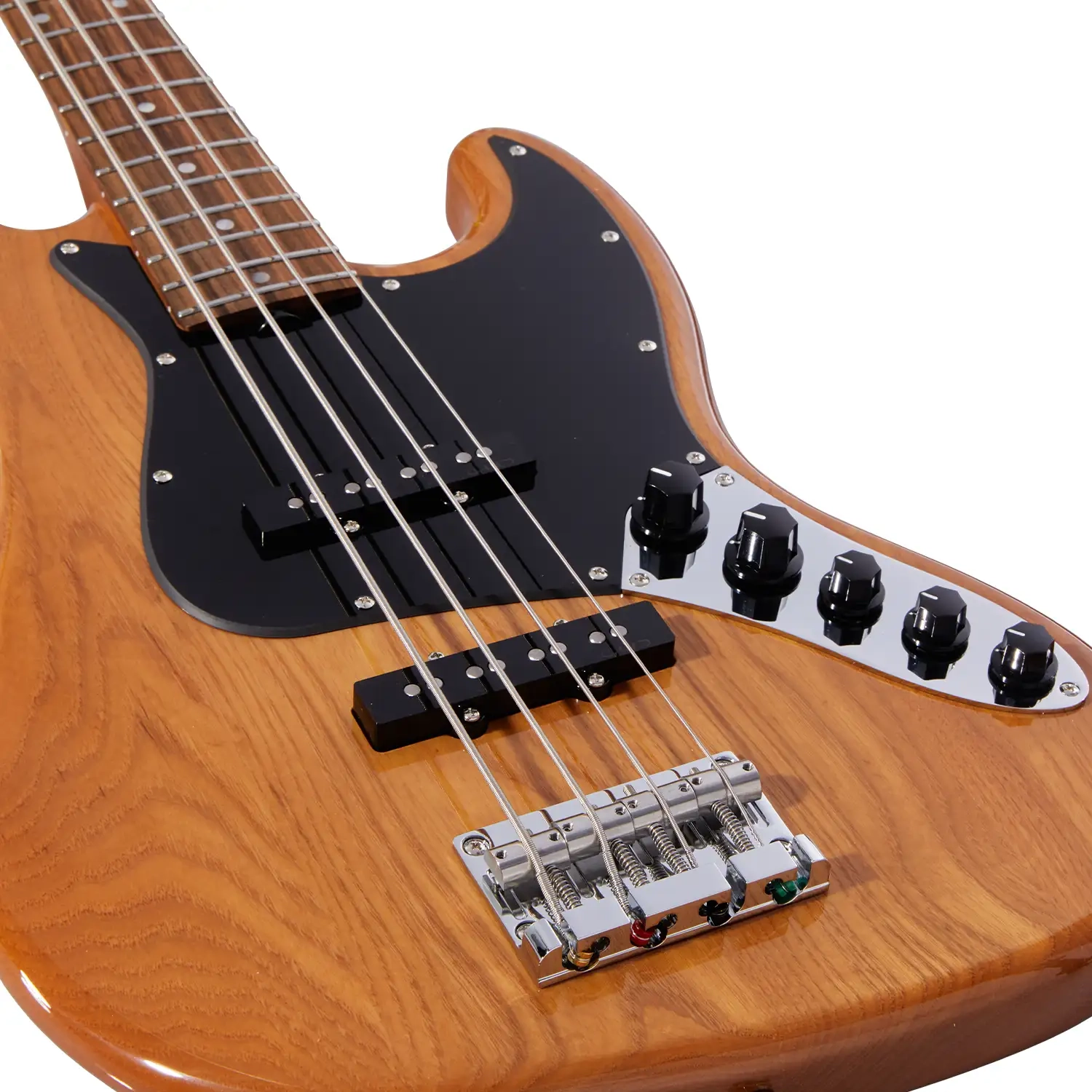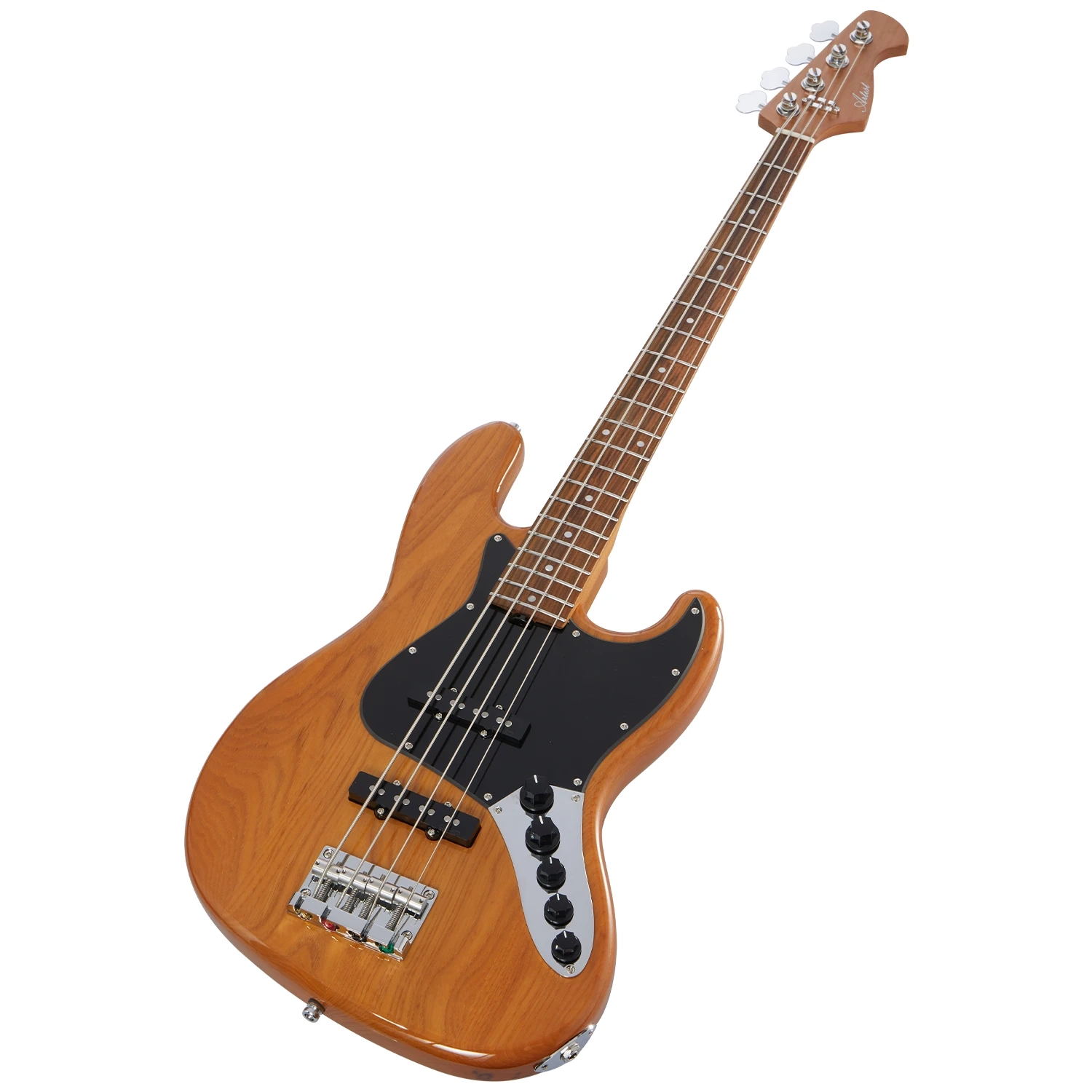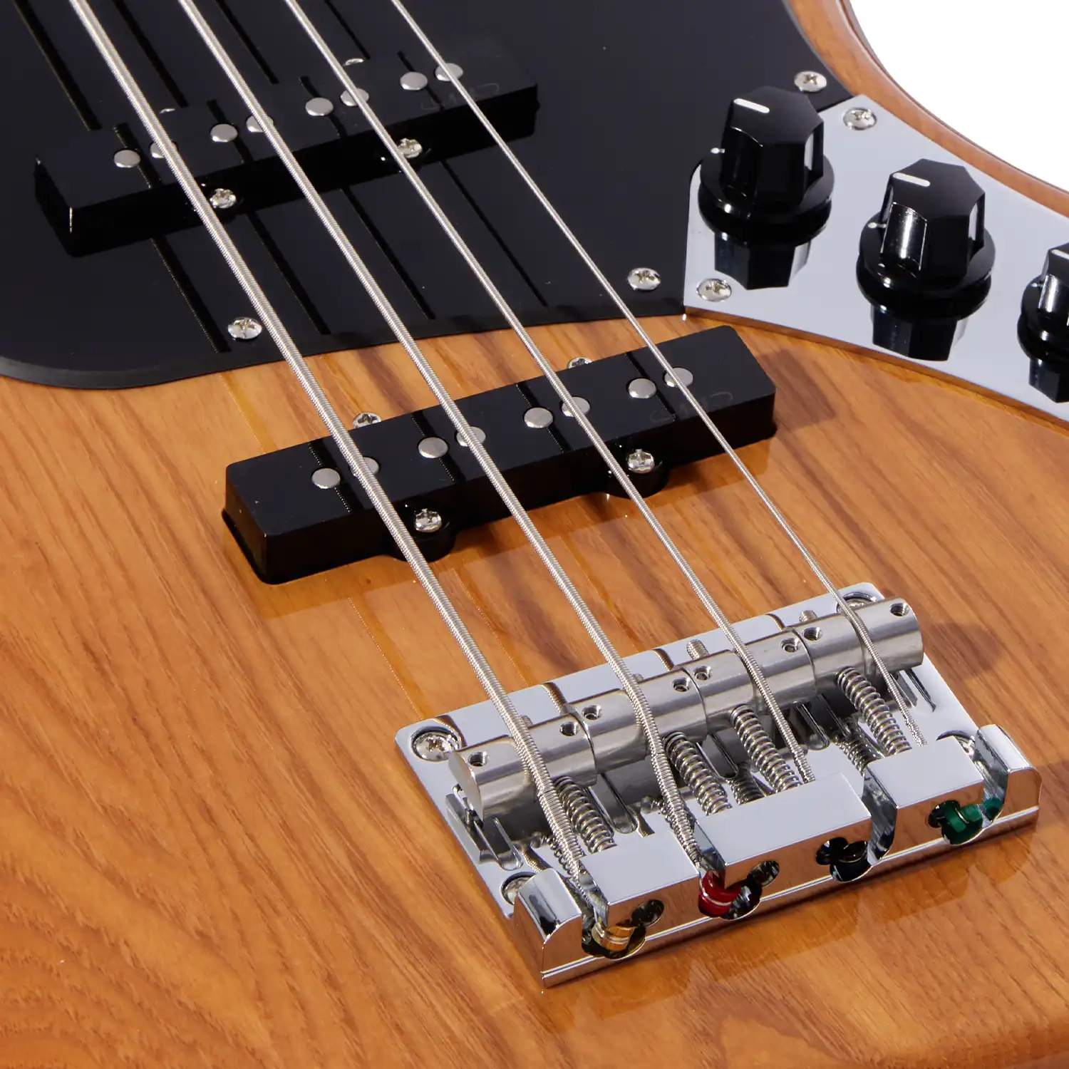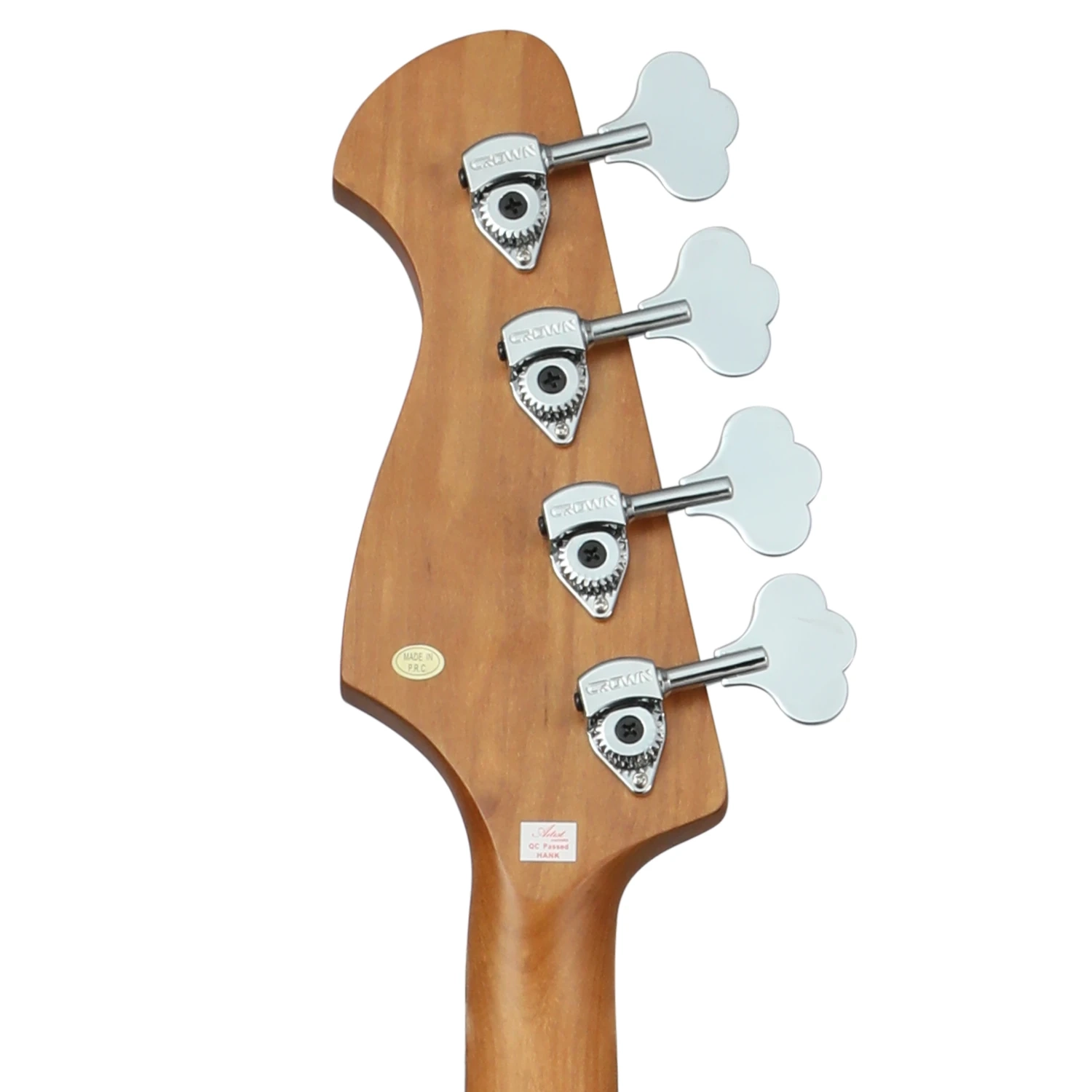 Attention to detail runs through every part of this instrument. High-grade clover-style tuners keep your tuning secure, while the chrome-plated brass bridge with stainless steel saddles delivers sustain, clarity, and reliability night after night. The sleek black one-ply pickguard on the natural ash body evokes the classic aesthetic of 1970s basses, combining vintage style with modern versatility. Weighing in at approximately four kilograms, it feels perfectly balanced on the strap and effortless to play through long sets.