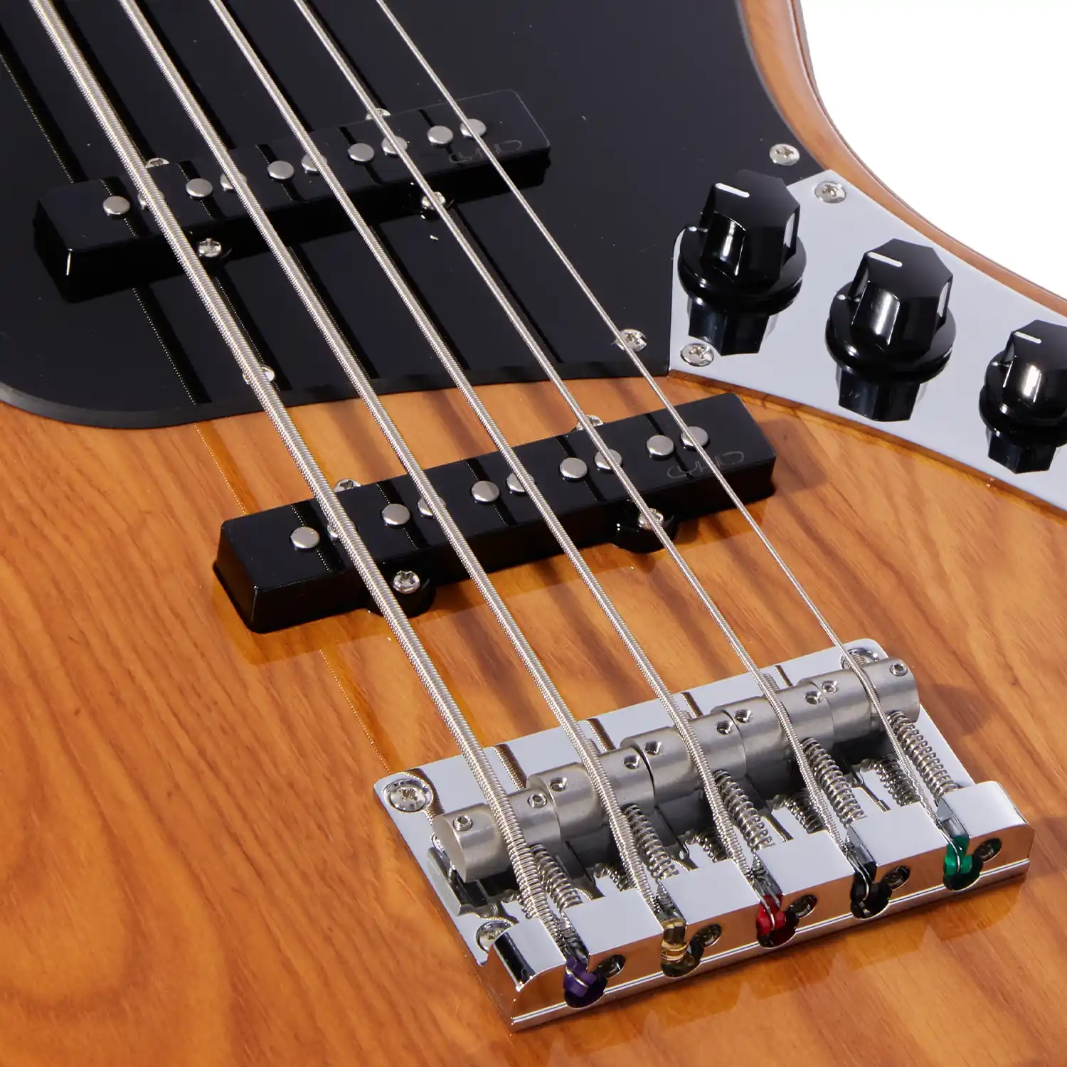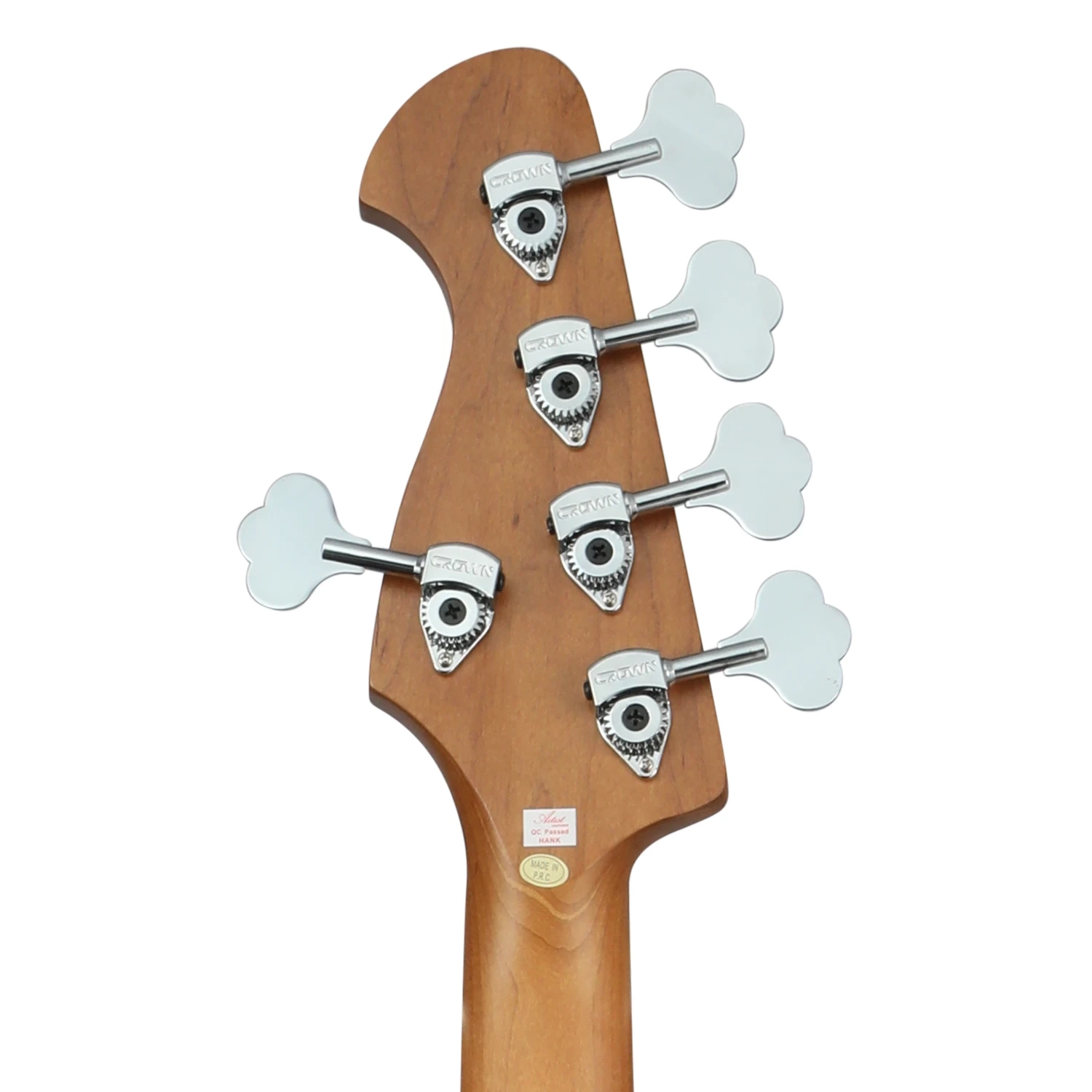 Attention to detail runs through every part of this instrument. High-grade clover-style tuners keep your tuning secure, while the chrome-plated brass bridge with stainless steel saddles delivers sustain, clarity, and reliability night after night. The sleek black one-ply pickguard on the natural ash body evokes the classic aesthetic of 1970s basses, combining vintage style with modern versatility. Weighing in at approximately four kilograms, it feels perfectly balanced on the strap and effortless to play through long sets.