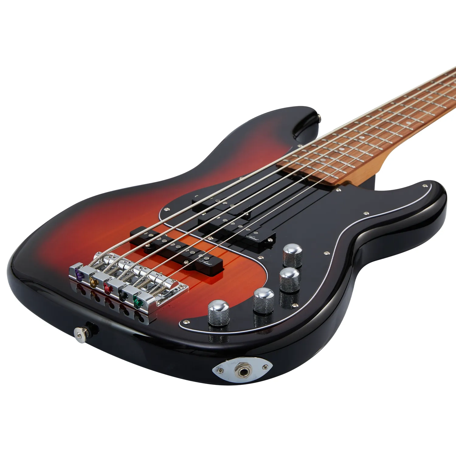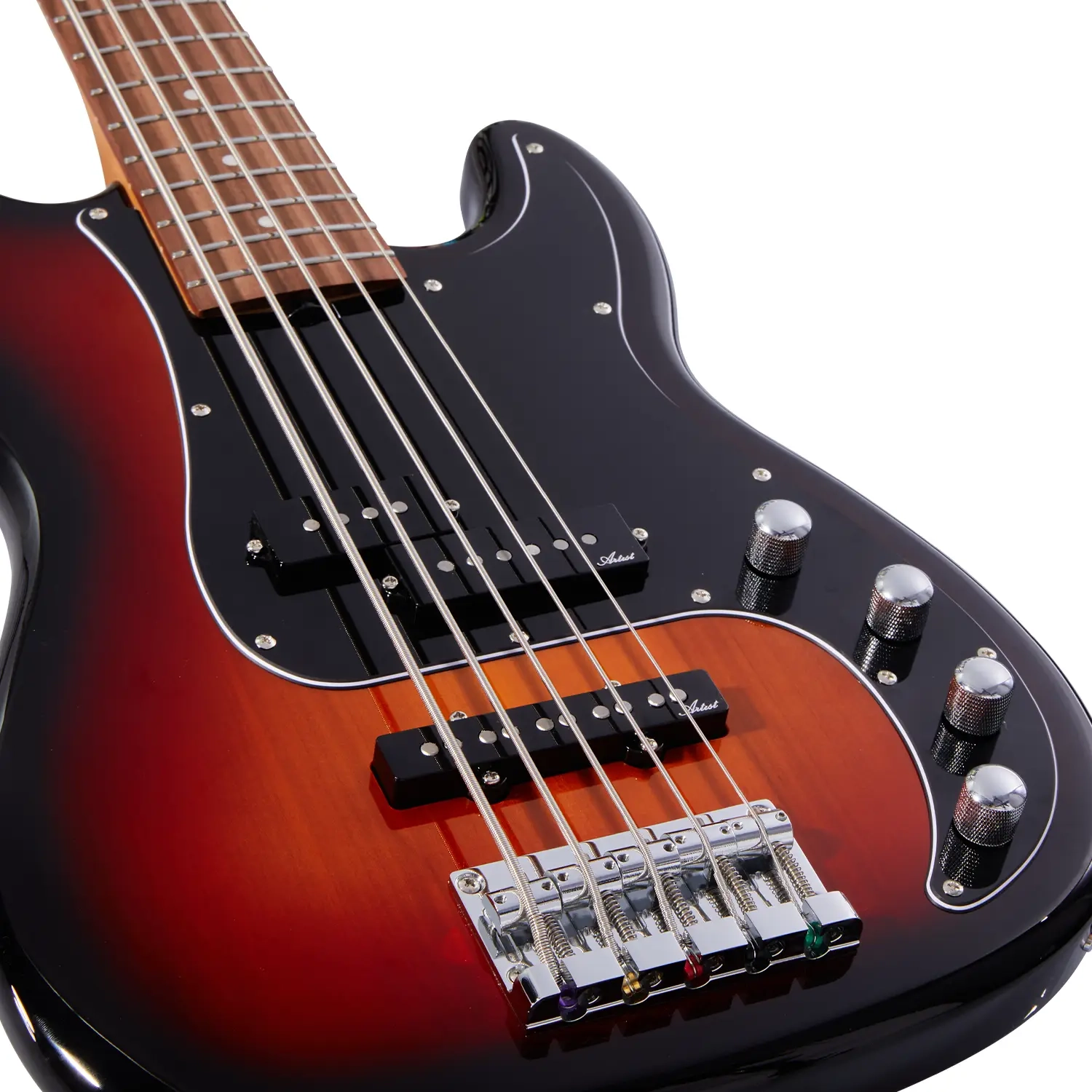 The backbone of this instrument is a light-roasted neck constructed from a single piece of maple. This method of construction gives the APJ5A deep resonance and sustain for days, especially when compared to basses with multi-piece necks. A 12" radius Bolivian rosewood fretboard gives this one low action, despite the extra tension created by the additional string, while 20 jumbo nickel frets provide both precision and ease for complex runs or thick, punchy grooves. A 45mm bone nut adds tonal clarity and infinite sustain.