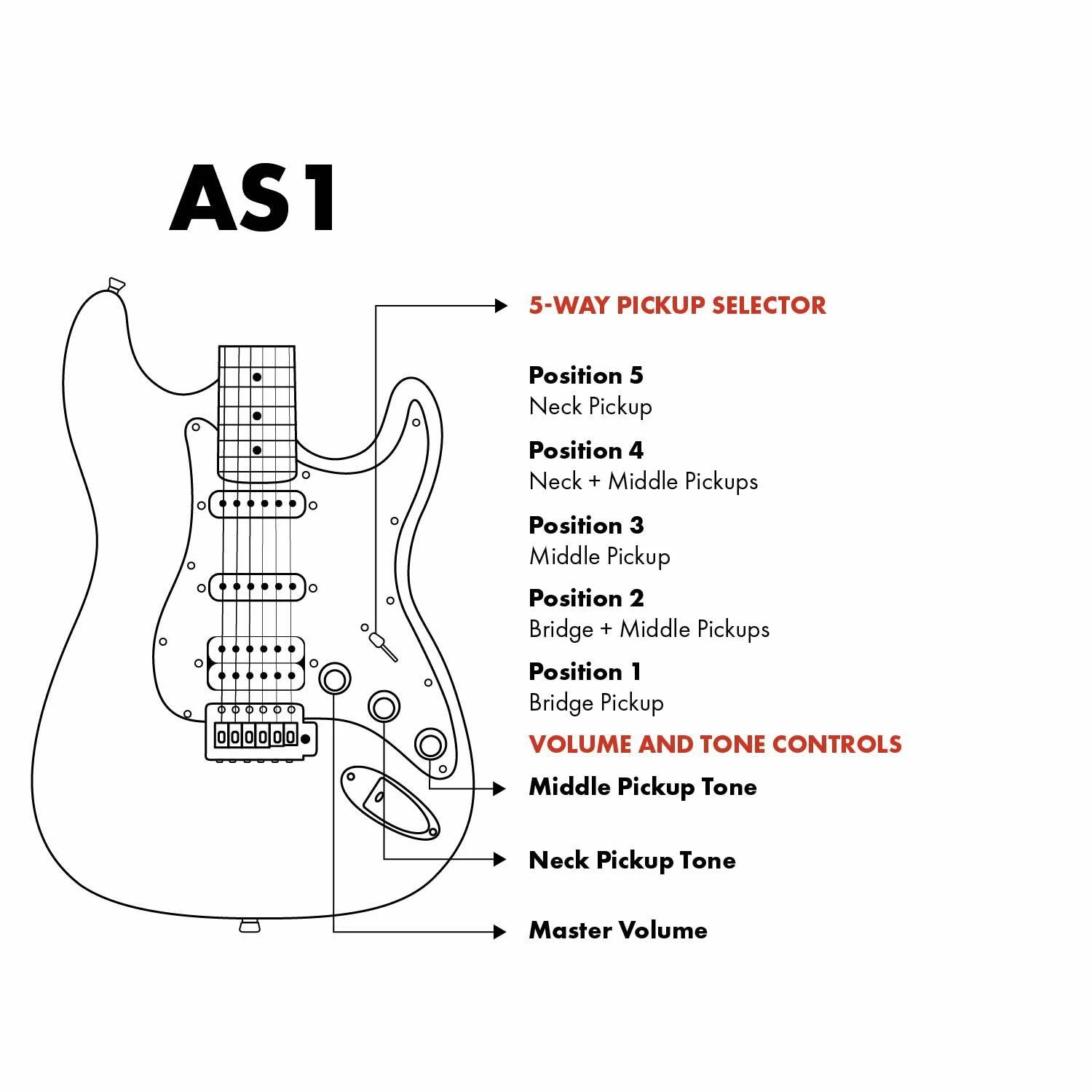 The AS1 electric guitar is a great way to be introduced into the world of rock, funk and blues as it is innspired by a classic guitar that has done countless albums, tours and made many a guitar icon. The contoured body provides great comfort in playing which has made this type of guitar a favourite with many players.