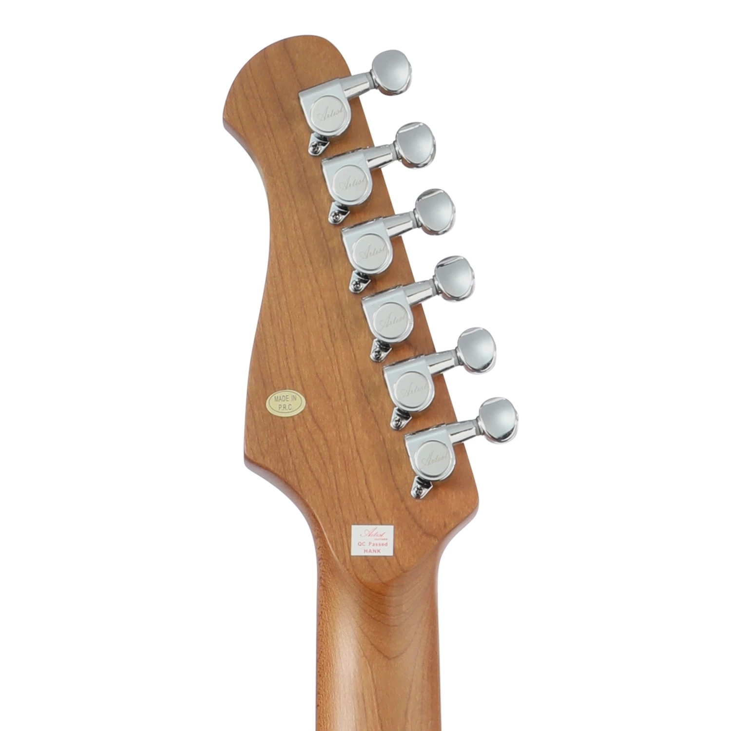 With 22 medium jumbo frets spanning the length of a satin-finished light-roasted maple neck, the AS30 feels immediately familiar in the hands, courtesy of a classic 9.5" radius maple fretboard built for shredders and rhythm players alike! A classic C-shape neck profile belies the AS30's flashy exterior, giving this one an ultra-comfortable feel for players of all persuasions. The vintage-style six-screw tremolo gives you the option to engage in classic rock screams and wails to your heart's content, safe in the knowledge that your tuning will remain rock-steady thanks to a set of high-grade chrome tuning machines and a rock-solid 42mm ABS nut.