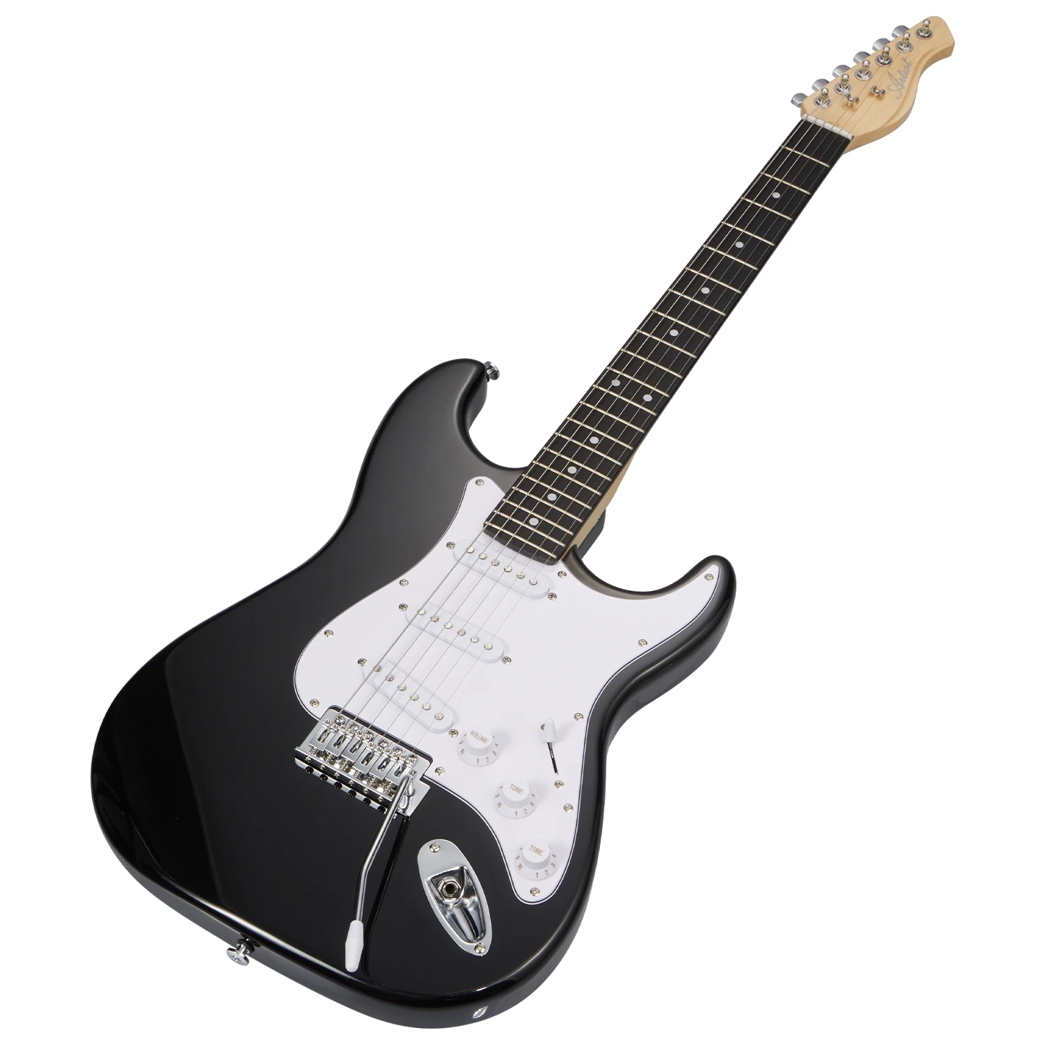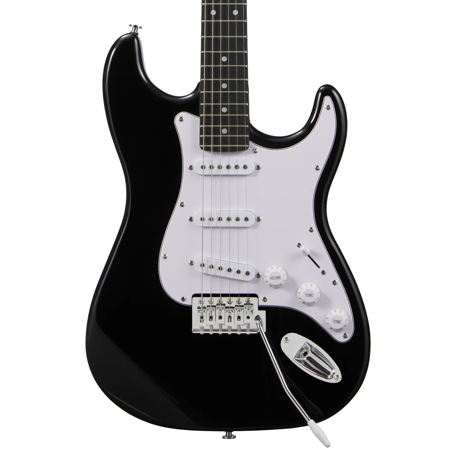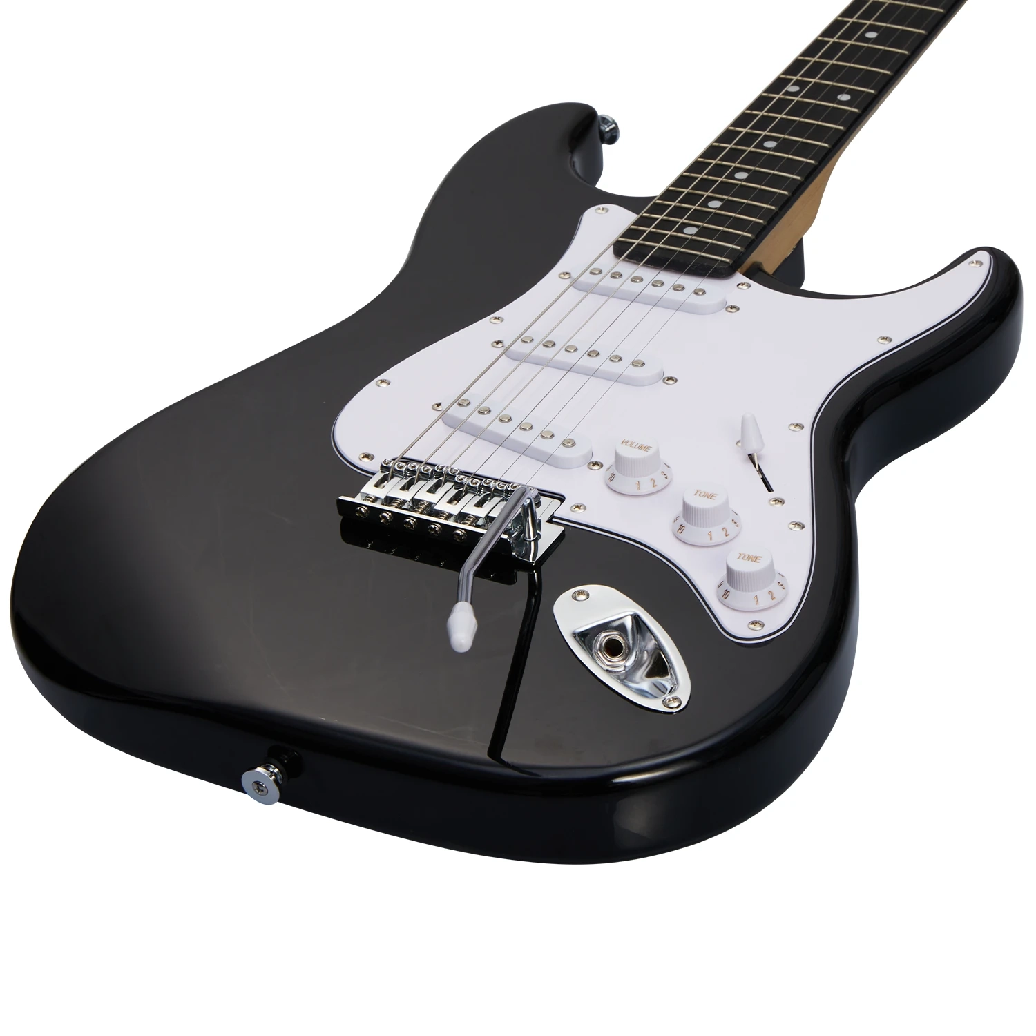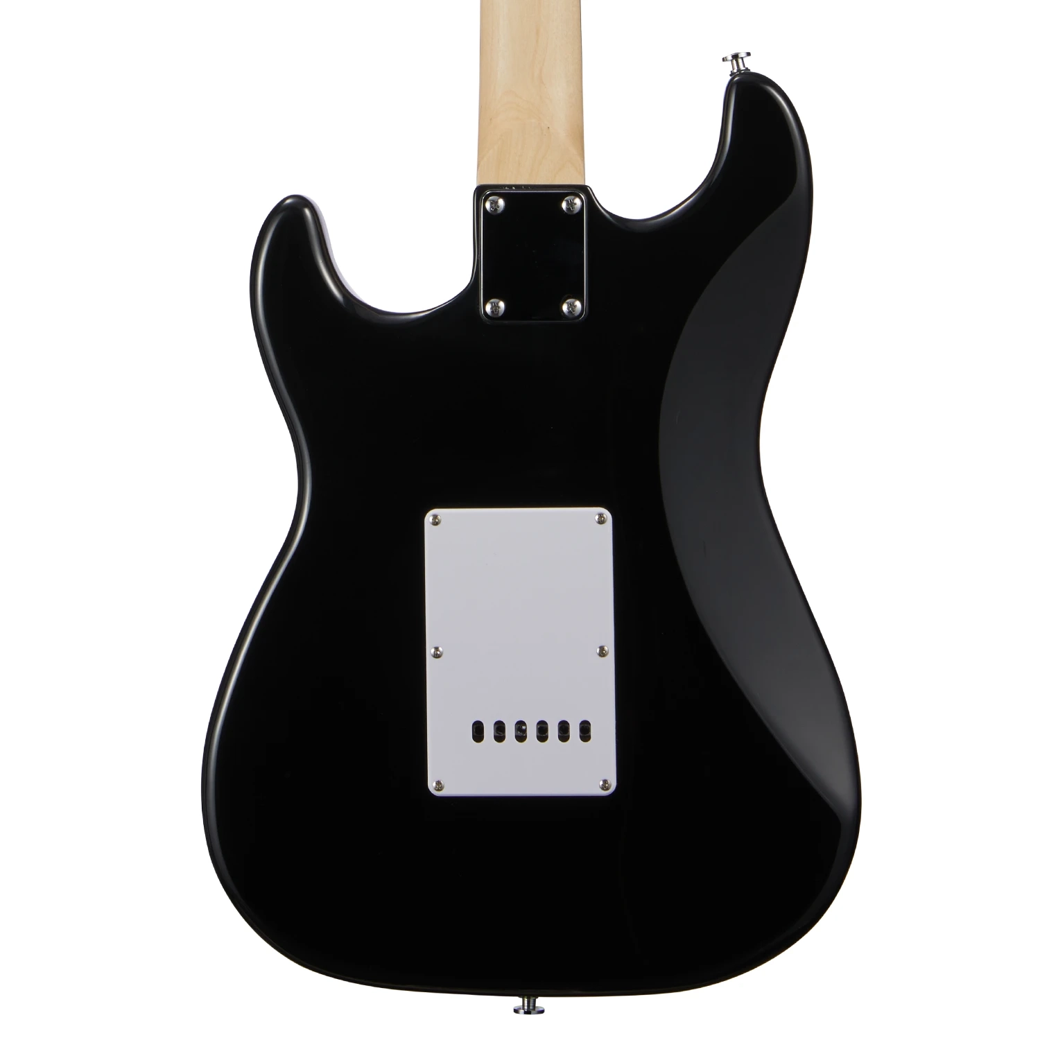 The guitar features a solid Poplar body with a sleek basswood veneer and various colour options, letting you pick which look is right for you! Featuring a one-piece maple neck, this guitar is built for comfort and ease of play. The C-shape neck profile and 22 frets are perfect for beginners, offering a balanced feel and excellent playability. The eco-rosewood fretboard offers smooth action for both fretting and soloing.