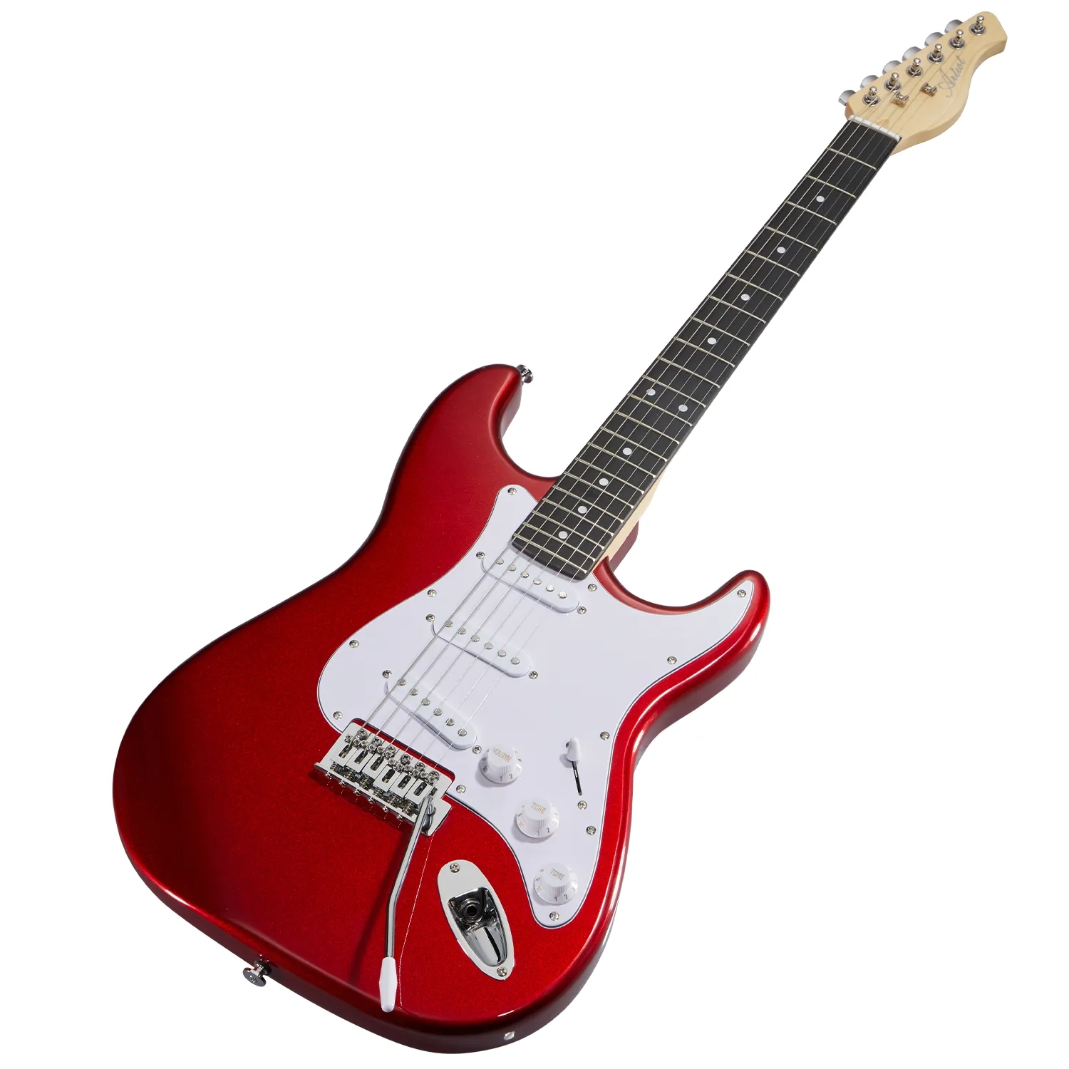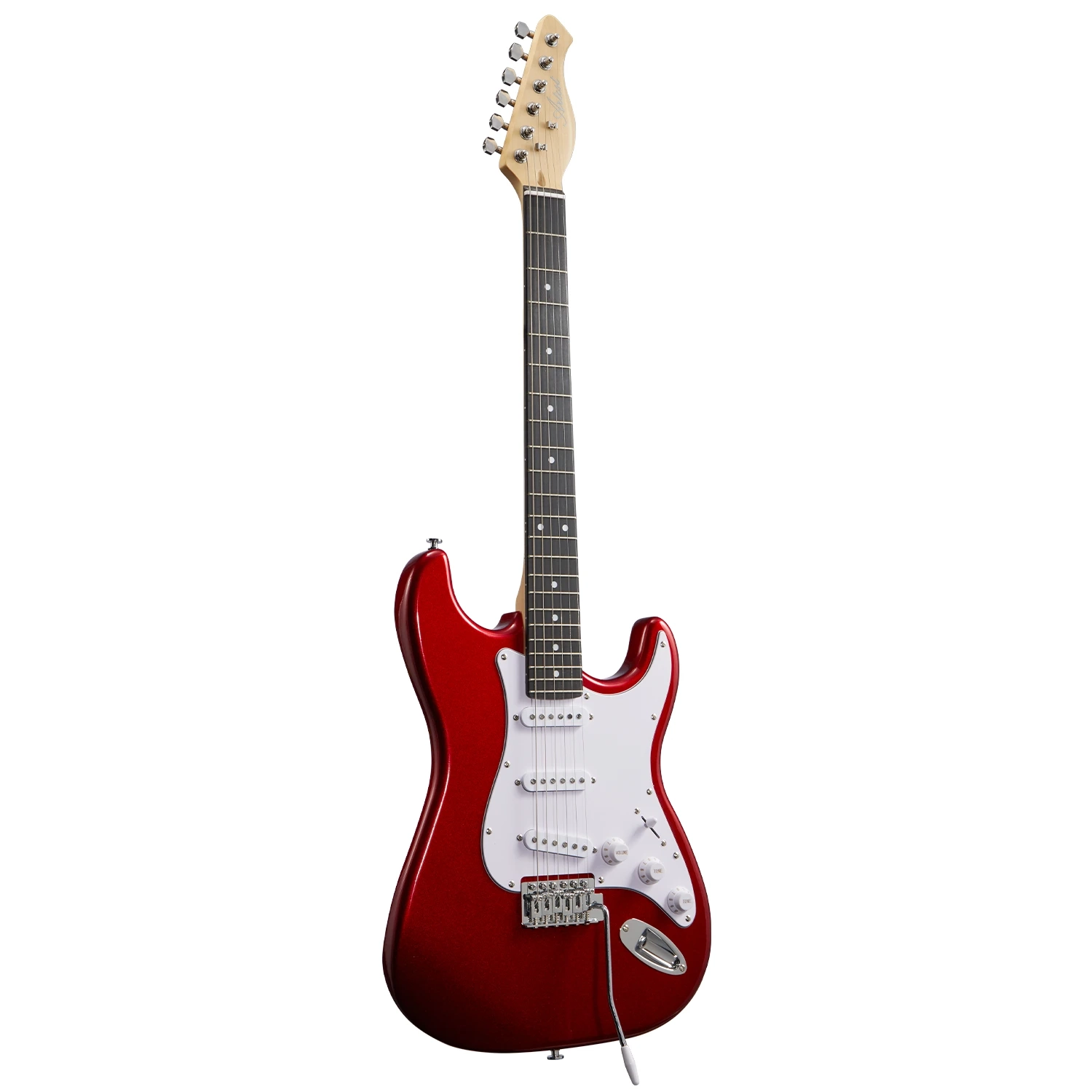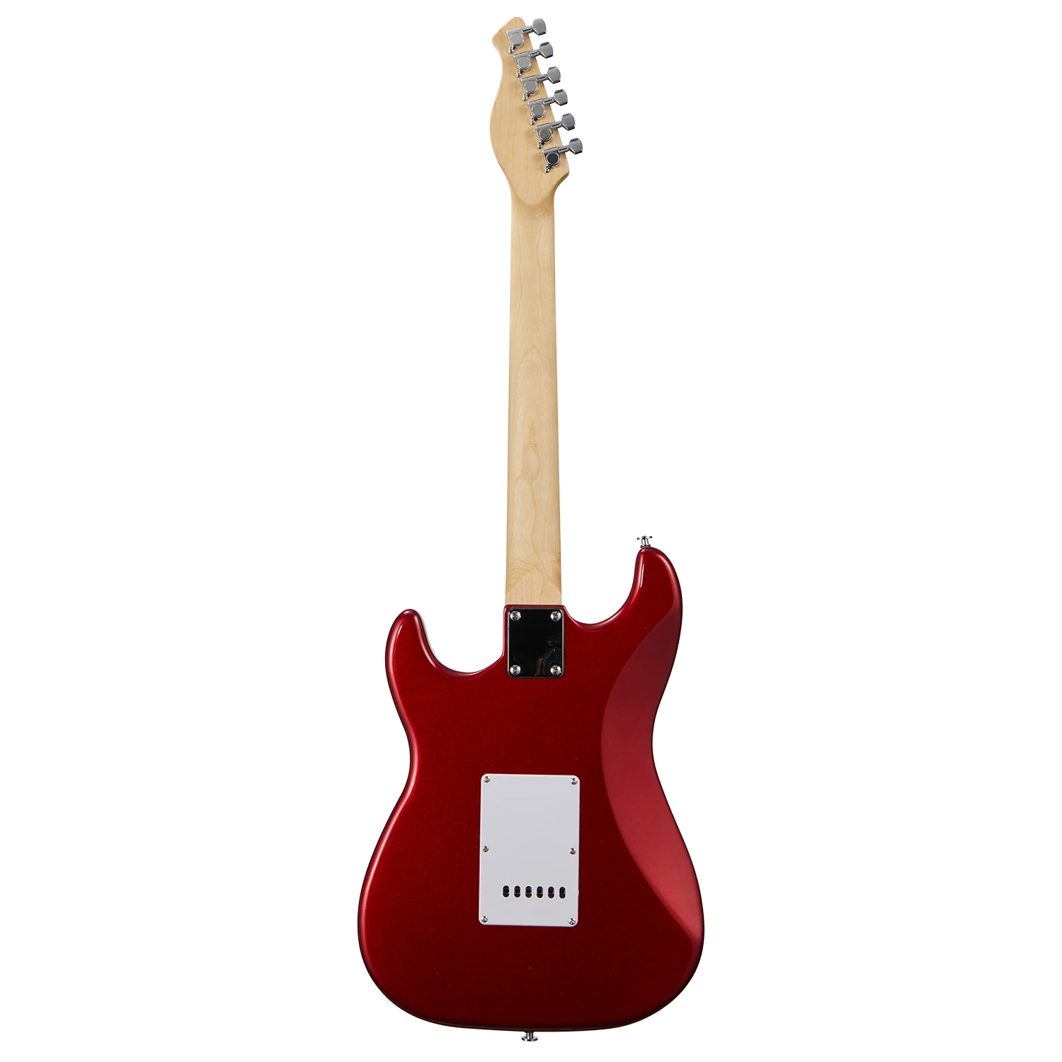 The guitar features a solid Poplar body with a sleek basswood veneer and various colour options, letting you pick which look is right for you! Featuring a one-piece maple neck, this guitar is built for comfort and ease of play. The C-shape neck profile and 22 frets are perfect for beginners, offering a balanced feel and excellent playability. The eco-rosewood fretboard offers smooth action for both fretting and soloing.