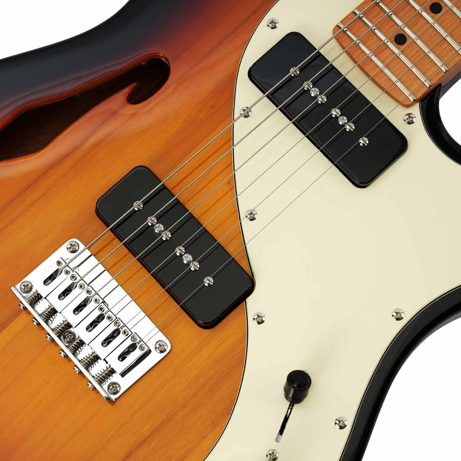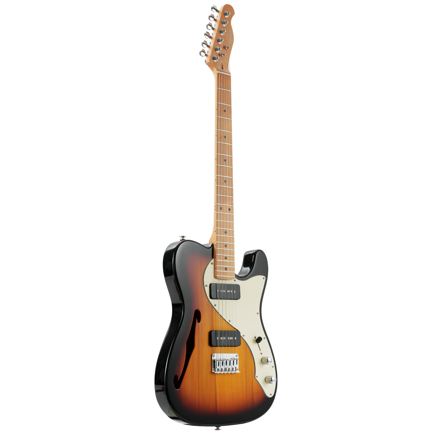The semi-hollow construction of the AT69's poplar body makes it a lighter alternative to a solid body. Single master and tone knobs make the AT69 elegantly simple to dial in - just strap it on, turn up your amp, and get out of the way... the AT69 will do the rest.