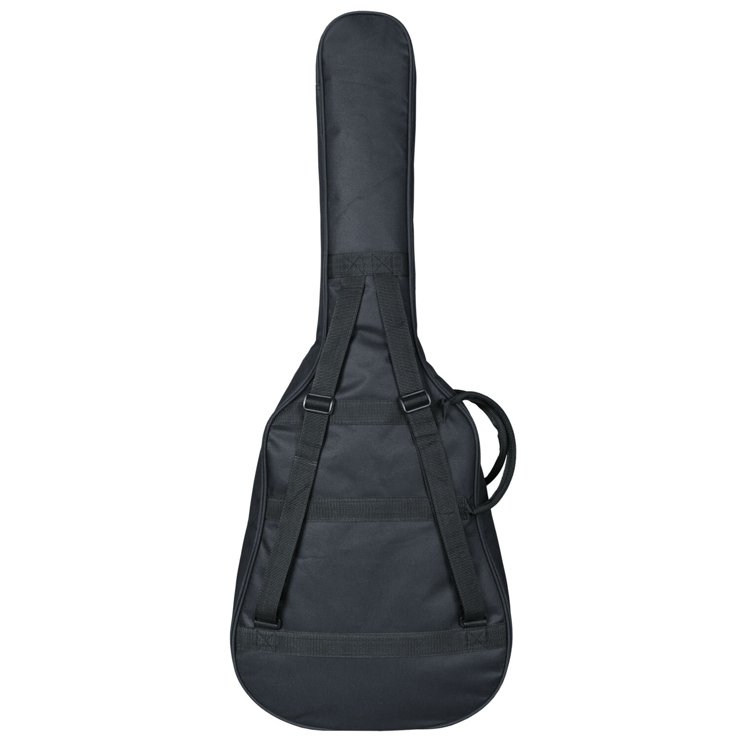 Economy Model Acoustic Guitar Bag. Suits 41" 6 string dreadnoughts and other full size 12 string acoustic guitars and Jumbo size guitars (steel string). It has a pocket to put your strings and music, backpack straps and 5mm padding.