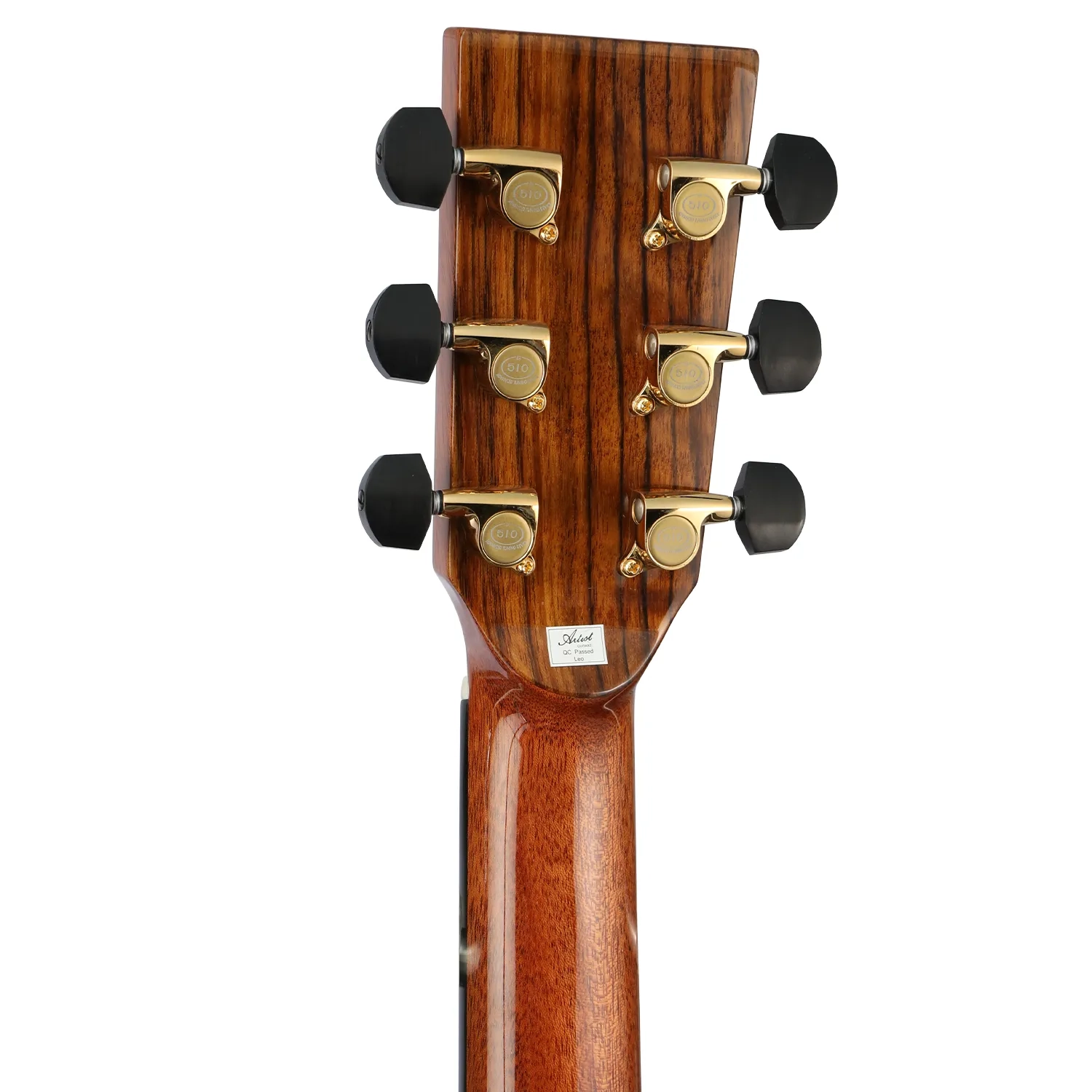 The Artist GG1EBS, designed by Gerard Gilet in association with Artist Guitars and hand-built in China, brings Gerard's unmatched tonal design sensibilities to a wider audience. Handbuilt in a small Chinese workshop manned by a team of 5 expert luthiers, this is not your usual Chinese-made mass-production guitar. We evaluated an (admittedly absurd) amount of production options and were eventually swayed by this workshop's prior work exclusively producing ultra-high-end acoustic guitars. The small scale of production and close-knit team of luthiers allow for consistent communication and real-time feedback, ensuring each GG1 is built exactly to perfection.