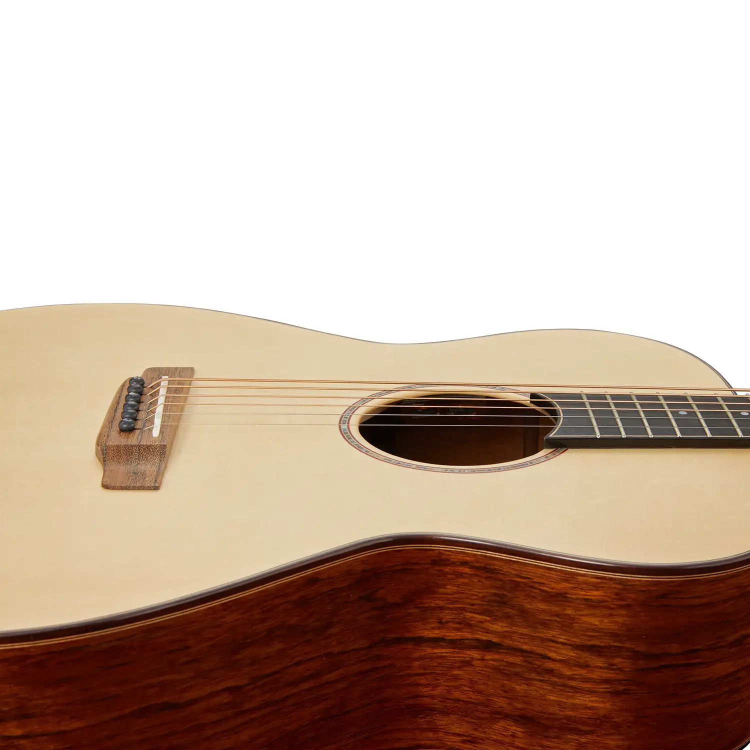 The GG1EBS comes equipped with an LR Baggs Element Bronze VTC Undersaddle Pickup. Designed to capture the warmth, dynamics, and natural character of your GG1's voice, this pickup features a streamlined, plug-and-play design and discreet soundhole-mounted volume control, delivering a clear, organic tone without the need for intrusive onboard electronics. With a flexible film undersaddle transducer that mirrors the movement of the soundboard, the Element Bronze VTC captures the GG1's natural dynamics, reducing the “quack” effect common in traditional piezo pickups. An all-discrete Class A endpin preamp, delivers a pure, uncoloured signal, yielding enhanced warmth and body sensitivity.