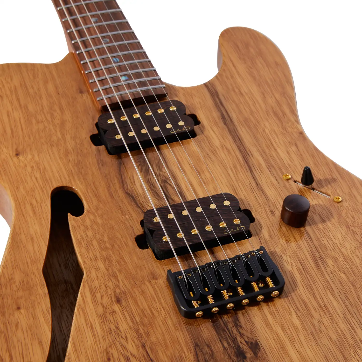We've fitted the Limba with a matte black brass hardtail bridge, with a string-through design that yields unparalleled resonance and sustain, further enhanced by the inclusion of a 42mm bone nut and a set of premium locking tuners, with a new design that has been tweaked for optimal performance. Equipped with a set of YHL Mercury Alnico V humbuckers, super 5-way switching puts a vast tonal palette at your fingertips, delivering the lively, organic response that handwound pickups are known for, thanks to the Fine Structure Scattering Wound (FSSW) technology that the YHL team has spent years refining. This winding approach offers handwound character with machine consistency, along with a frequency response curve once achievable only with careful studio EQ.