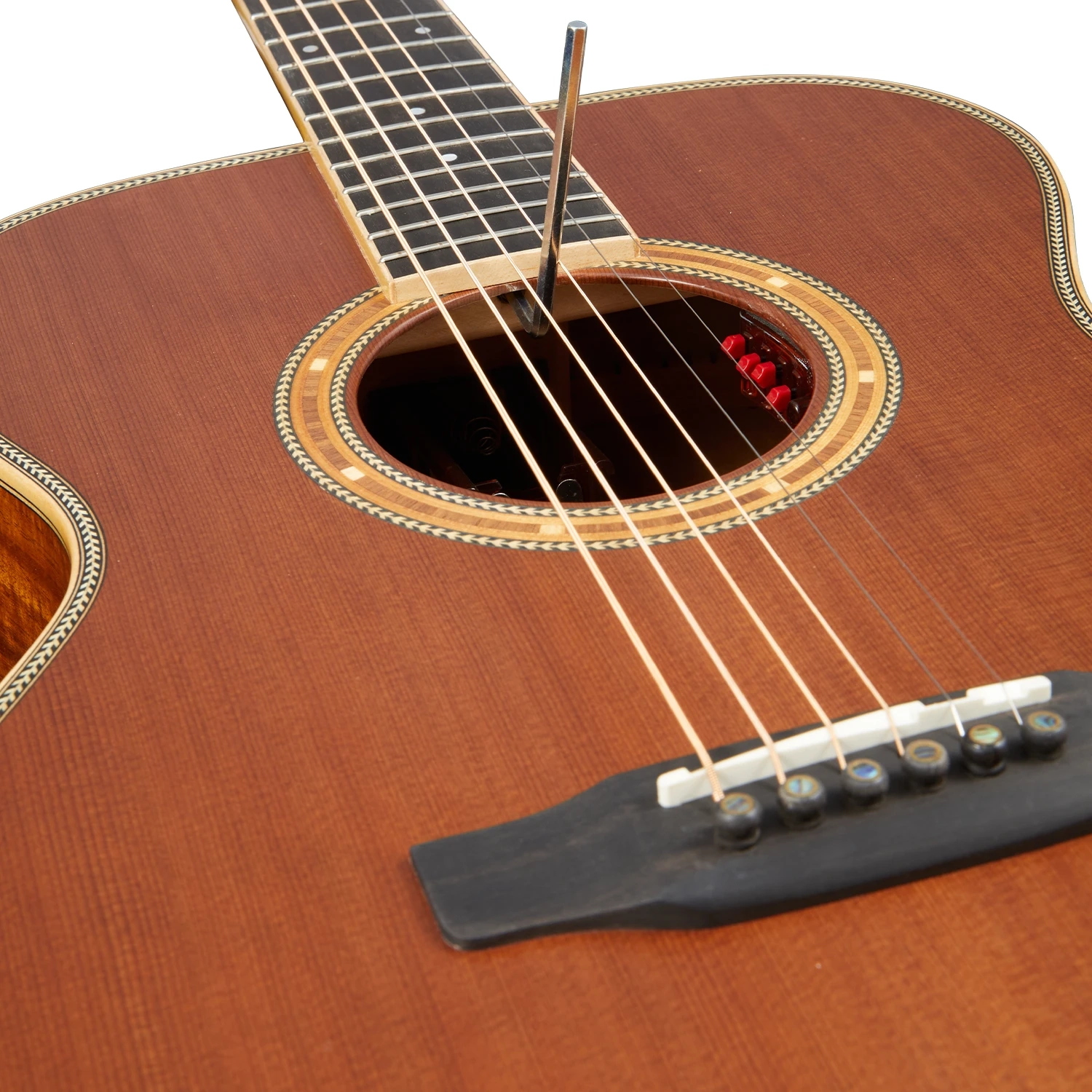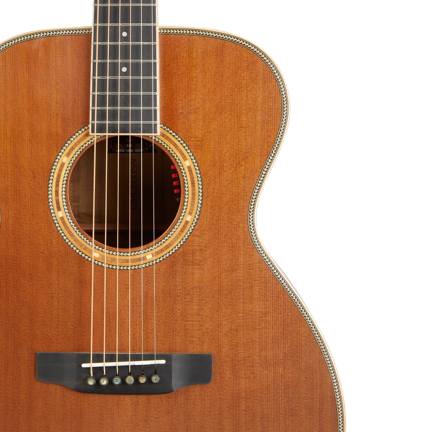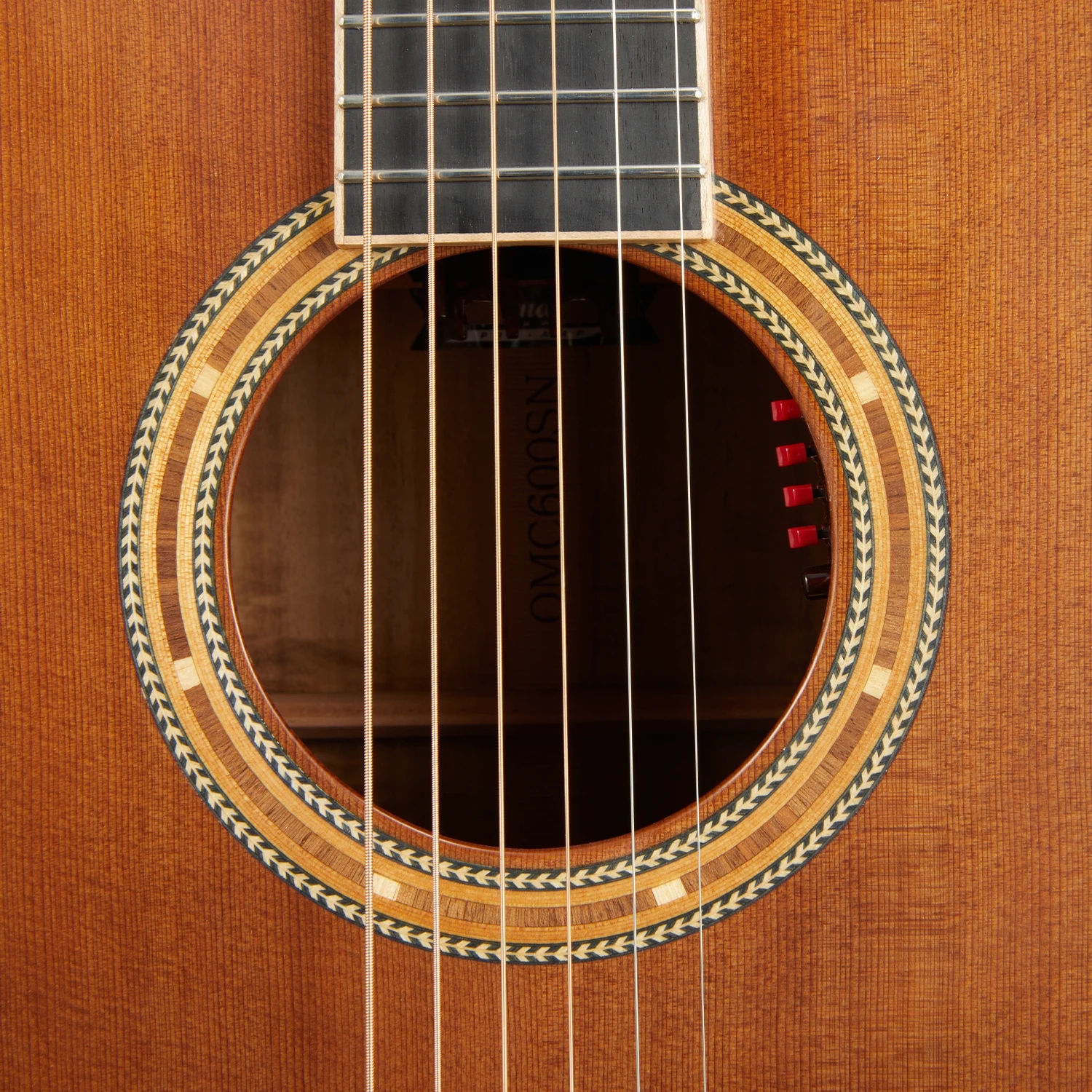 The successor to the bestselling OMC500SN, the Artist OMC600SN achieves the impossible, improving on its predecessor to be among the finest acoustic guitars we have ever produced. Handbuilt by the same team of 5 expert luthiers who lovingly crafted the Artist GG1EQ, the OMC600SN features a AAA-grade solid Cedar top and stunning solid Acacia back and sides, producing a deeper, more mellow tone when compared with a brighter wood such as Spruce. If you tend to gravitate toward warmer-toned acoustic guitars, you'll find all the mid-range you need with a single strum. The Mahogany neck is topped with a stunning dark Ebony fingerboard, tastefully bound with Maple along the length of 20 frets, constructed from 25% nickel for long-lasting durability.
