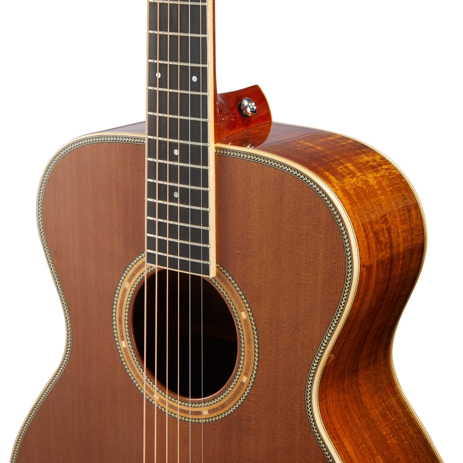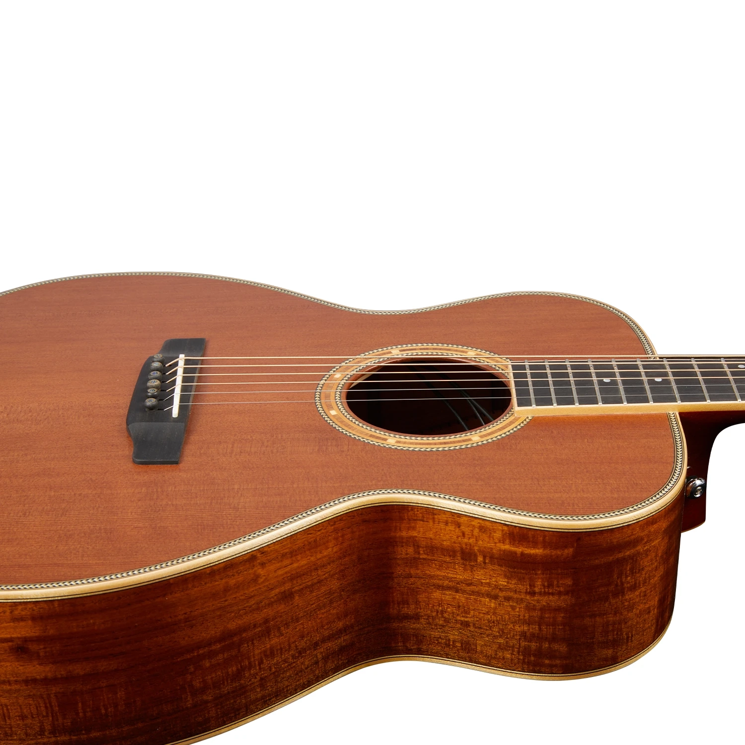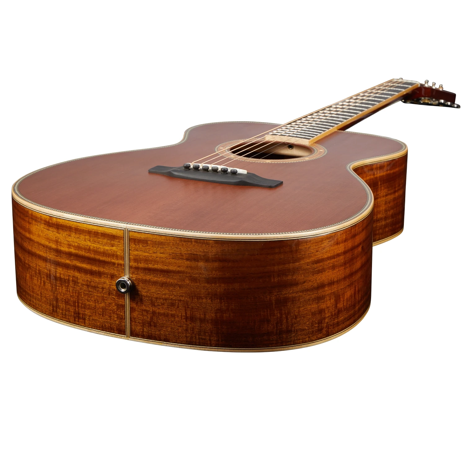 The successor to the bestselling OMC500SN, the Artist OMC600SN achieves the impossible, improving on its predecessor to be among the finest acoustic guitars we have ever produced. Handbuilt by the same team of 5 expert luthiers who lovingly crafted the Artist GG1EQ, the OMC600SN features a AAA-grade solid Cedar top and stunning solid Acacia back and sides, producing a deeper, more mellow tone when compared with a brighter wood such as Spruce. If you tend to gravitate toward warmer-toned acoustic guitars, you'll find all the mid-range you need with a single strum. The Mahogany neck is topped with a stunning dark Ebony fingerboard, tastefully bound with Maple along the length of 20 frets, constructed from 25% nickel for long-lasting durability.