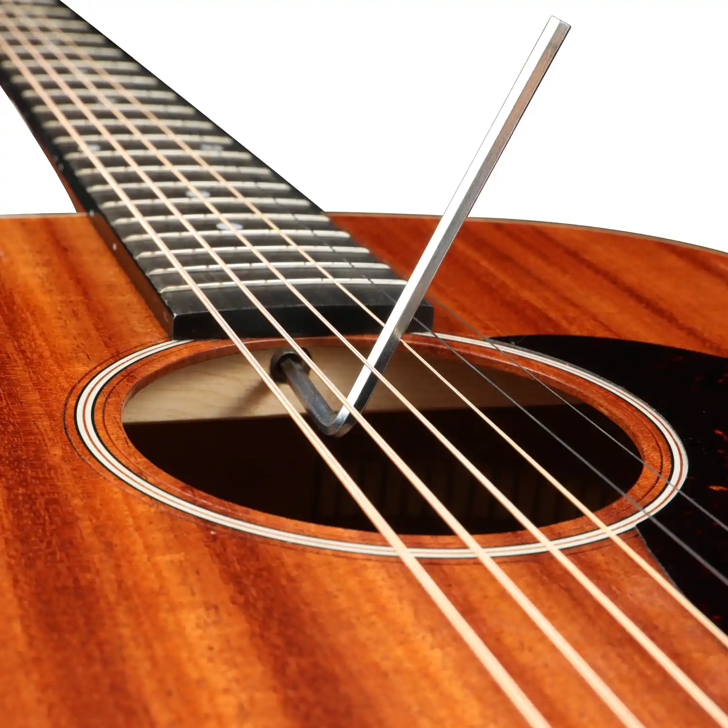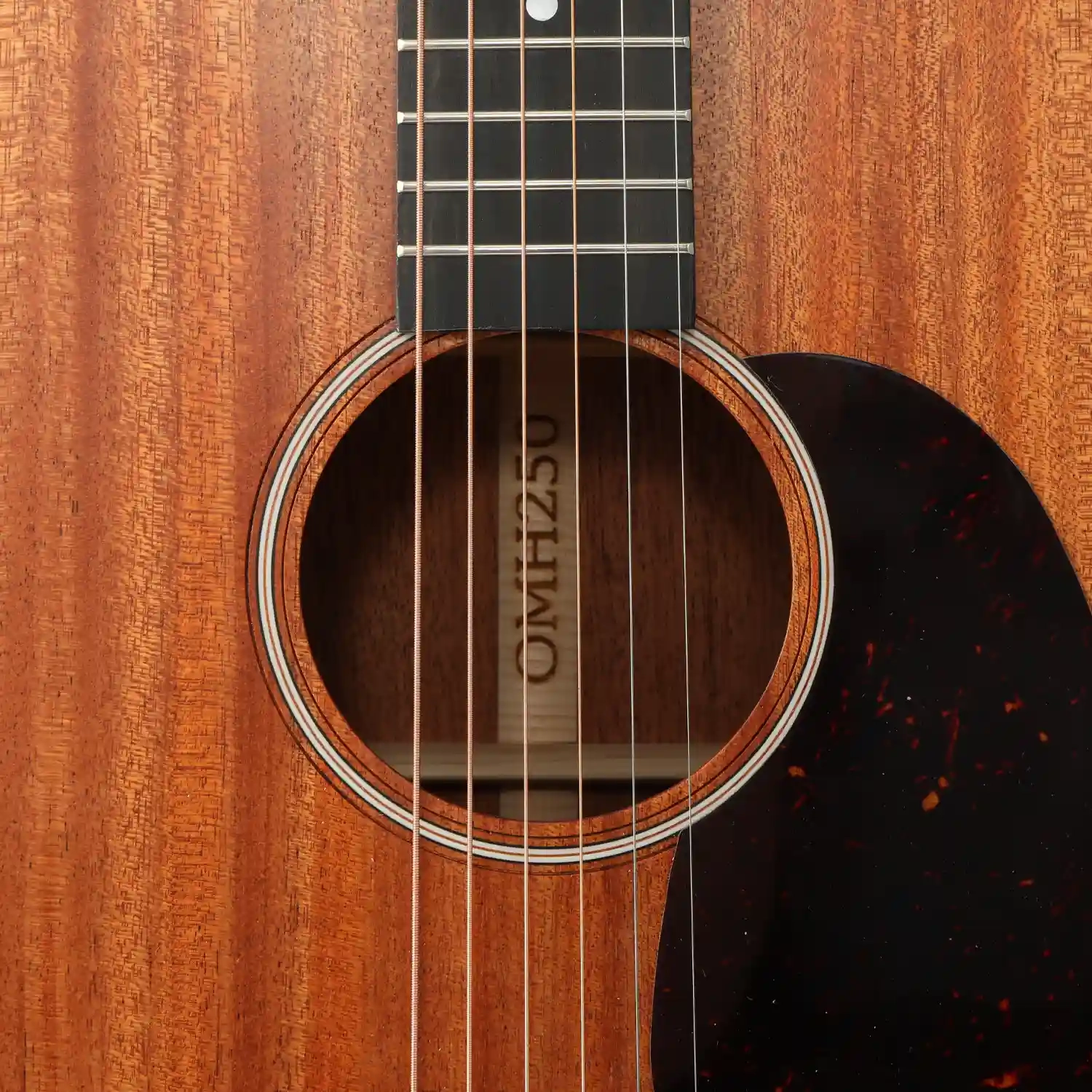 The open-pore matte finish not only lends the OMH250 natural, earthy aesthetics, but also allows the wood to resonate more freely, enhancing the quality of tonal response. A tortoise shell pickguard adds a touch of vintage flair, while the simple, elegant body binding and rosette details lend the instrument a refined aesthetic.