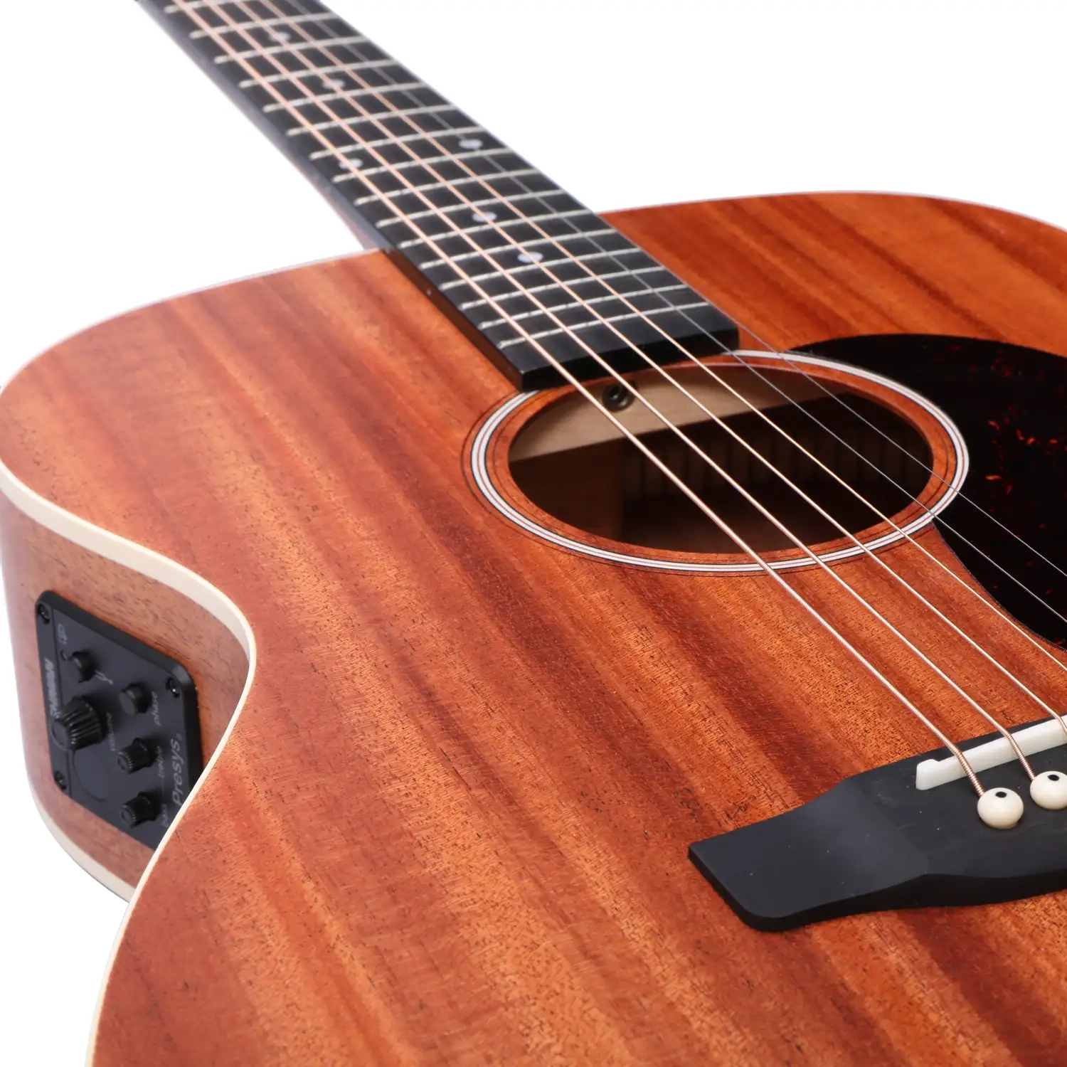 A truebone nut and saddle provide excellent tonal clarity and sustain, allowing every note to ring out with character and definition. High-quality DerJung open-gear vintage tuners round out the hardware, keeping your tuning stable and adding to the classic look. For players who want to take their sound to the stage or studio, the OMH250 is equipped with a Fishman Presys preamp system with onboard tuner, EQ, and volume control, offering reliable, natural-sounding amplification whenever you need it.