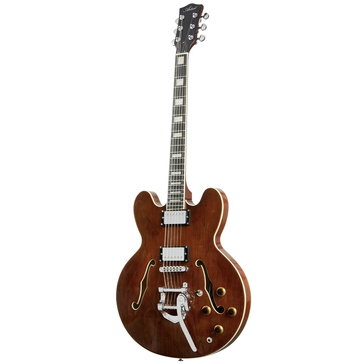 If you love the look of the Artist Walnut58DLX, but you’re after something with a little more versatility, this is the one you’re looking for! If you didn’t guess it from the title, we’ve added a roller-style trem to this one, an immensely popular mod for rockabilly, country, and indie rock alike!