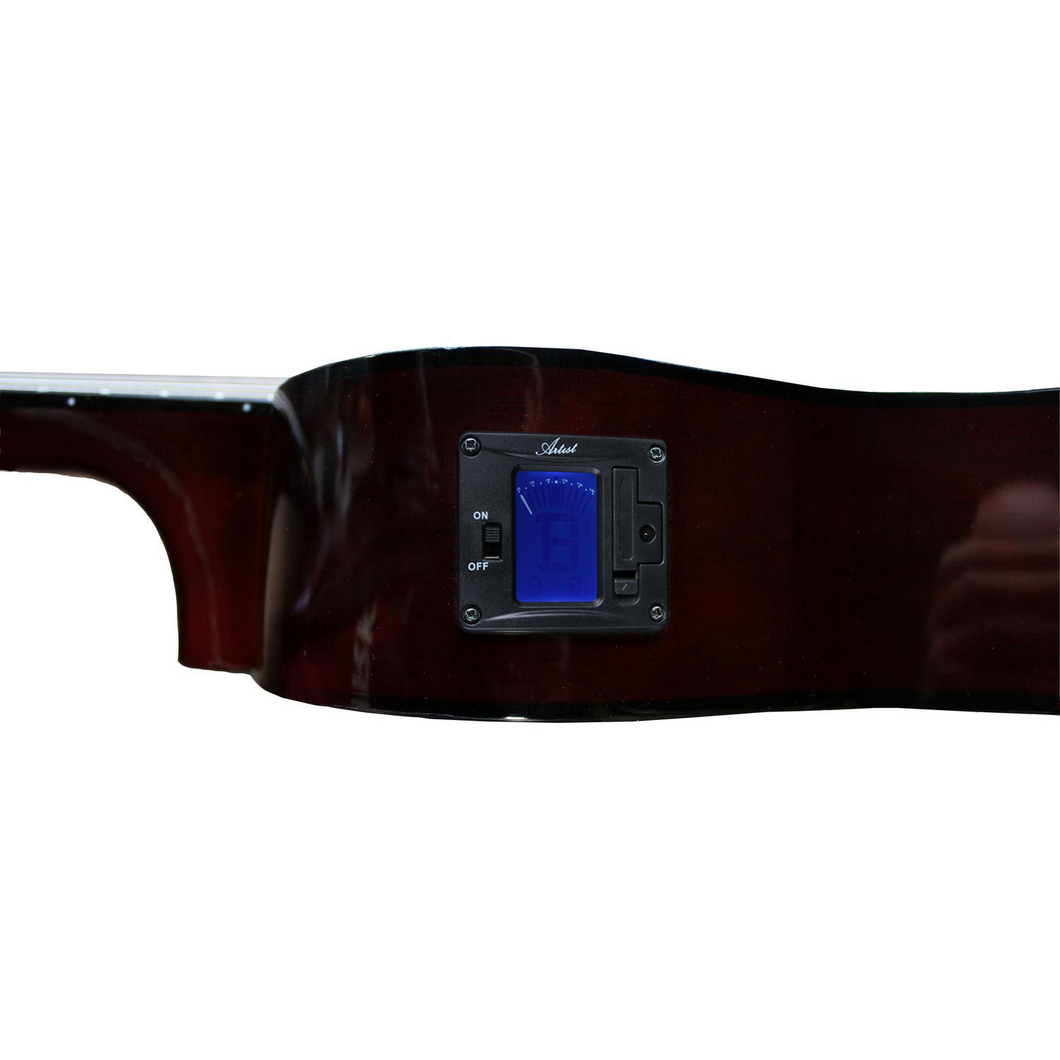 It has a Low String Action (all our guitars are set-up at the factory for optimum beginner playing level). String action is the measurement from the top of the 12th fret to the bottom of the string. This is very important because a guitar with a high action is hard to play, a guitar with too low an action will buzz and sound bad. Artist Guitars are set up at the factory for the optimum level for a beginner.