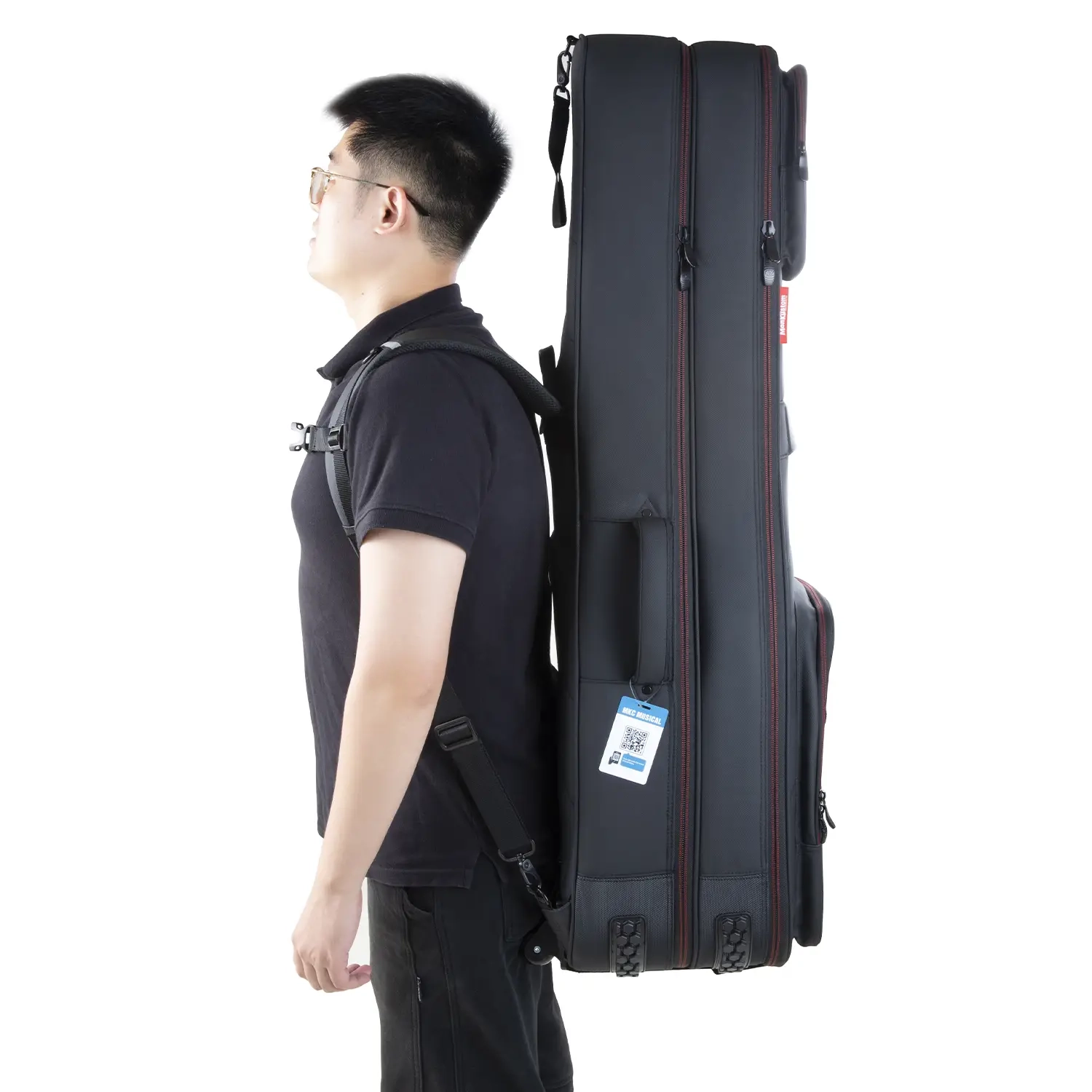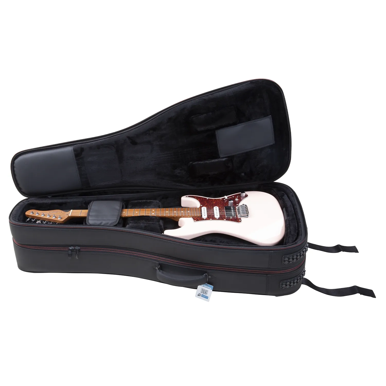 The MKC AirNinja Dual Electric Guitar Case is designed to securely carry two electric guitars, with dedicated space for a Strat or Tele-style guitar and a Les Paul-style guitar. It is designed for players who need reliable transport between the stage, studio, and travel without juggling multiple cases.