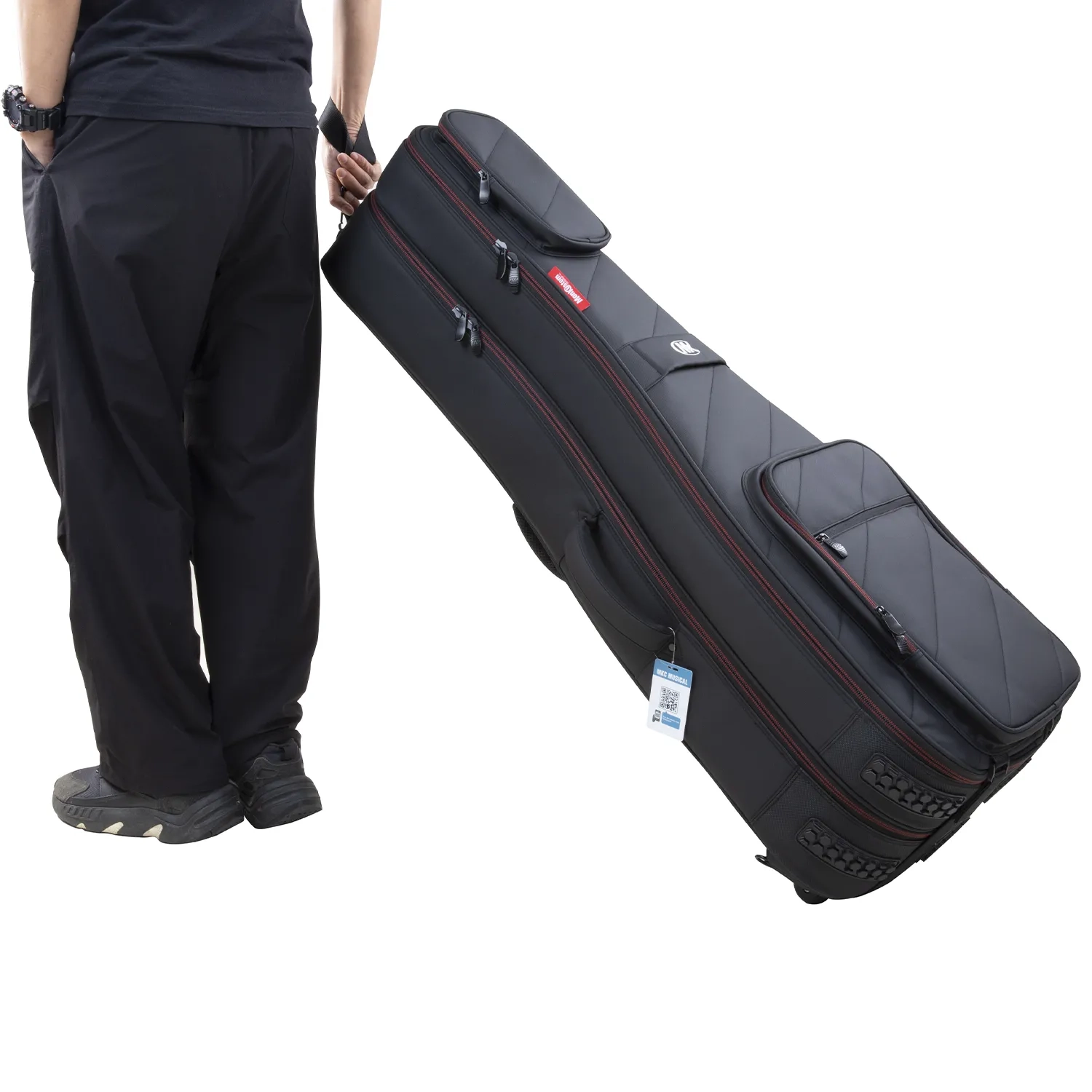 For added convenience, the case includes removable wheels, making it easier to move through airports, venues, and city streets. When wheels are not needed, they can be detached for a cleaner, more compact profile. The AirNinja DEG is built for practical use, offering a balance of protection, portability, and efficient design for musicians who regularly carry more than one guitar.